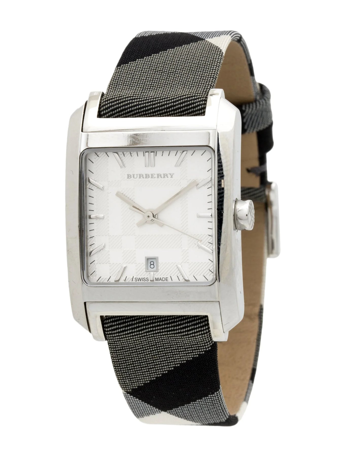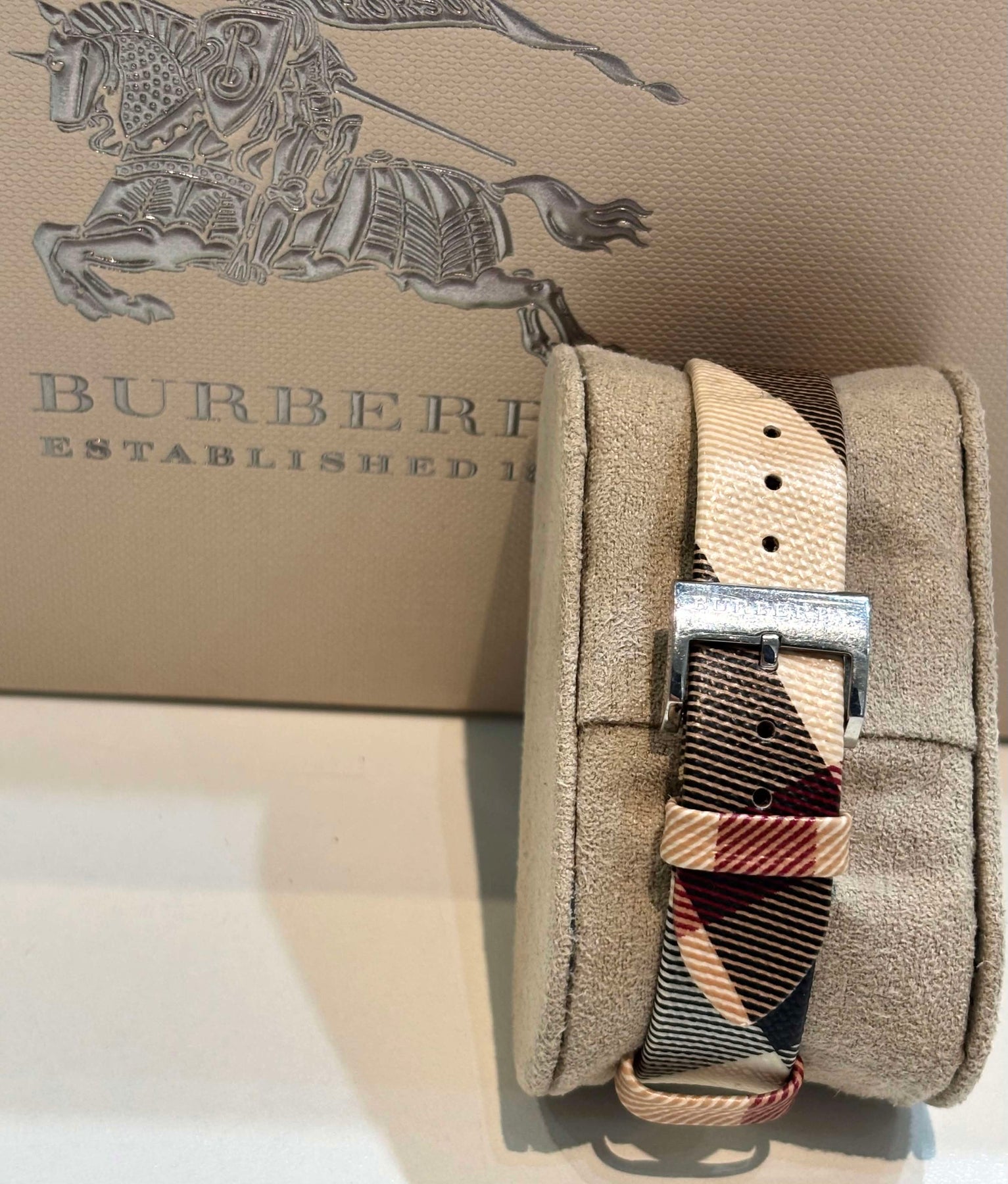 Housed in a polished stainless‑steel case, the clean dial offers clear readability with minimalist hour markers and slender hands. The signature Burberry check adds an elegant visual detail that elevates the aesthetic without overpowering the watch’s refined simplicity.