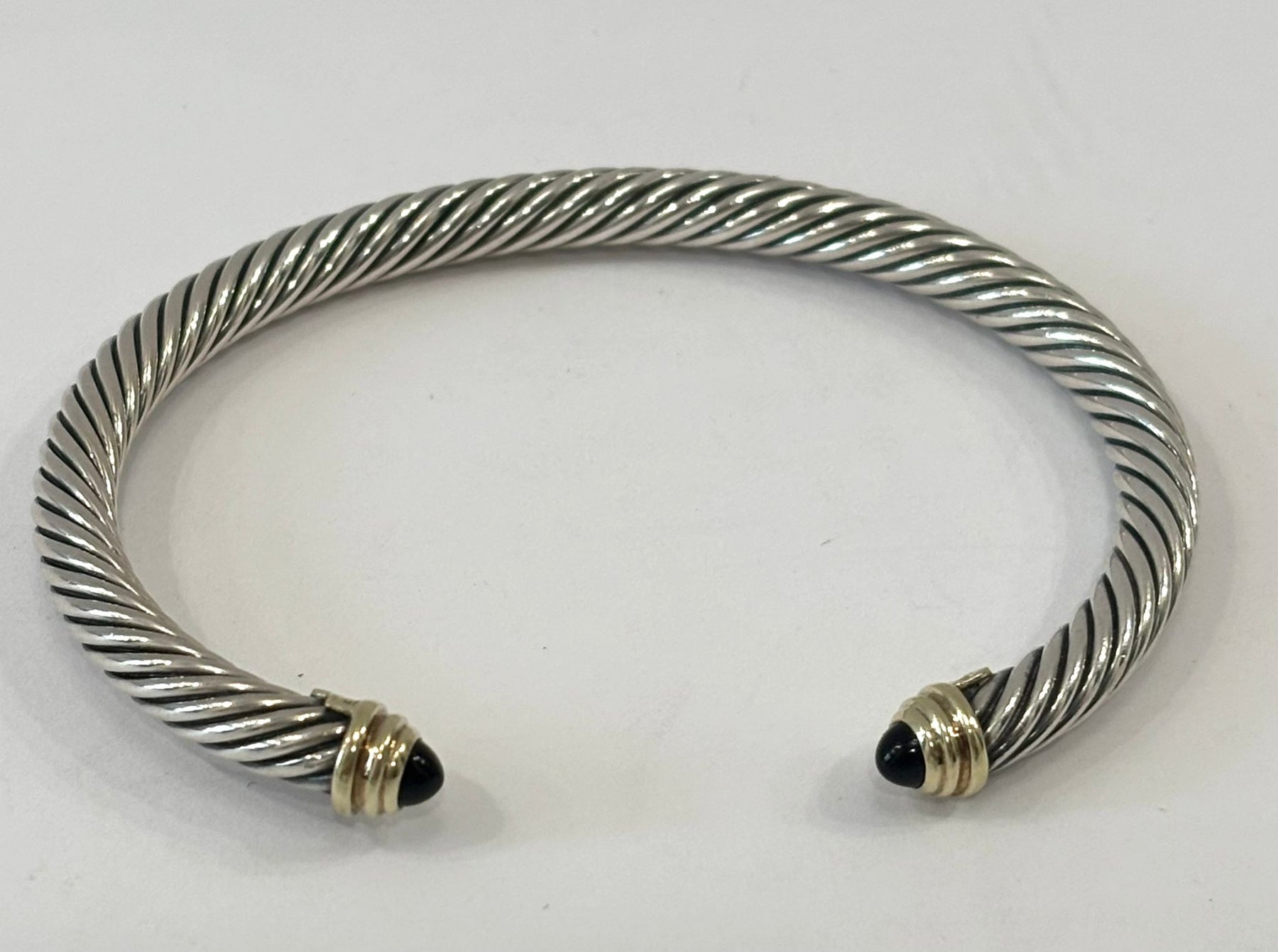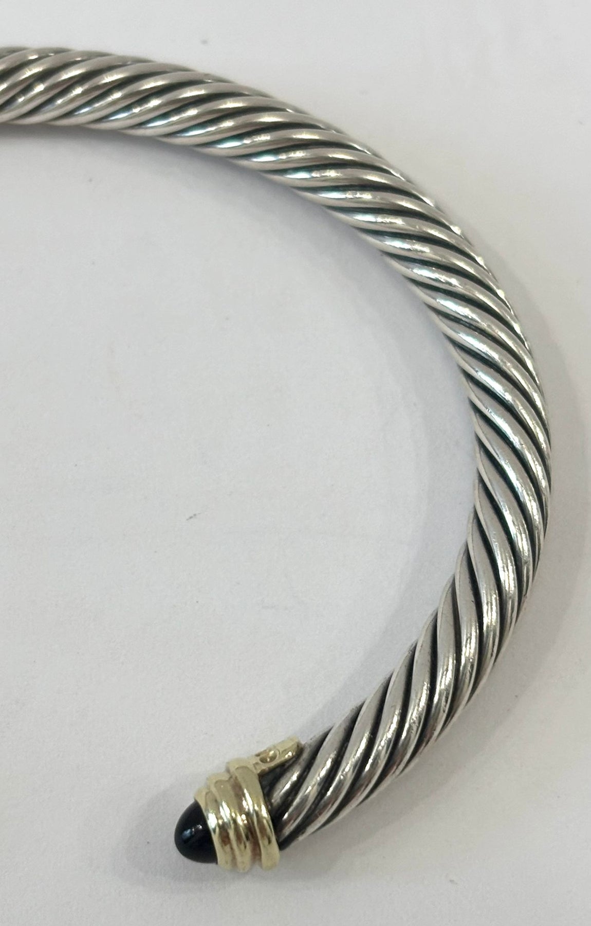 DY CLASSIC CABLE STERLING SILVER 18K GOLD BLACK ONYX BRACELET