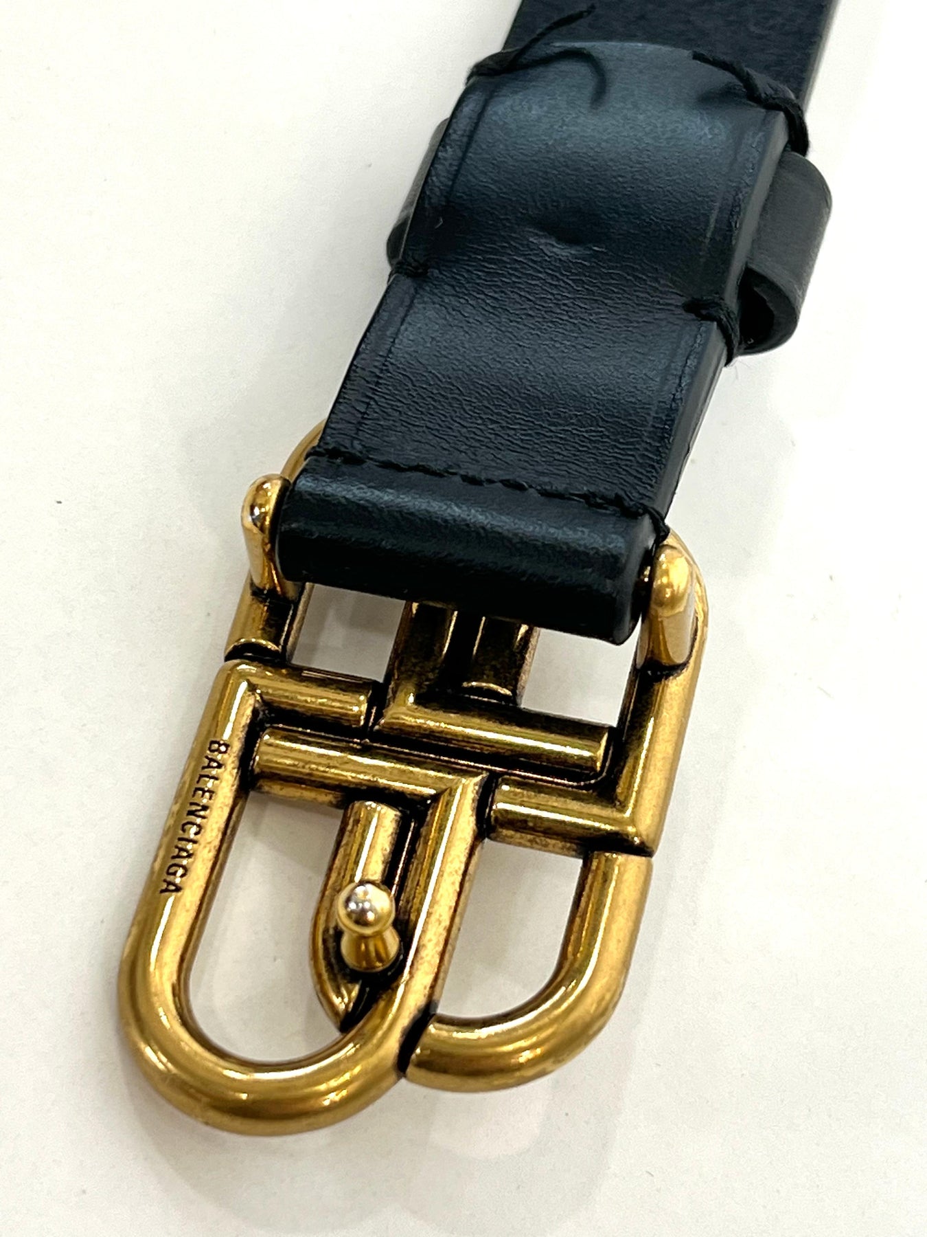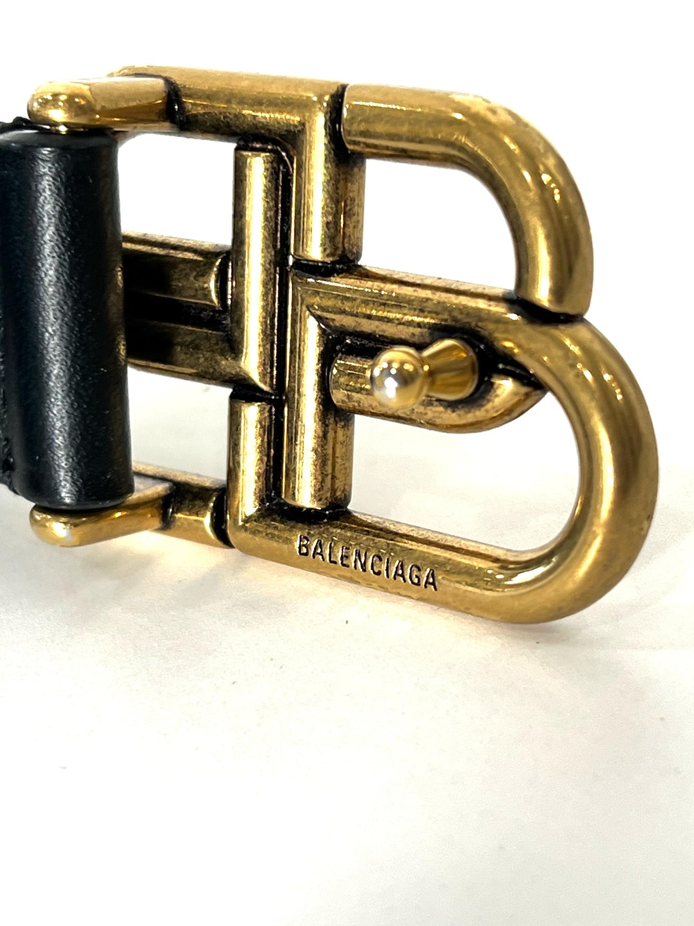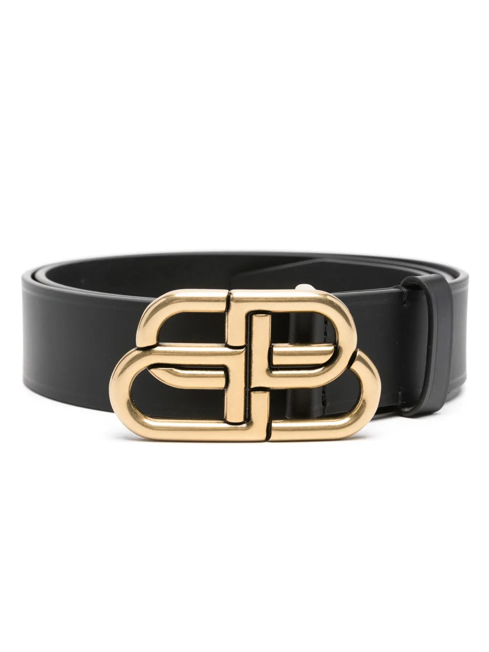 BALENCIAGA BB LOGO CALFSKIN LEATHER BELT