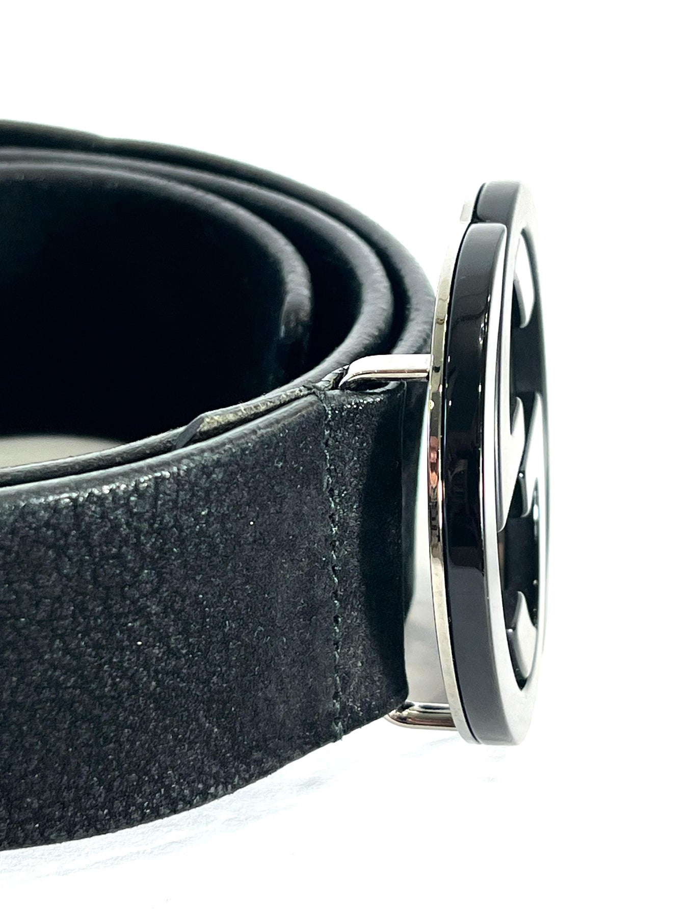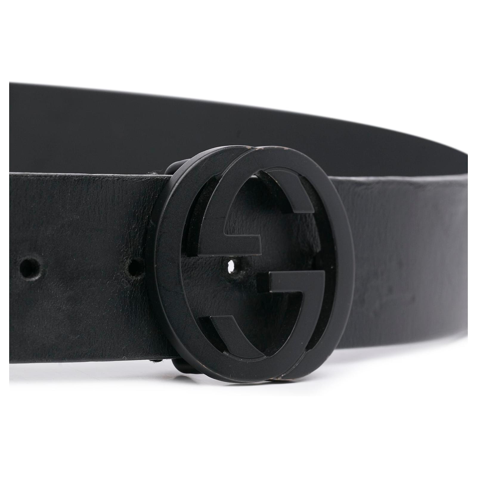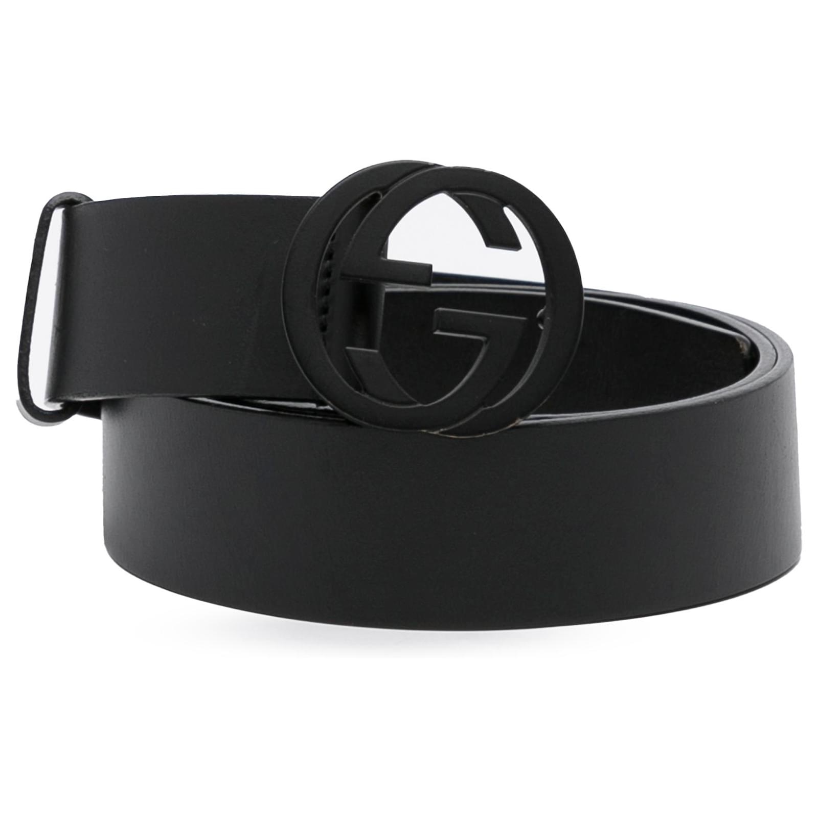 GUCCI INTERLOCKING GG CALFSKIN LEATHER BELT