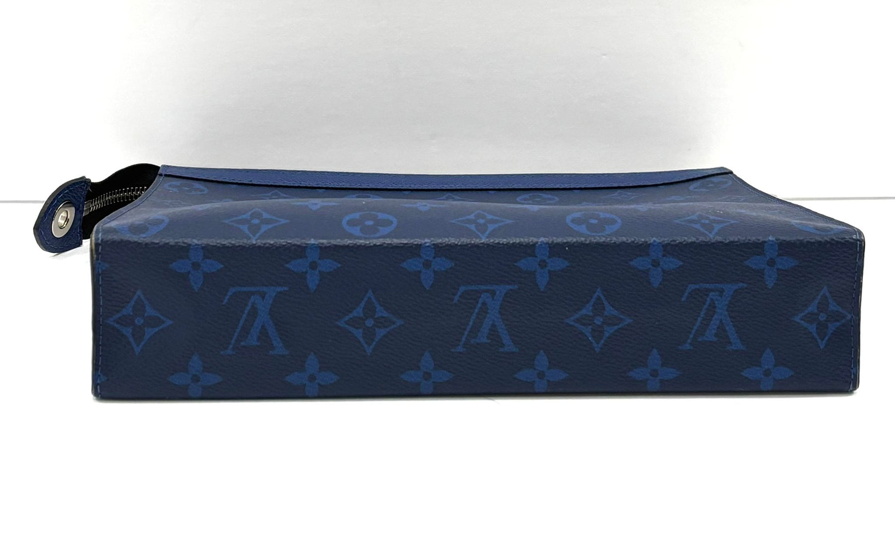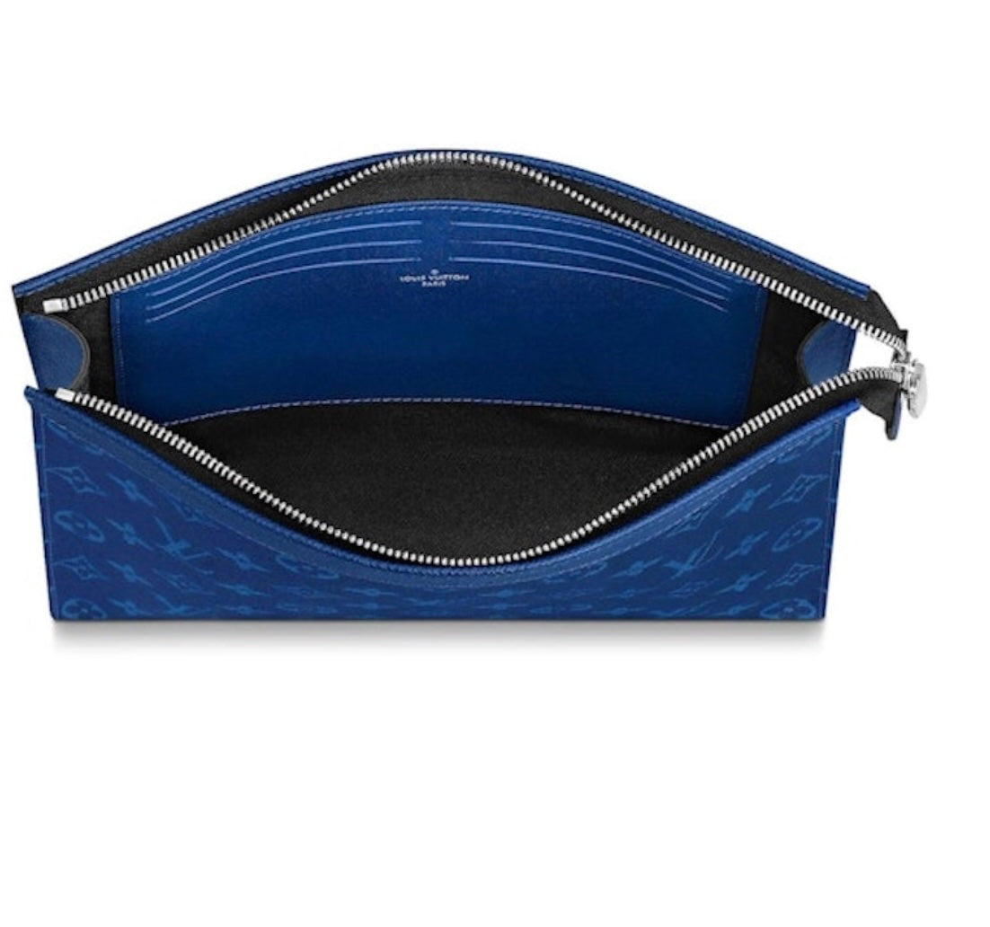 Sophisticated, modern, and unmistakably Louis Vuitton, the Monogram Pacific Blue Pochette Voyage MM is the perfect blend of contemporary style and functional design. Crafted from the House’s bold Monogram Pacific Blue canvas, this sleek pouch features a refined combination of charcoal and black tones, giving it a masculine and versatile edge.