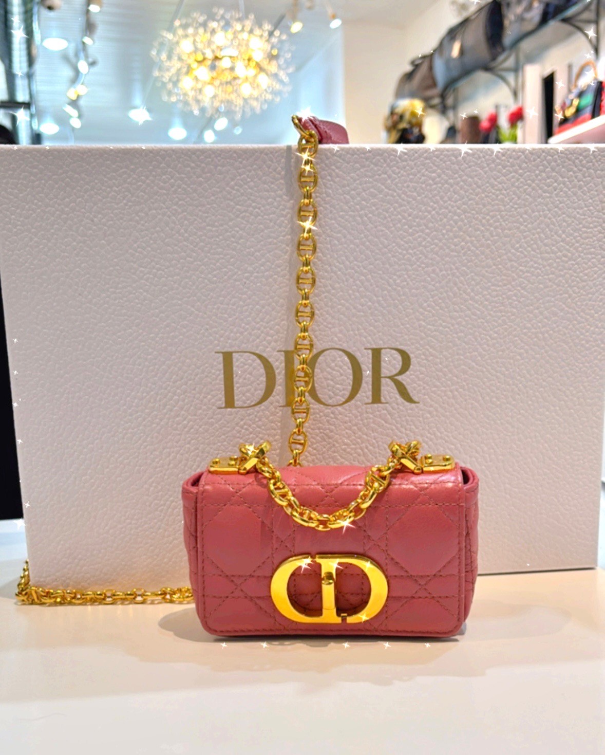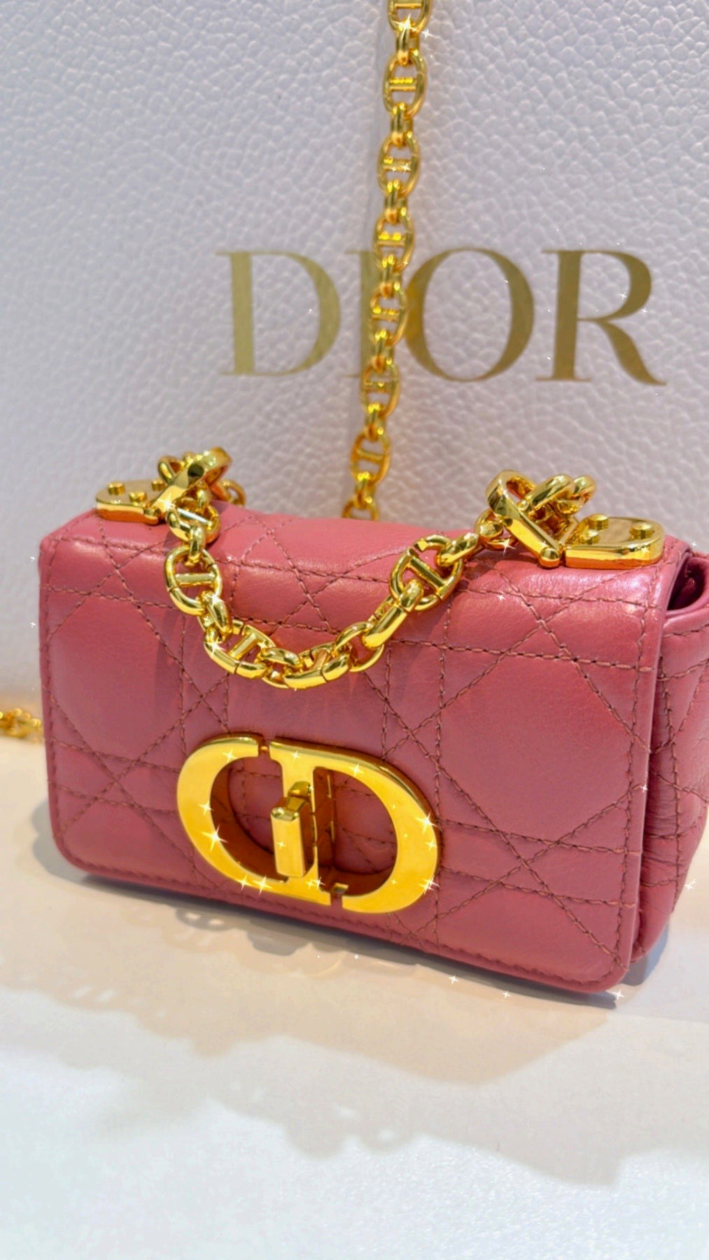 The epitome of timeless elegance, the Dior Mini Caro Bag showcases the Maison’s iconic Cannage quilting in supple calfskin leather. Its structured yet refined silhouette is adorned with the signature “CD” twist-lock clasp in gleaming gold-tone metal, a nod to Dior’s heritage and craftsmanship.