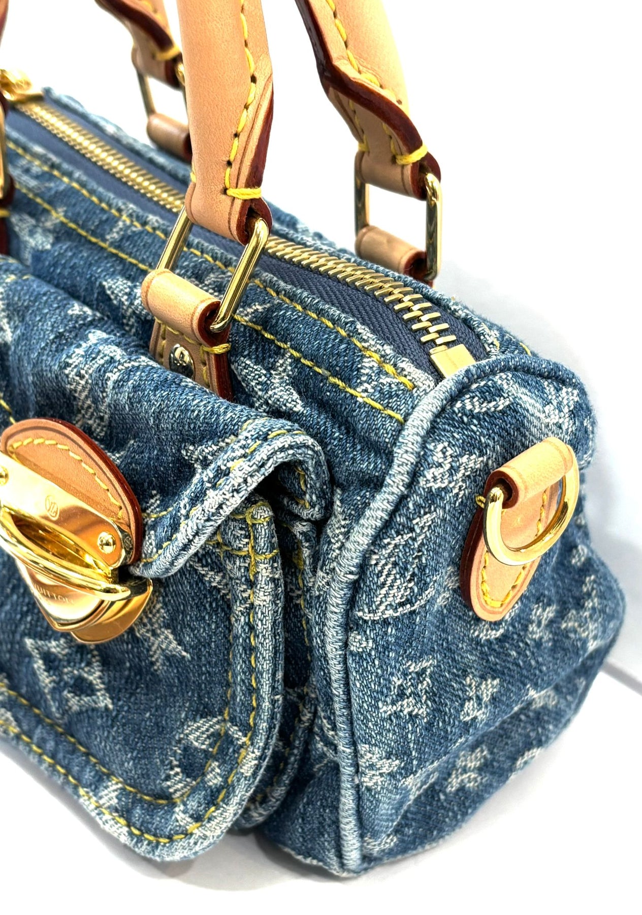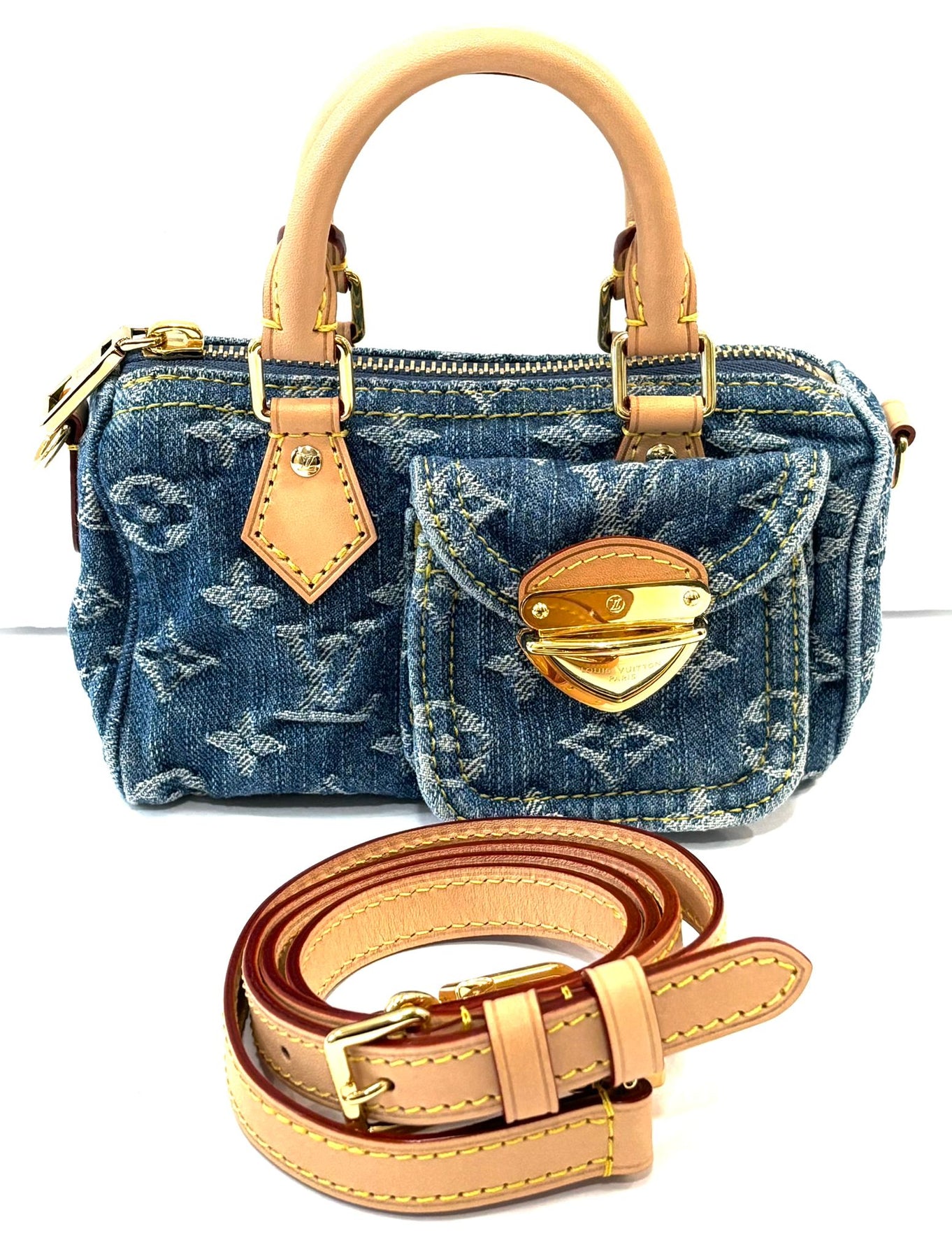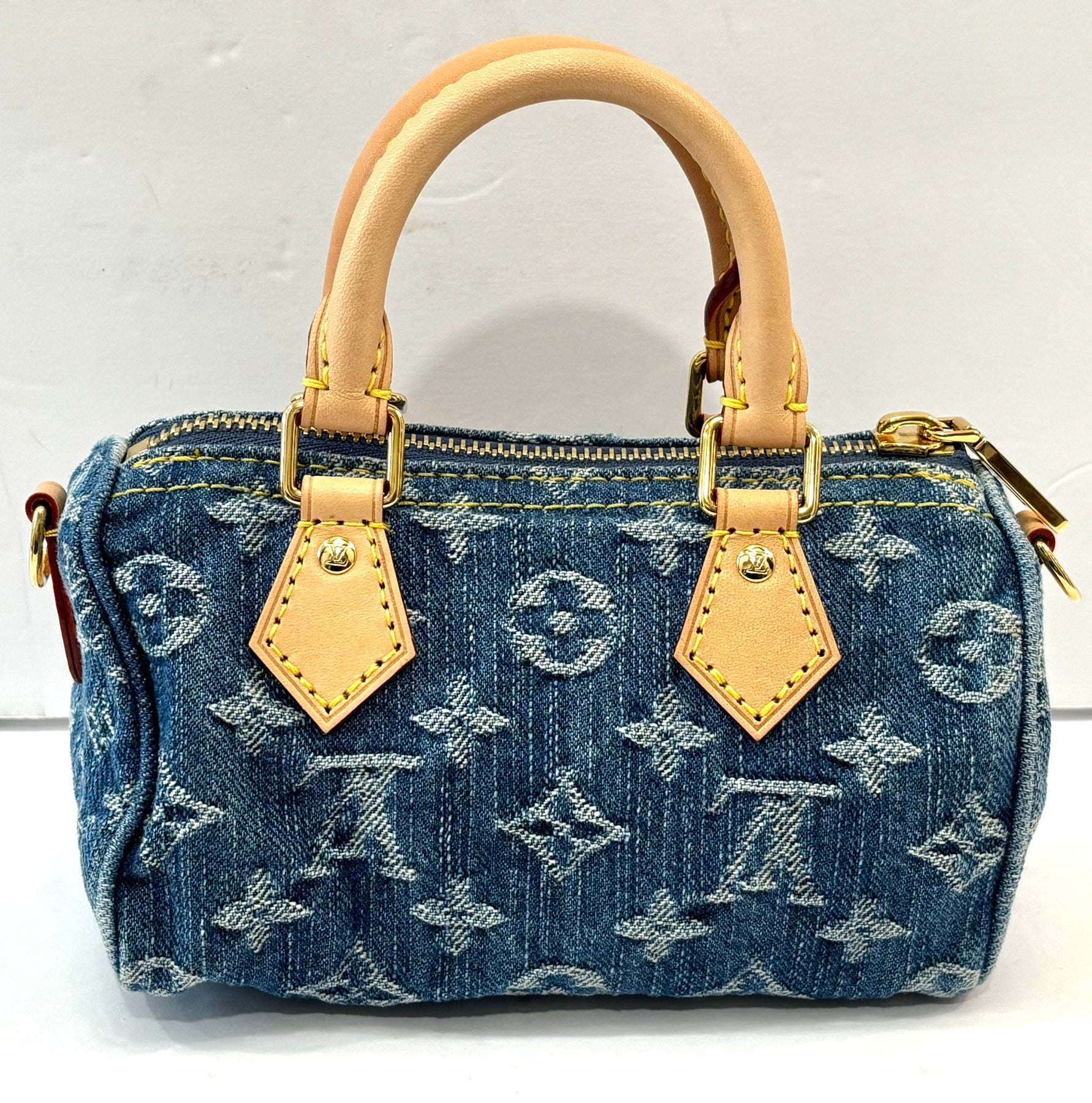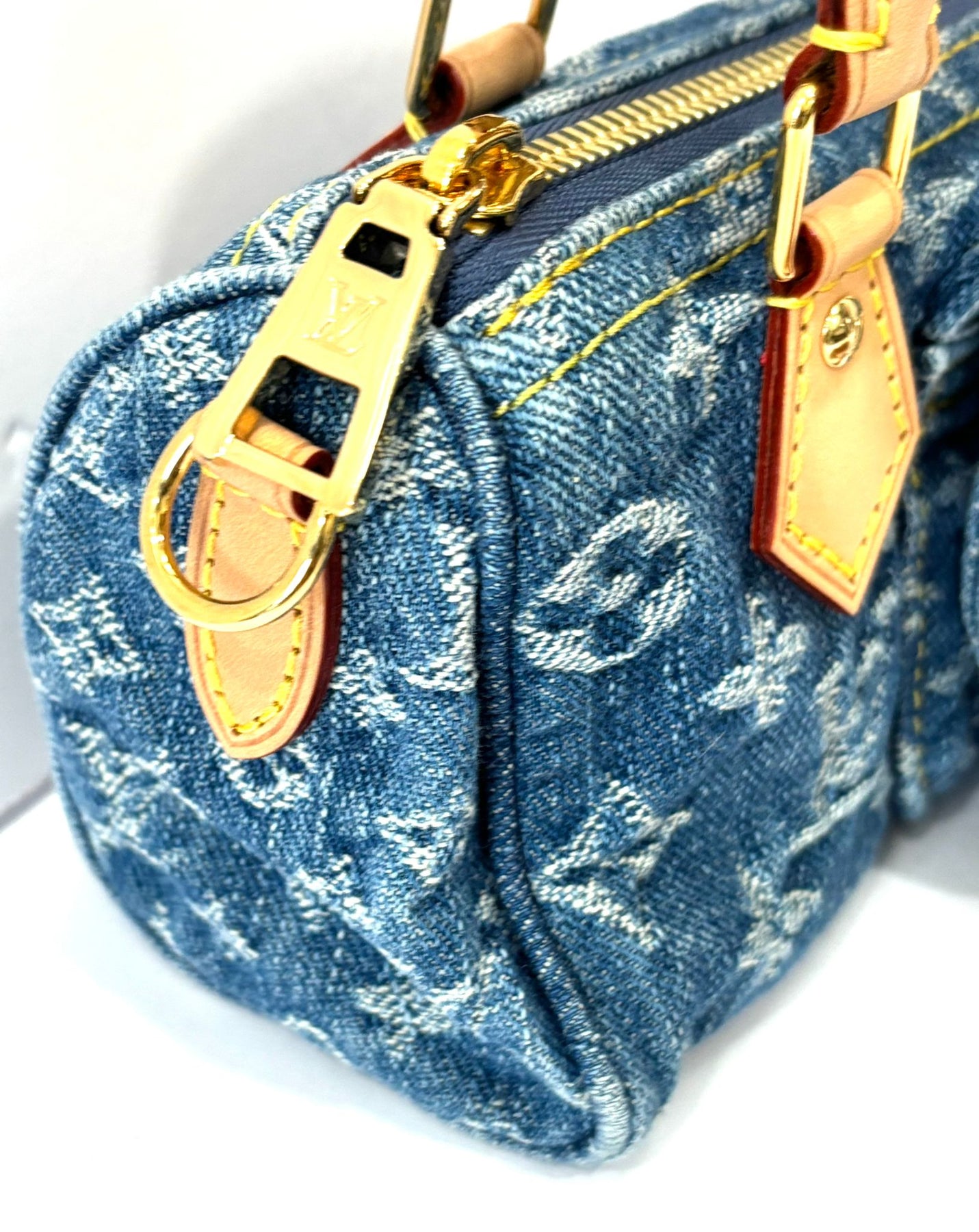 LOUIS VUITTON LV REMIX NANO SPEEDY BLUE DENIM HANDBAG