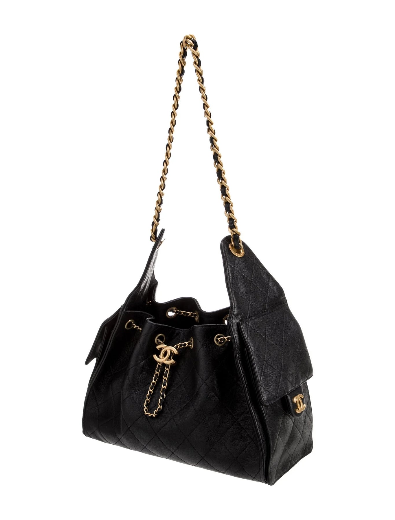 • Closure: Drawstring with aged gold CC logo adjustment button