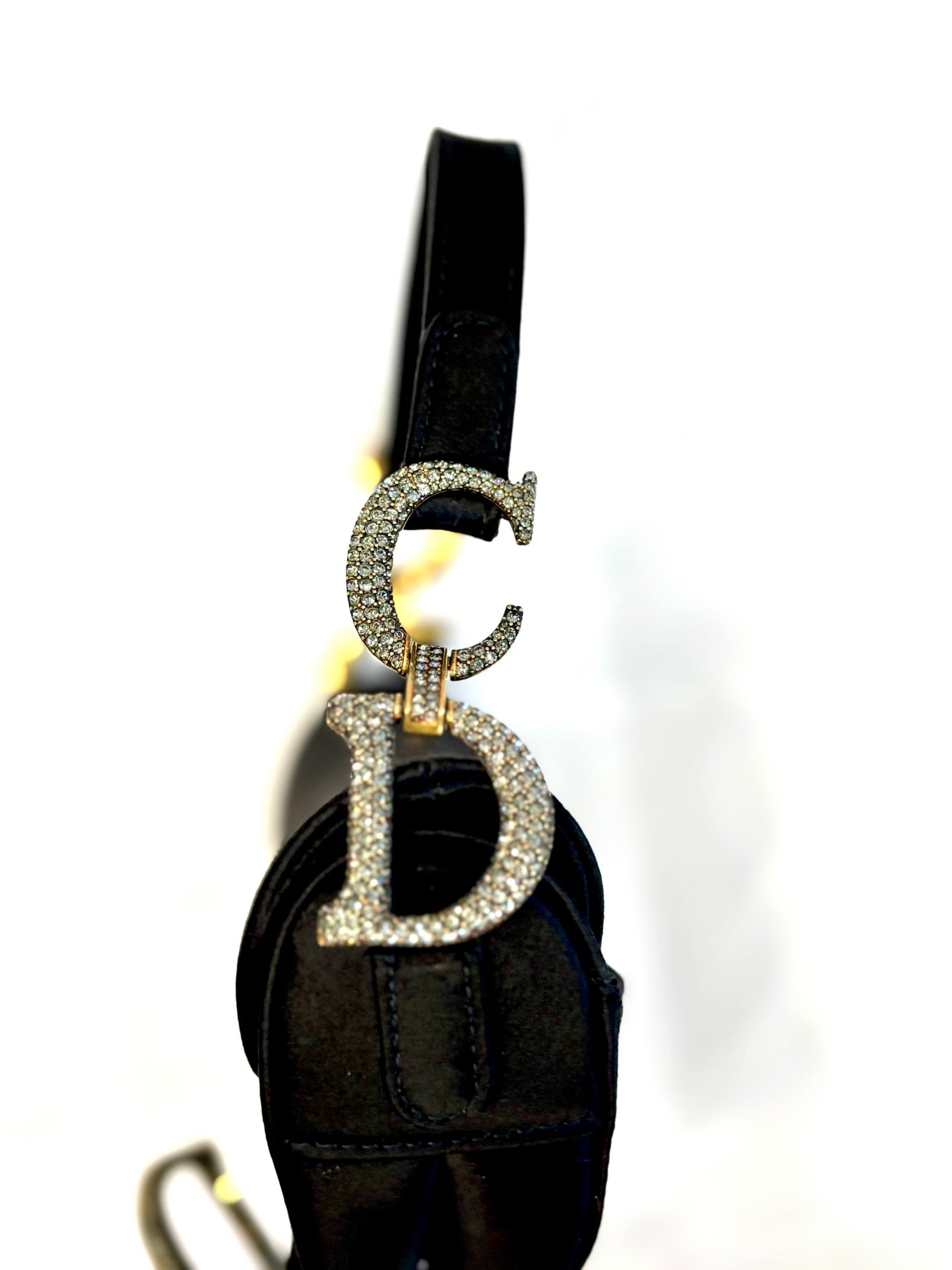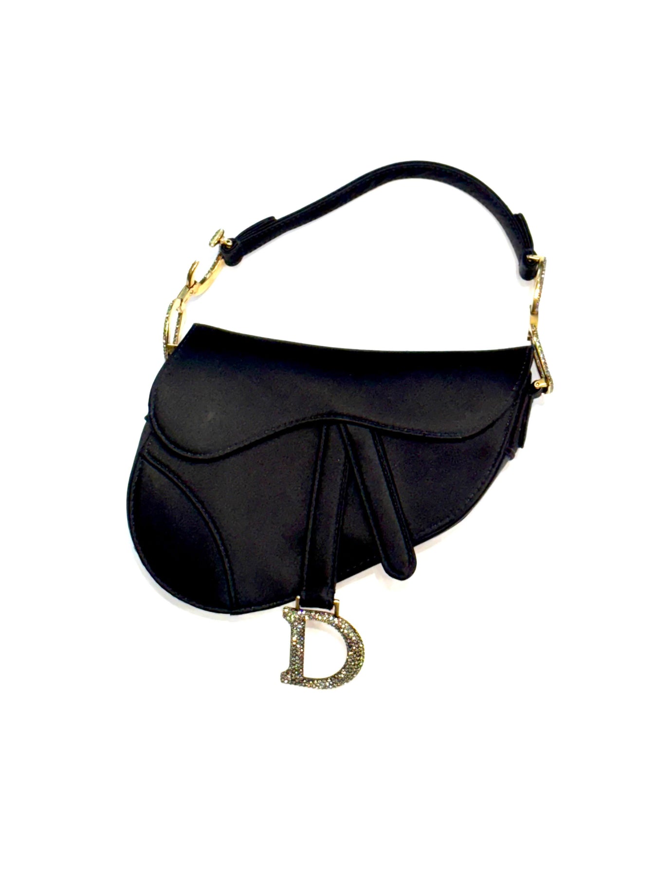 Ultra-glamorous and unmistakably iconic, the Dior Satin Black Crystal-Encrusted CD Saddle Bag elevates the legendary Saddle silhouette with luxurious evening allure. Crafted from smooth black satin, this statement piece dazzles with meticulously placed crystals that illuminate the signature “CD” hardware and accent every curve of the bag.