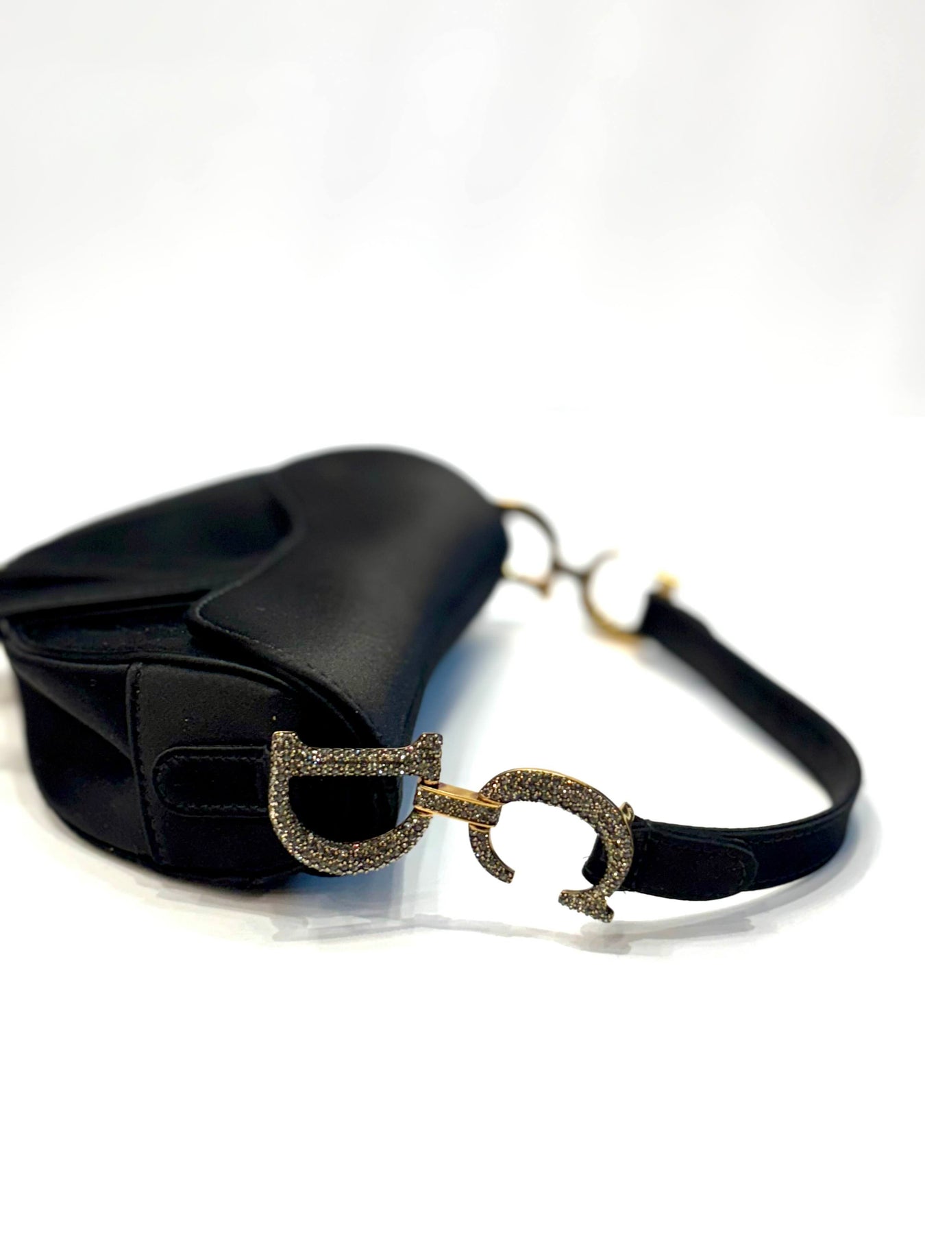 With its sparkling detail, sleek satin finish, and timeless Dior prestige, this crystal-encrusted Saddle Bag is the ultimate show-stopping accessory—perfect for formal events, nights out, or any moment deserving of couture glamour.