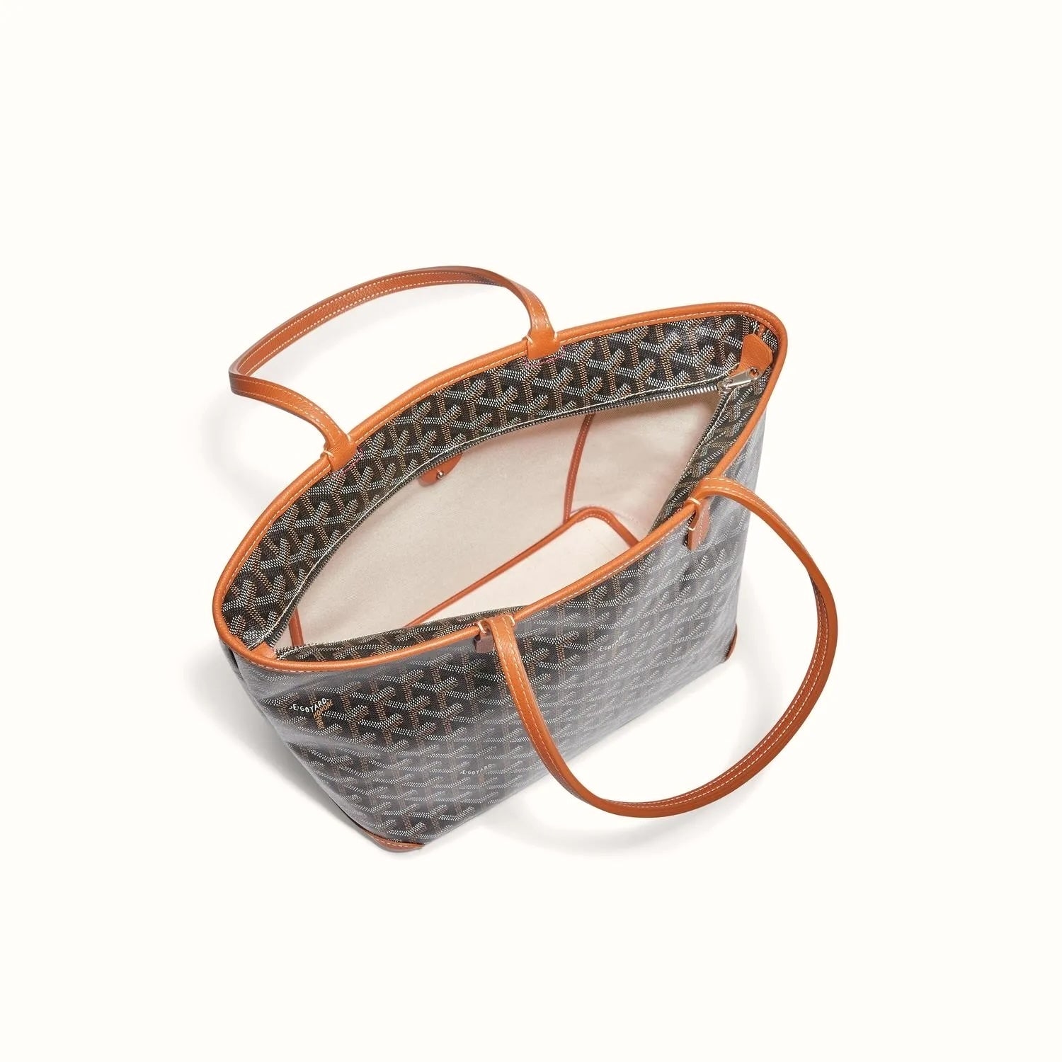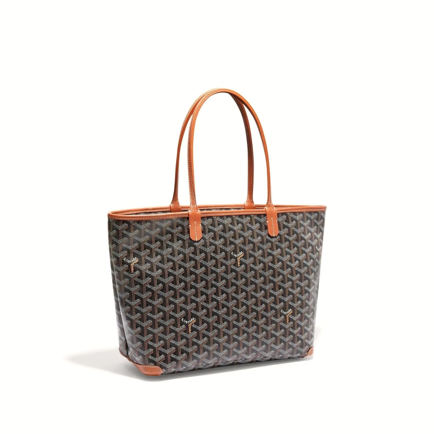 An elevated take on a timeless classic, the Goyard Goyardine Artois MM tote combines refined craftsmanship with everyday functionality. Crafted from Goyard’s signature Goyardine coated canvas, this sophisticated piece showcases the instantly recognizable chevron pattern, hand-painted for a distinctive, artisanal finish.