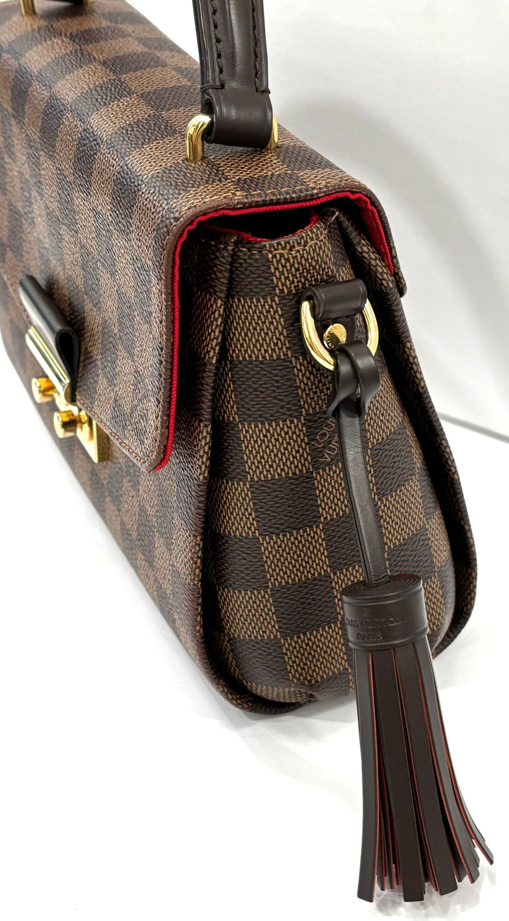 Chic, compact, and irresistibly elegant, the Louis Vuitton Damier Ebene Croisette is the perfect everyday bag for those who love timeless style with a modern twist. Crafted from the House’s signature Damier Ebene coated canvas, this petite beauty features a structured silhouette accented with smooth leather trim and refined gold-tone hardware.