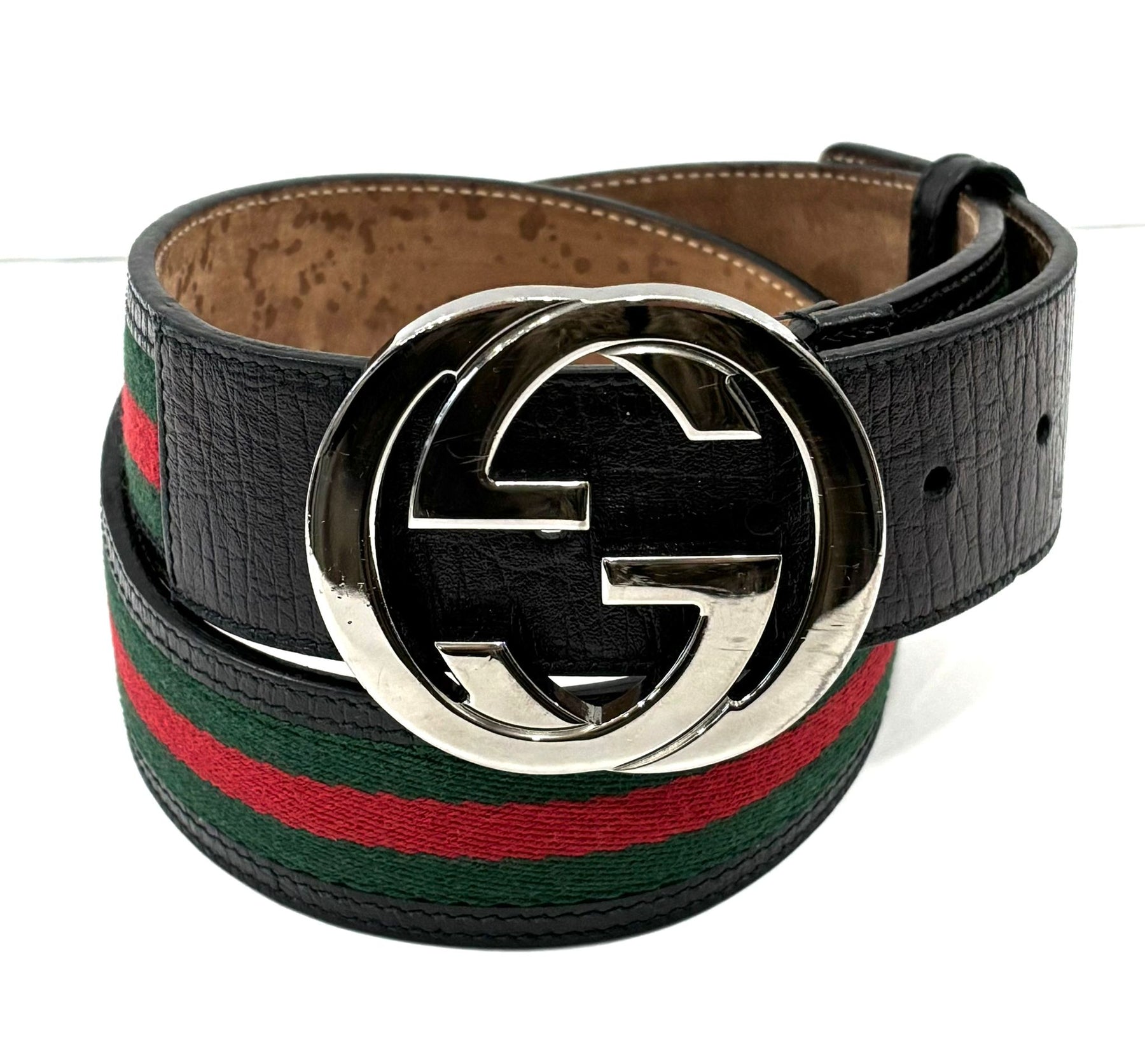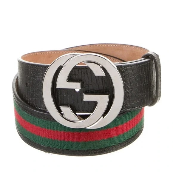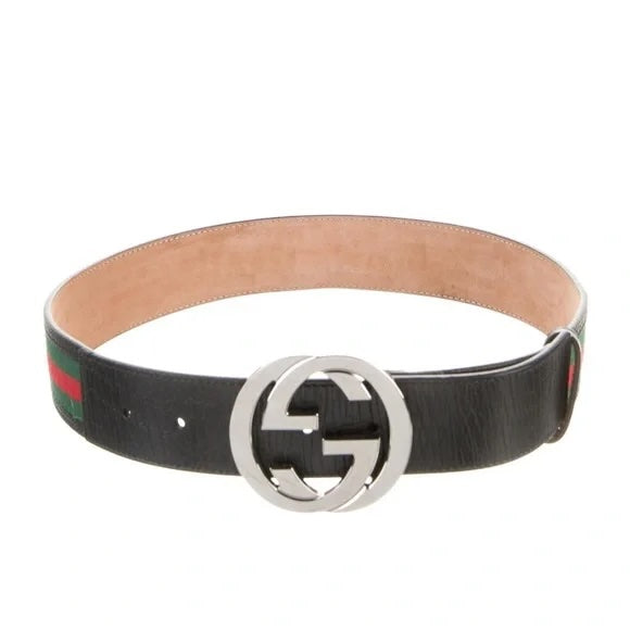 GUCCI INTERLOCKING G WEB ACCENT LEATHER BELT