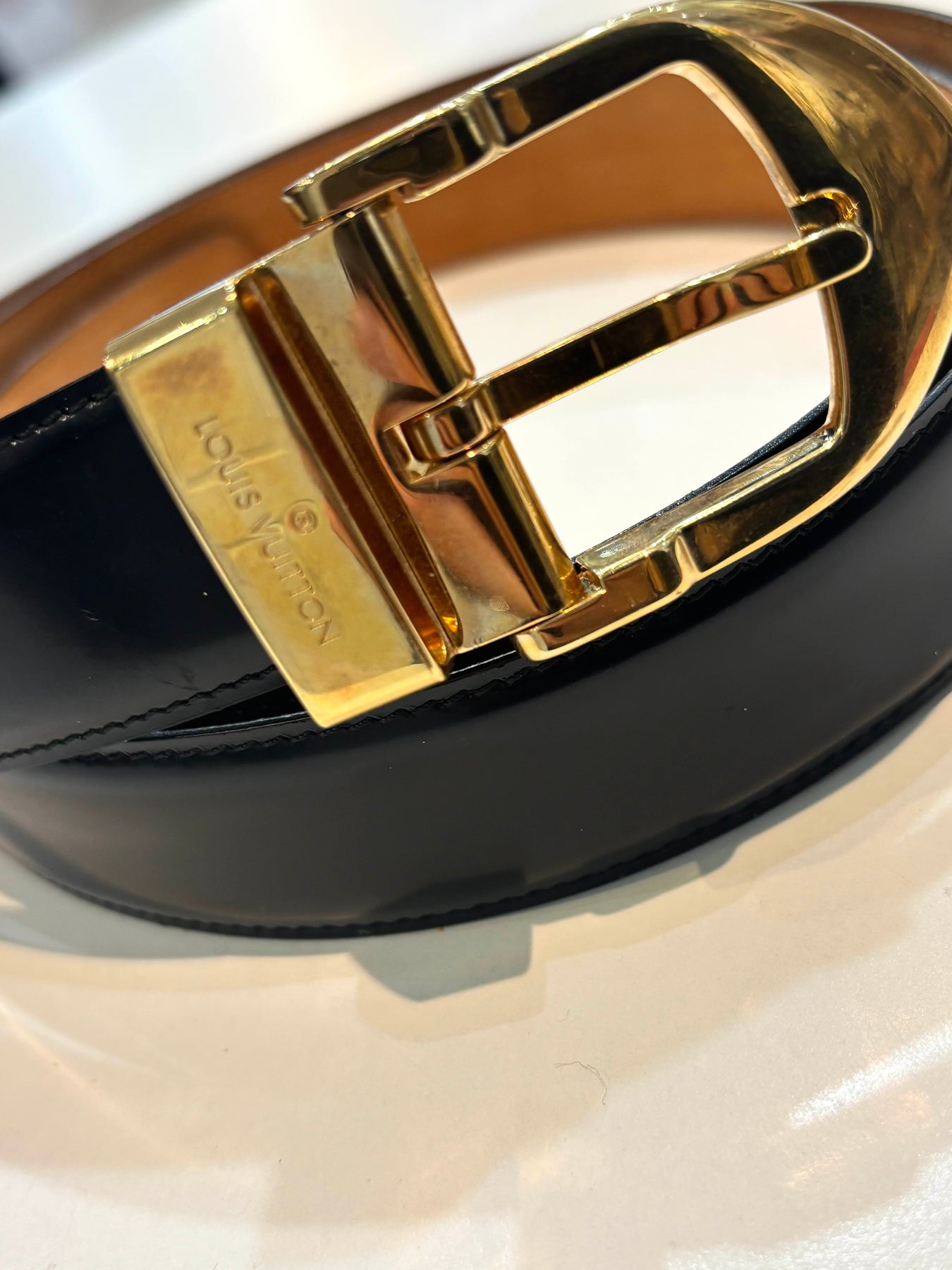 LOUIS VUITTON TAIGALEATHER GOLD-TONE BUCKLE BELT
