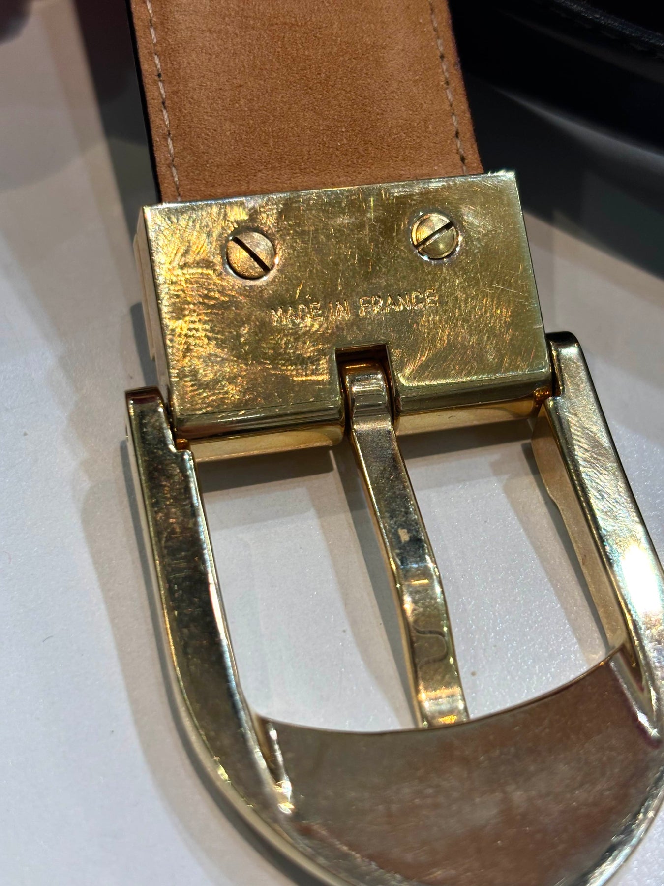 Elevate your wardrobe with this Louis Vuitton Black Taiga Leather Belt, Crafted from supple, high-quality leather and finished with luxurious Gold-tone hardware. Designed in size XL for a comfortable, versatile fit, this belt showcases the brand’s signature sophistication through clean lines and impeccable craftsmanship. Perfect for pairing with tailored trousers, denim, or evening wear, it adds a polished touch to any ensemble.