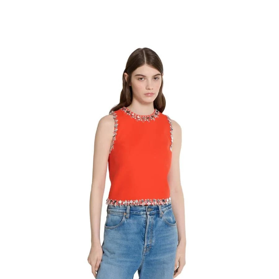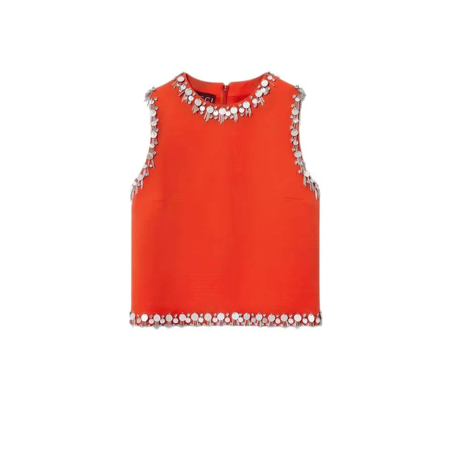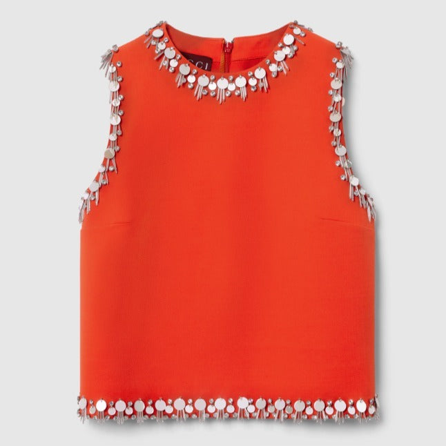 GUCCI CREPE WOOL SILK EMBROIDERED TOP