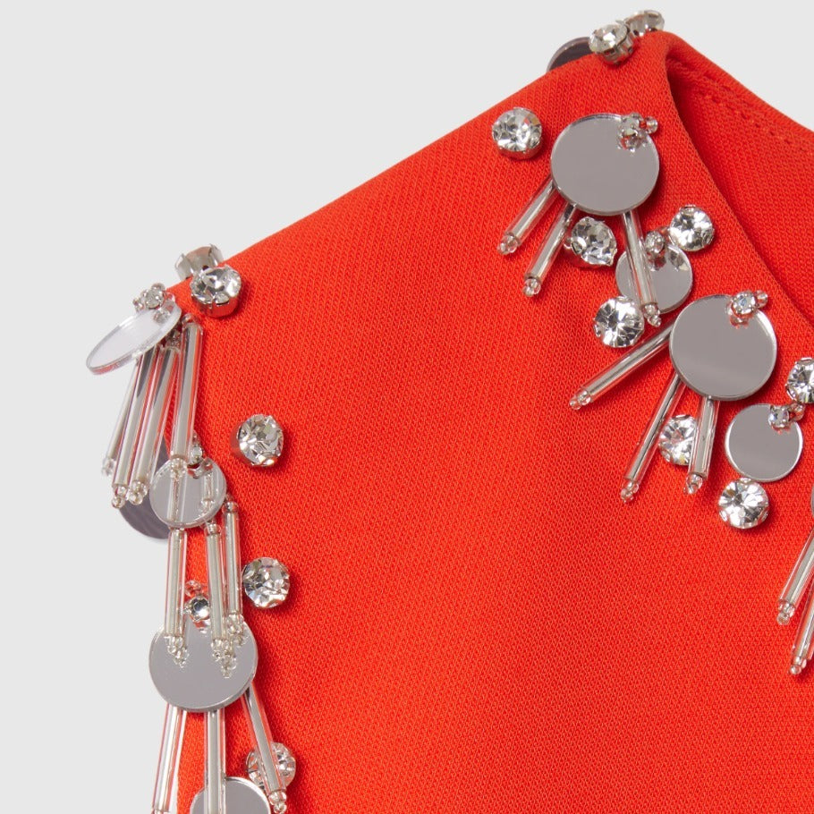 Intricate embroidery detailing—a signature of Gucci’s artisanal heritage—adds depth, character, and a touch of opulence to the minimalist silhouette. Thoughtfully designed with a flattering fit and feminine structure, this piece transitions seamlessly from daytime sophistication to evening elegance.