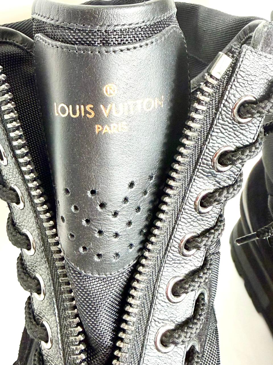 These stylish Louis Vuitton men’s boots offer a refined balance of luxury and contemporary design. Crafted from a sophisticated blend of black suede and smooth leather, they feature a sleek ankle-boot silhouette with a lace-up front and functional front zipper for added ease. Polished hardware and subtle branding complete the look, while the sturdy rubber sole provides comfort and durability. Perfect for smart-casual wear, these boots transition effortlessly from day to evening.