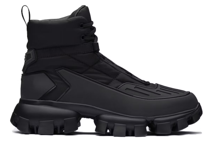 Crafted with premium materials and expert construction, the Cloudbust Thunder boots feature a sleek upper paired with Prada’s signature exaggerated sole. The high-top profile offers enhanced support and visual impact, while the dynamic tread pattern provides traction and stability across varied surfaces.