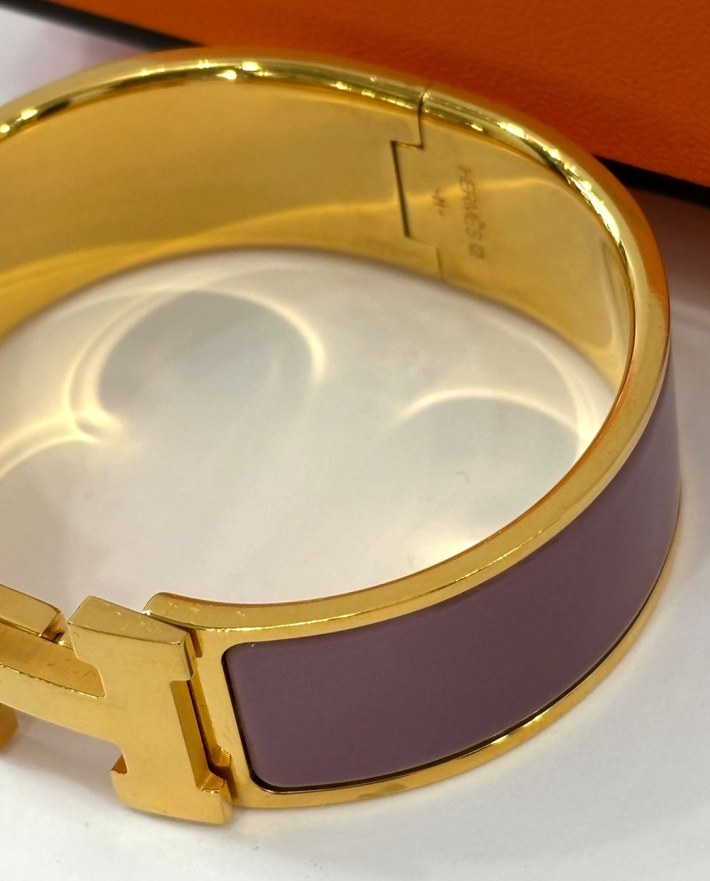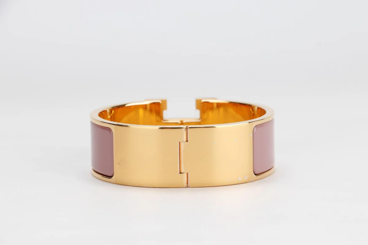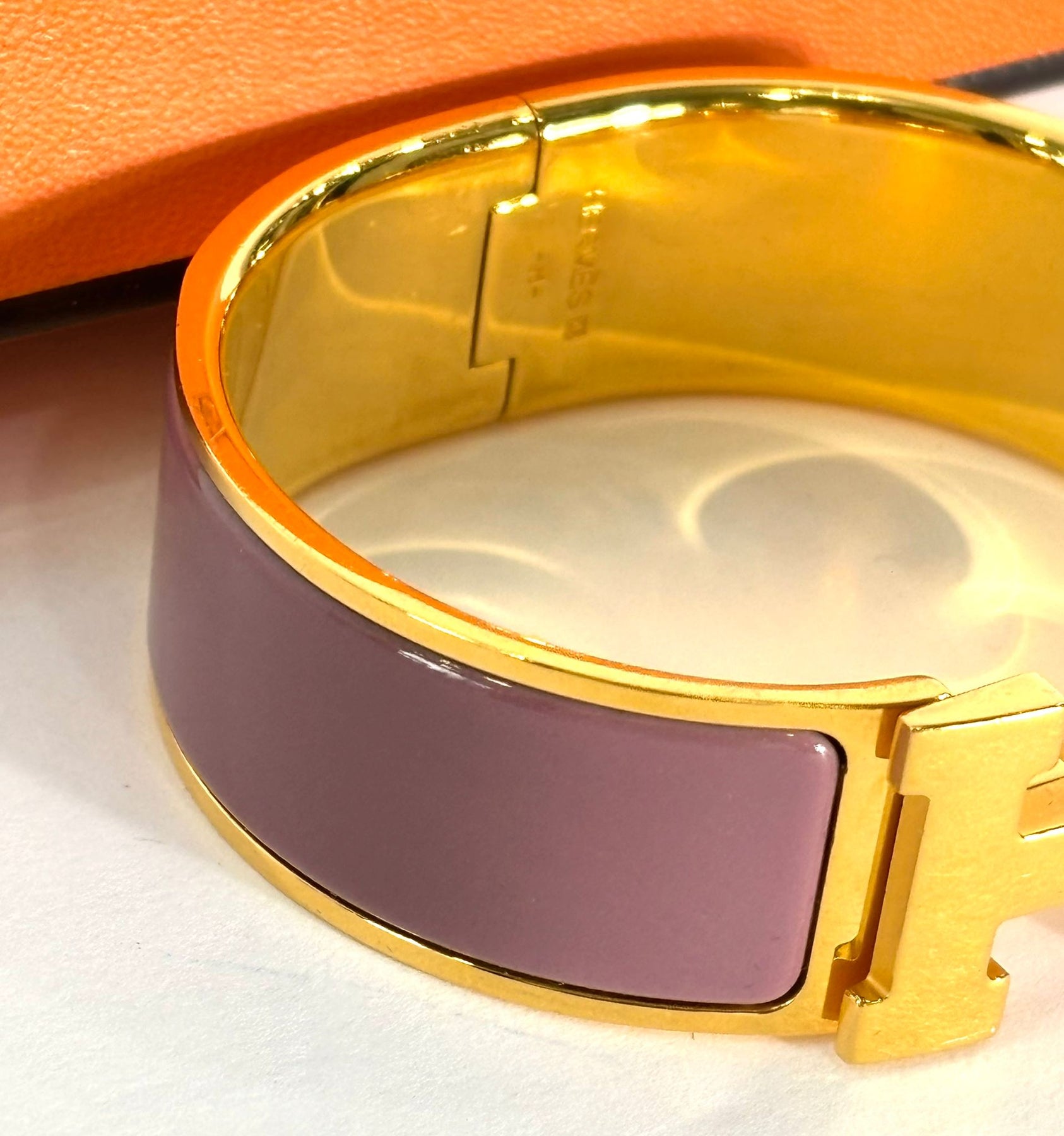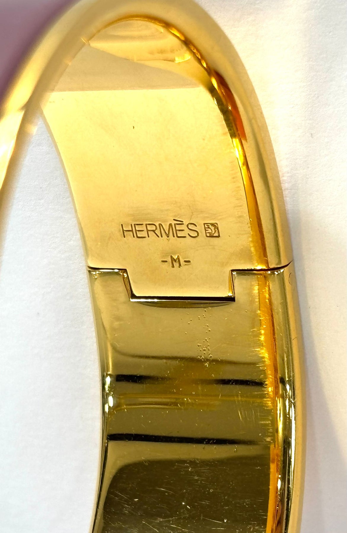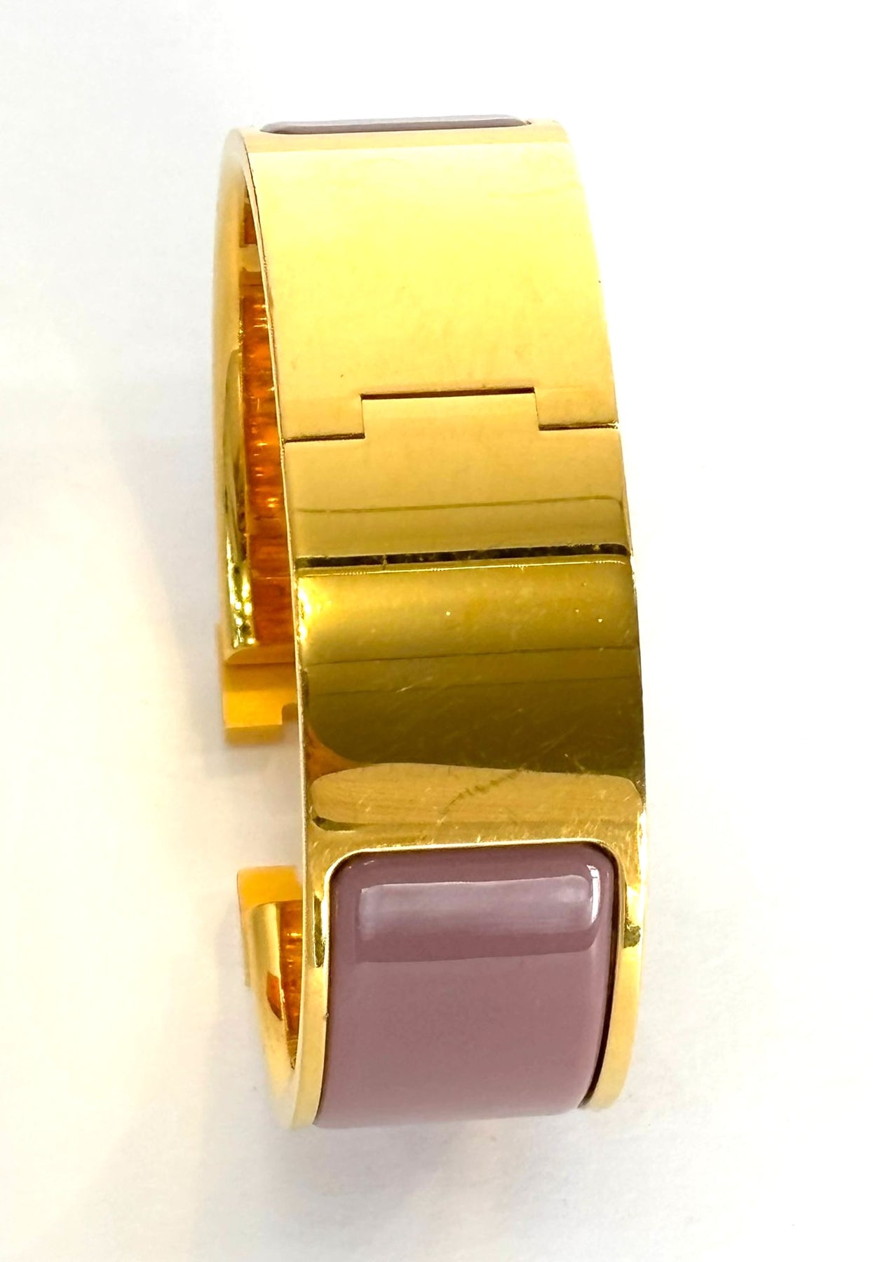 HERMÈS CLIC CLAC H ENAMEL WIDE GOLD PLATED CUFF BRACELET