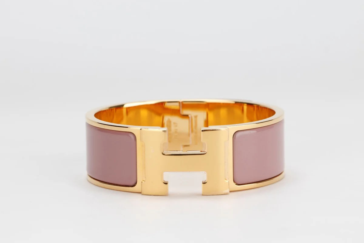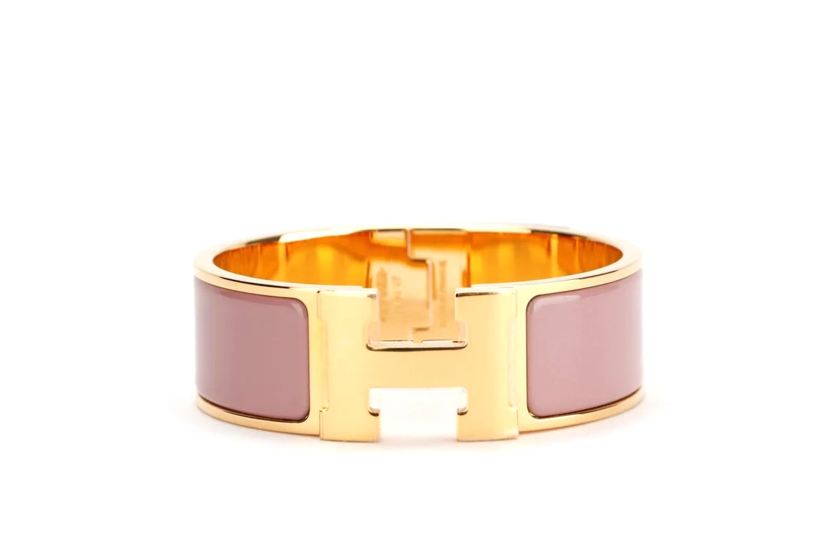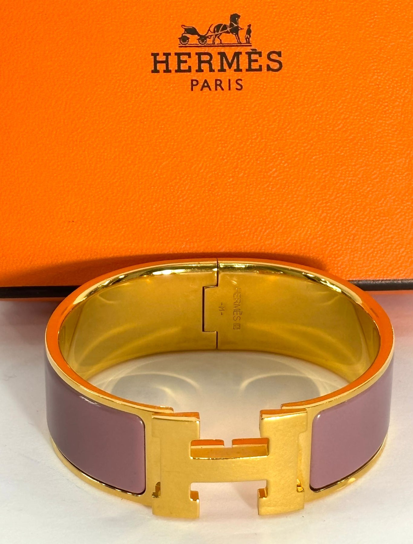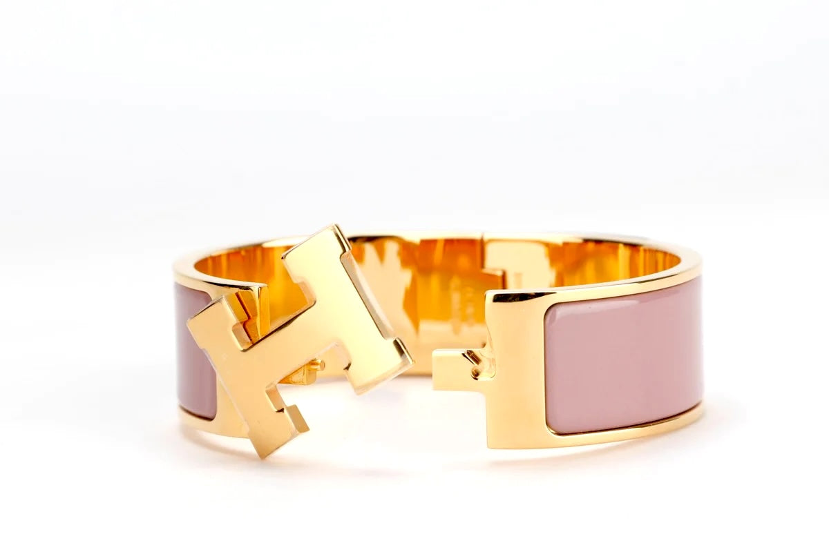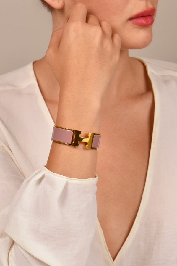 HERMÈS CLIC CLAC H ENAMEL WIDE GOLD PLATED CUFF BRACELET