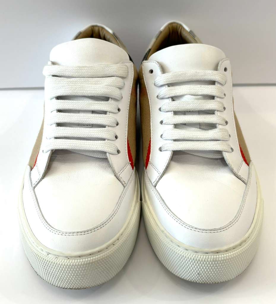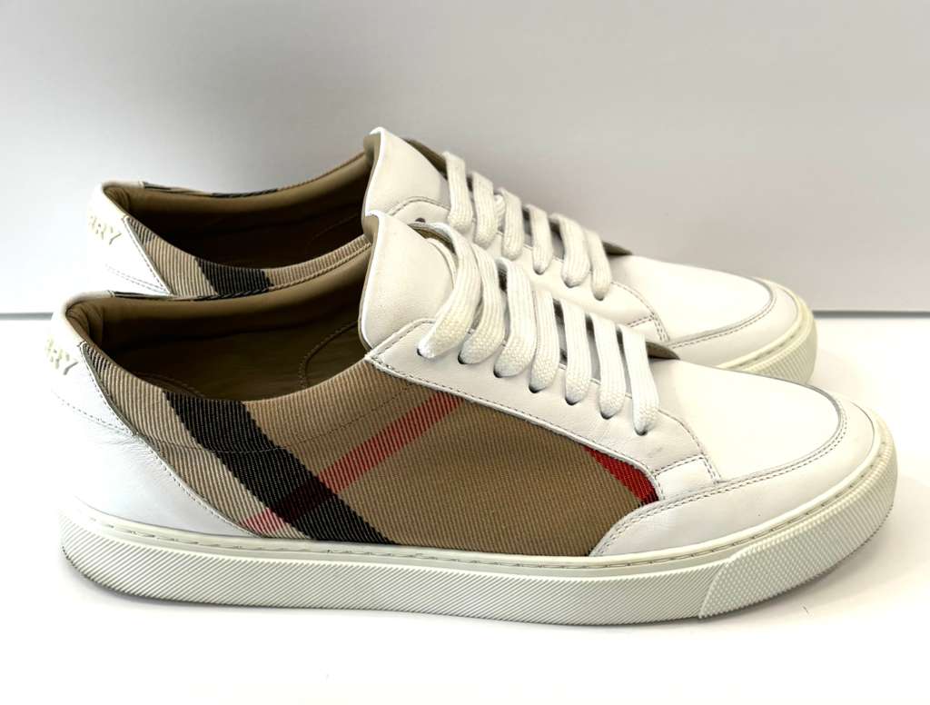 Iconic and instantly recognizable, the Burberry Vintage Check Sneakers bring heritage style into a modern streetwear silhouette. Featuring the house’s signature Vintage Check pattern, these sneakers blend classic British luxury with everyday versatility. A clean, low-profile design is balanced by a comfortable rubber sole, making them ideal for all-day wear. Finished with subtle Burberry branding, they pair effortlessly with denim, tailored trousers, or casual fits for a refined yet relaxed look.