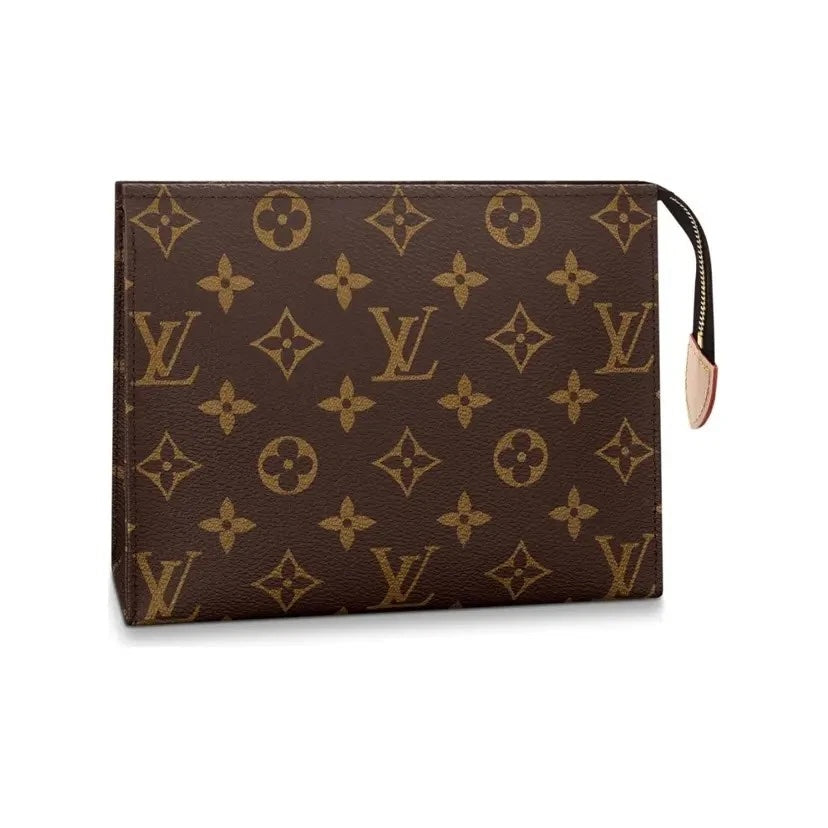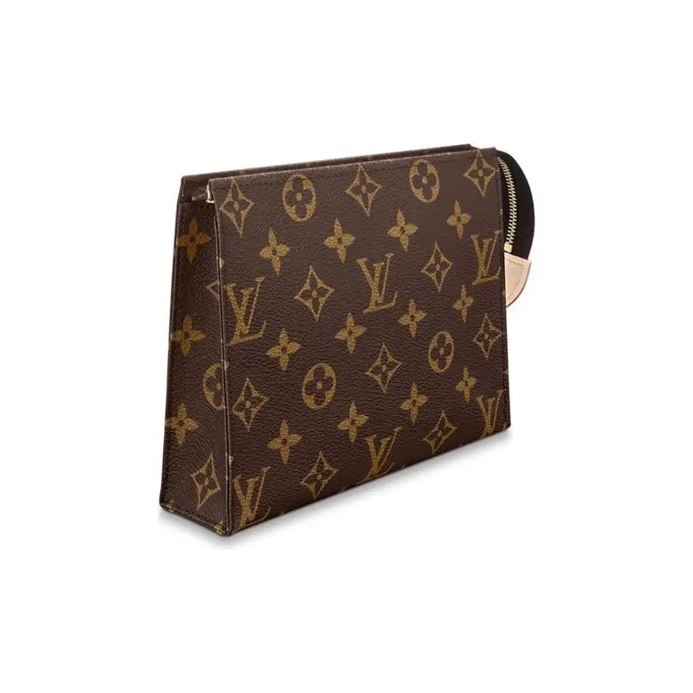 Crafted from Louis Vuitton’s iconic Monogram coated canvas, the Poche Toilette 19 is a timeless travel essential that blends functionality with classic sophistication. Finished with natural cowhide-leather trim and gold-tone hardware, this compact yet spacious toiletry pouch is designed to securely store beauty and grooming essentials while on the go.