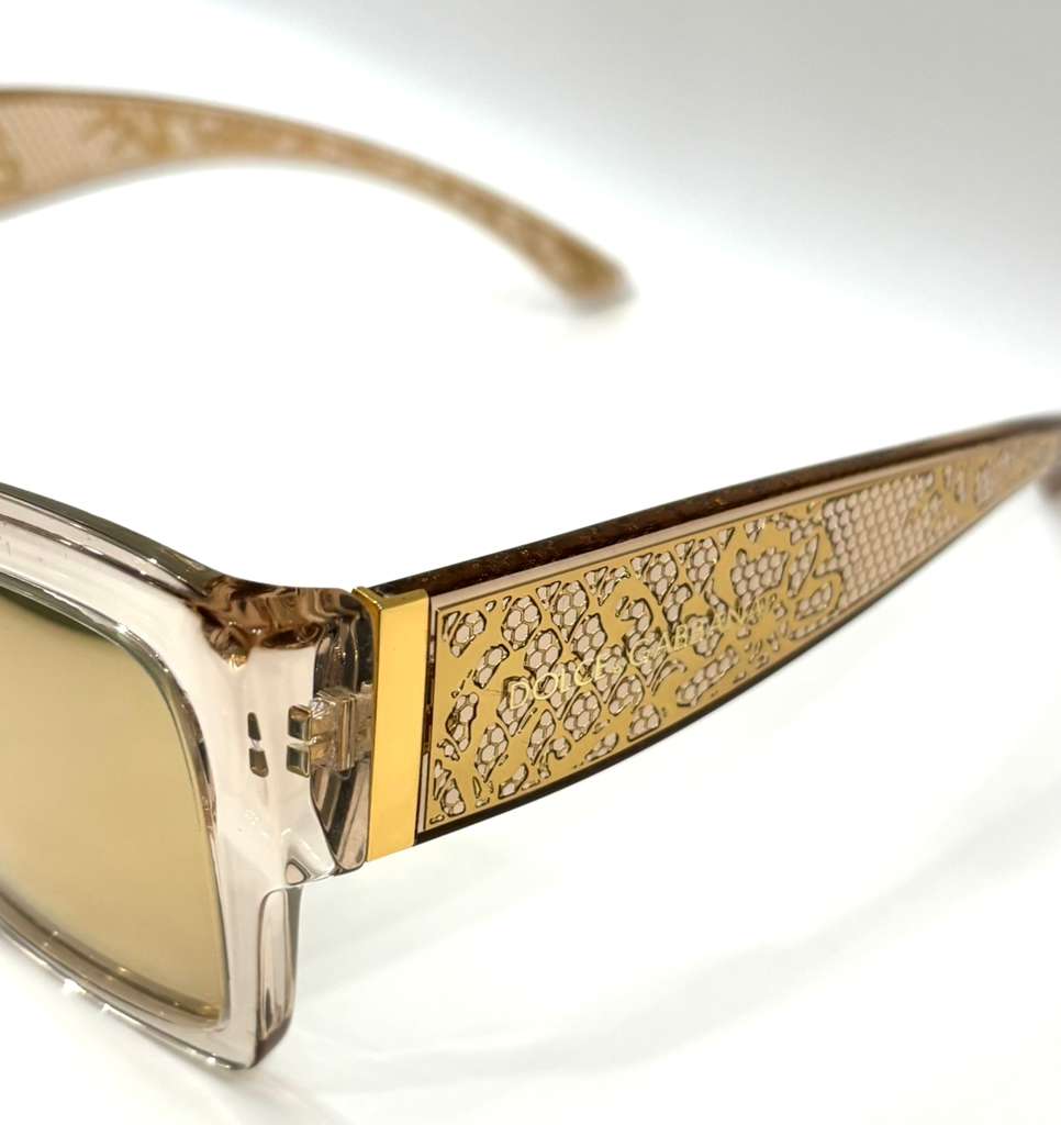 Elevate your eyewear collection with the Dolce & Gabbana DG Lace Sunglasses, a luxurious fusion of Italian craftsmanship and feminine sophistication. These standout sunglasses feature a lace-embellished acetate frame and temples that capture both elegance and modern flair — a signature look that’s unmistakably Dolce & Gabbana.