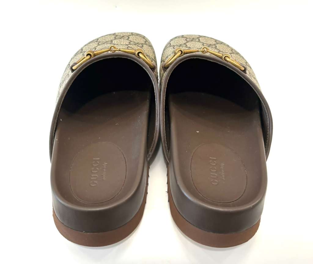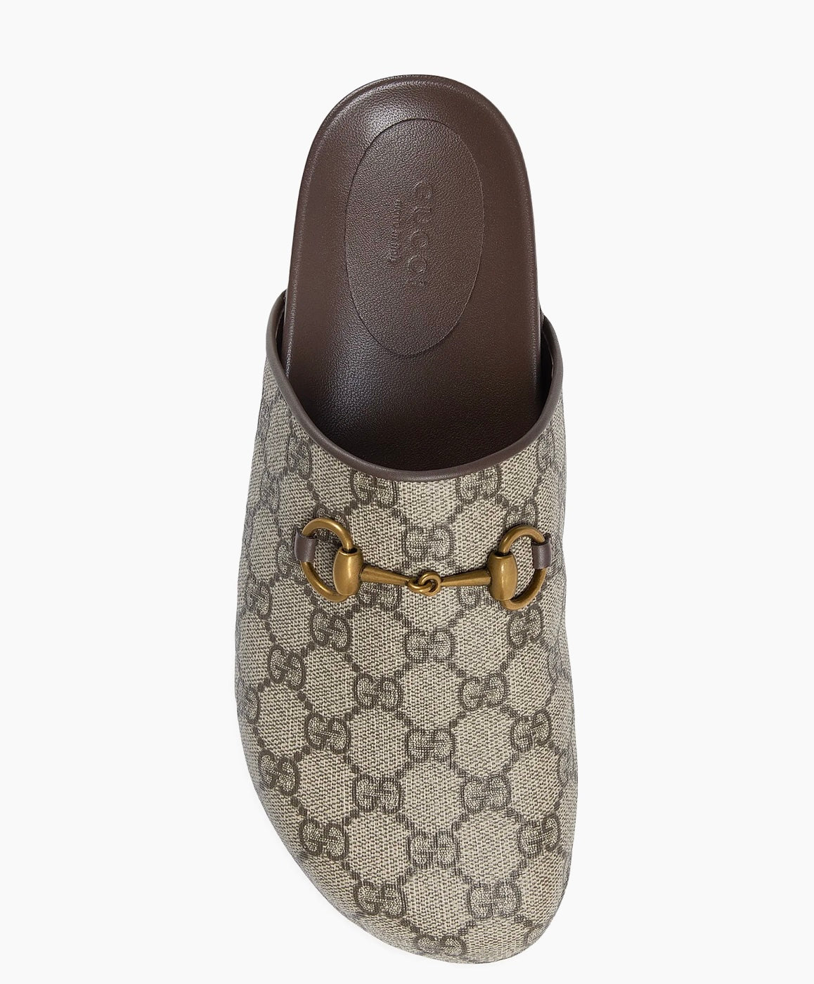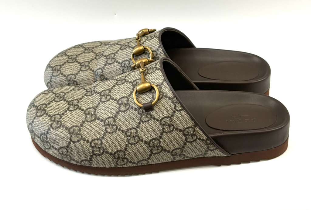Crafted in Italy from signature GG Supreme canvas in the classic beige and ebony colorway, these mules showcase one of Gucci’s most recognizable motifs—designed to be both durable and timeless. The upper is accented with the iconic Gold-tone Horsebit detail, a nod to the brand’s deep-rooted equestrian heritage dating back decades.