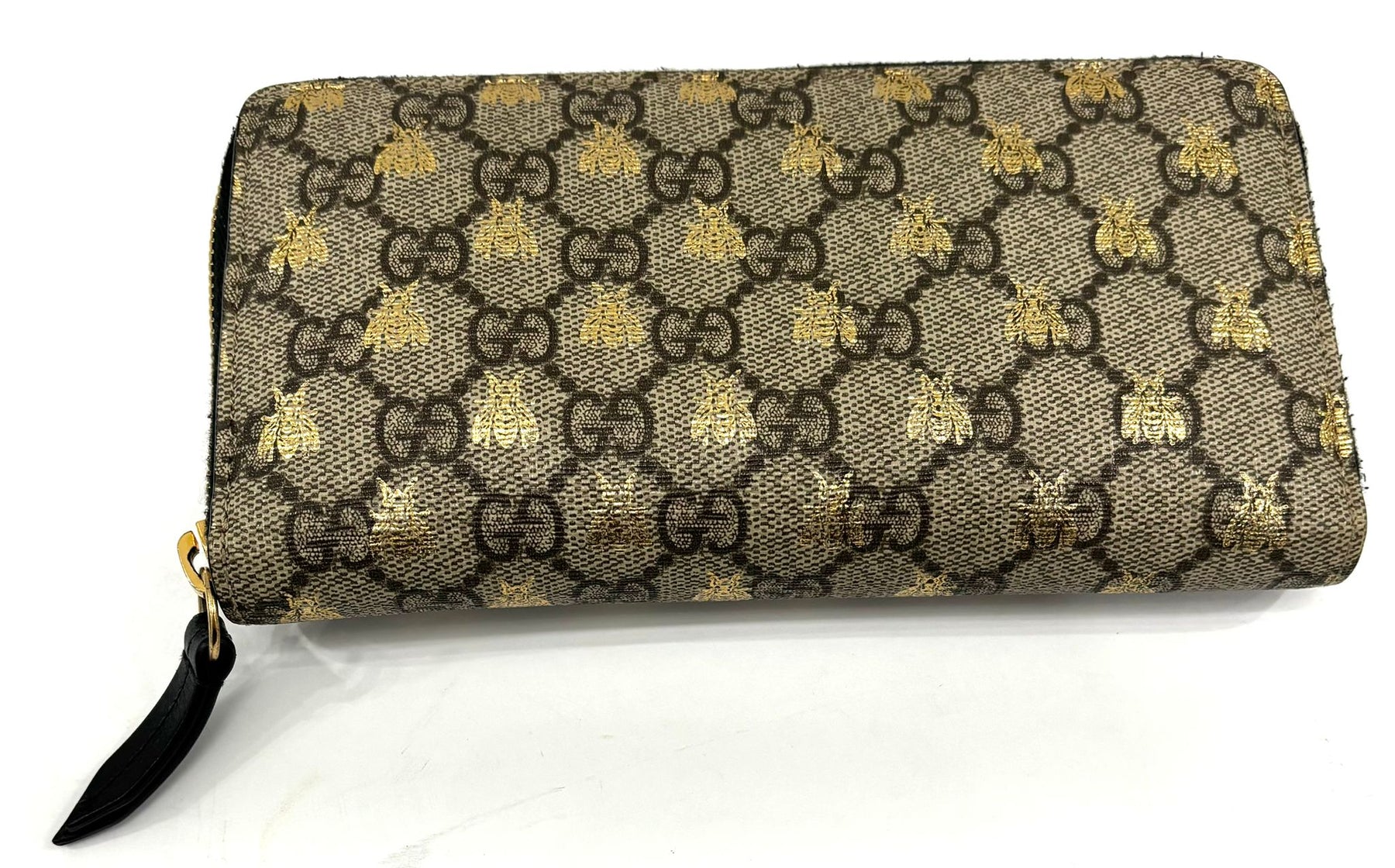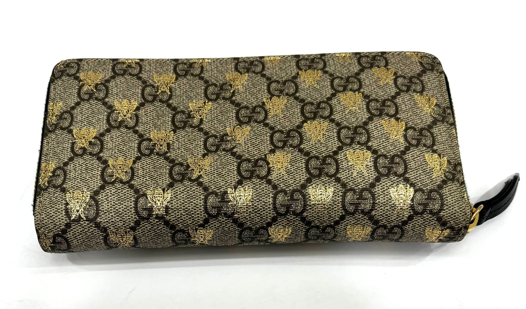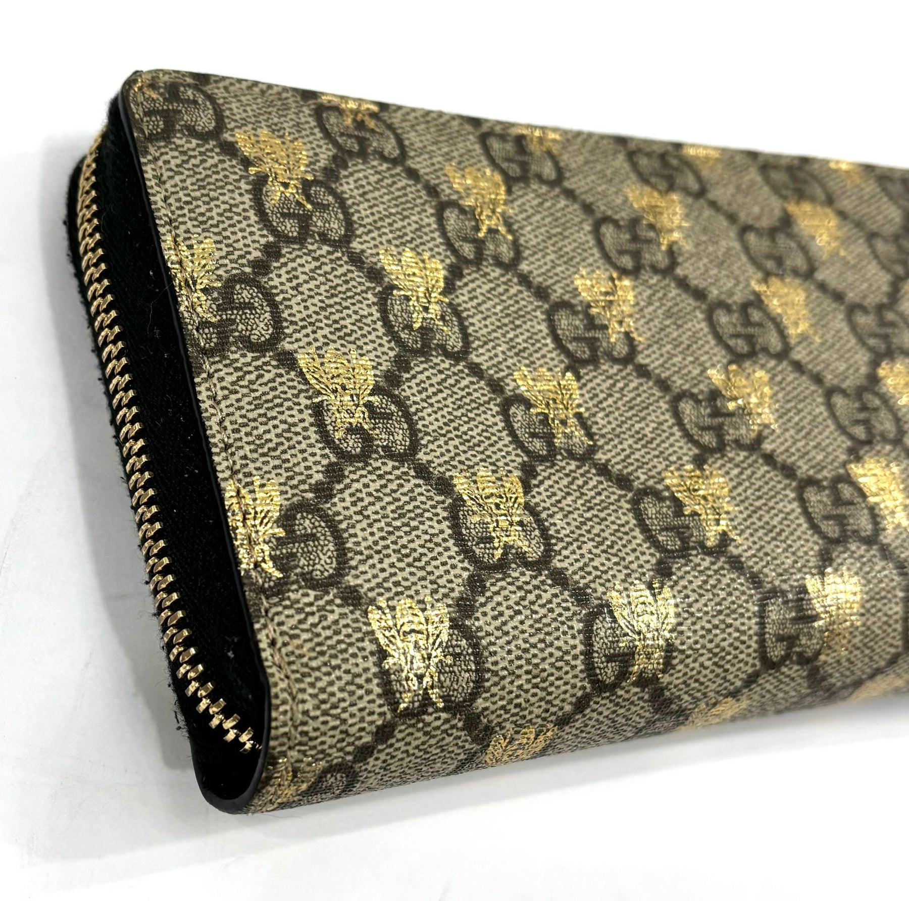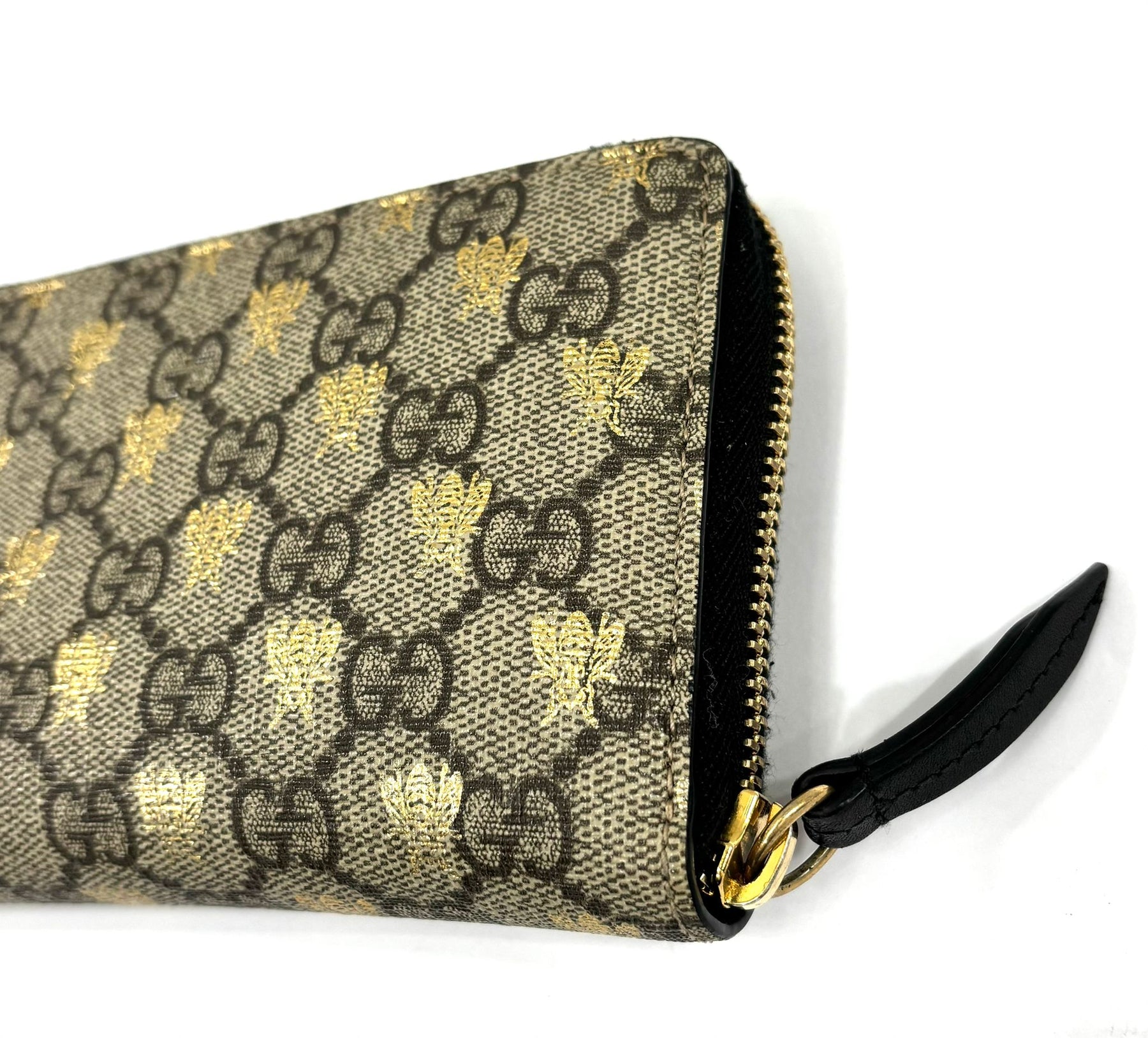 GUCCI GG SUPREME MONOGRAM BEES ZIP AROUND WALLET