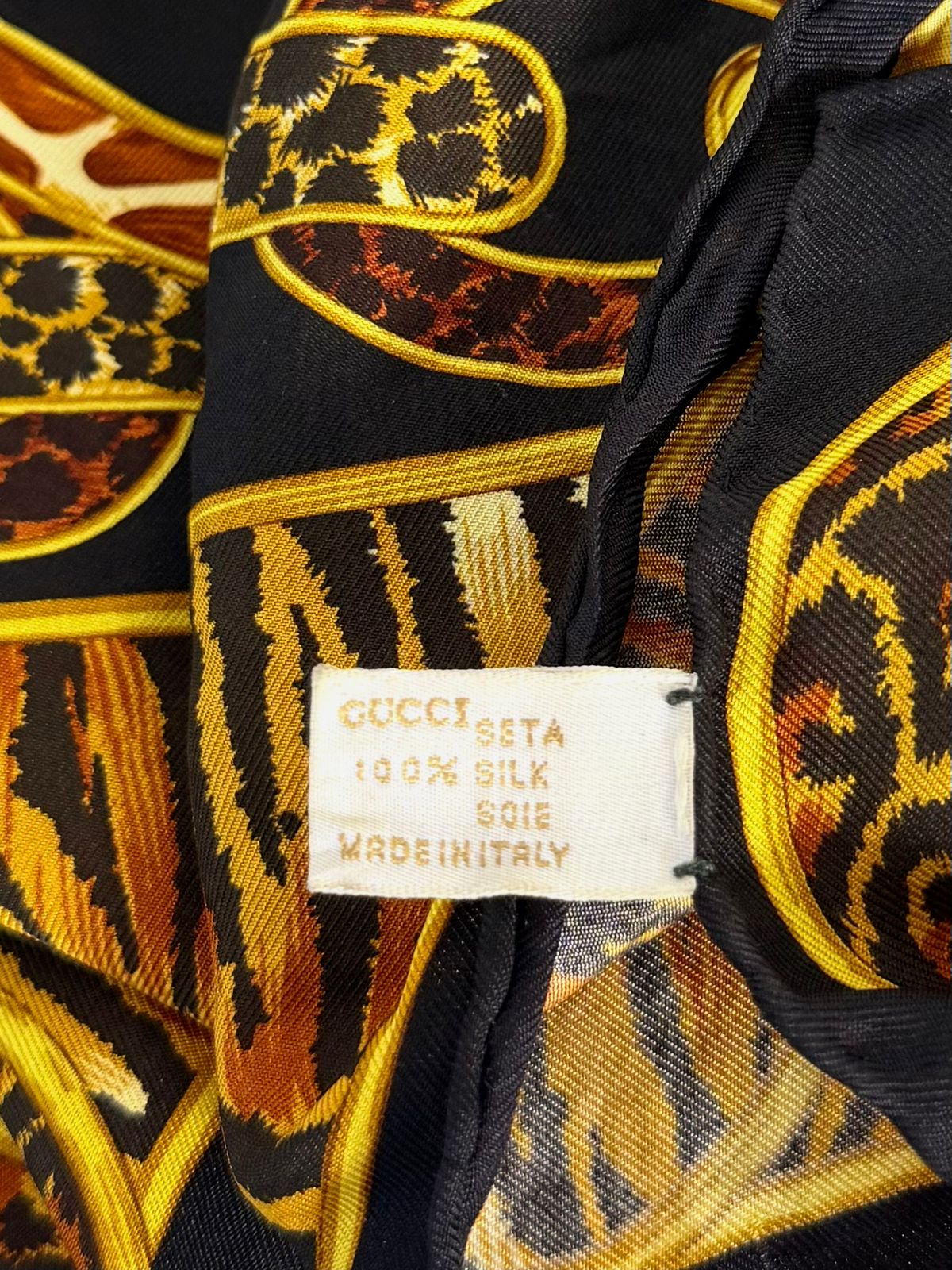 GUCCI SILK GG ANIMAL PRINT HORSEBIT SILK SCARF