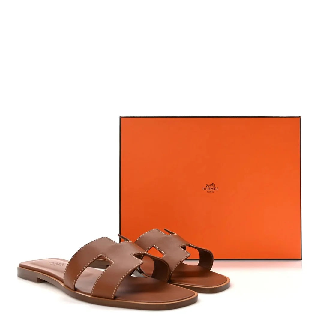 HERMÈS CALFSKIN LEATHER ORAN SANDALS MULES