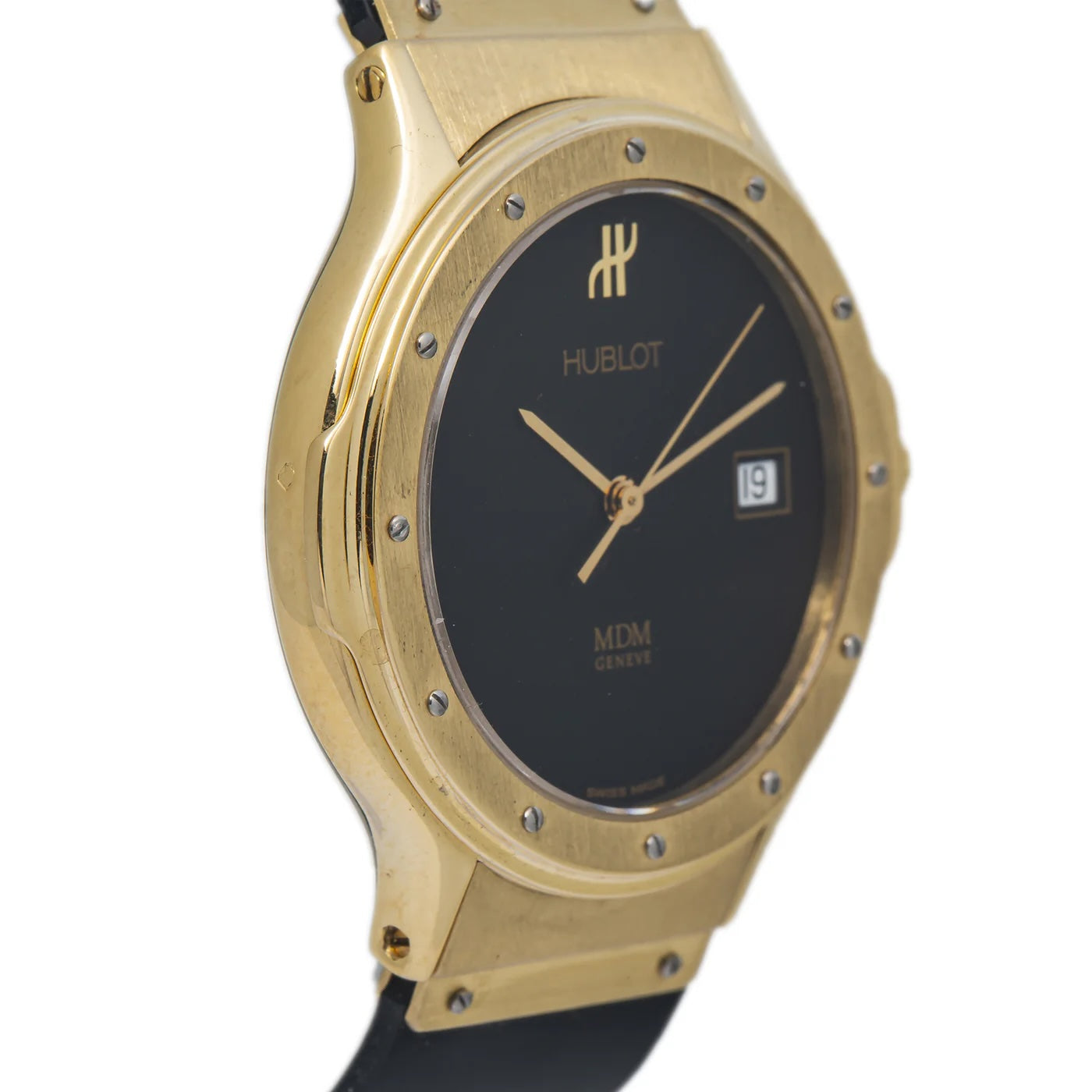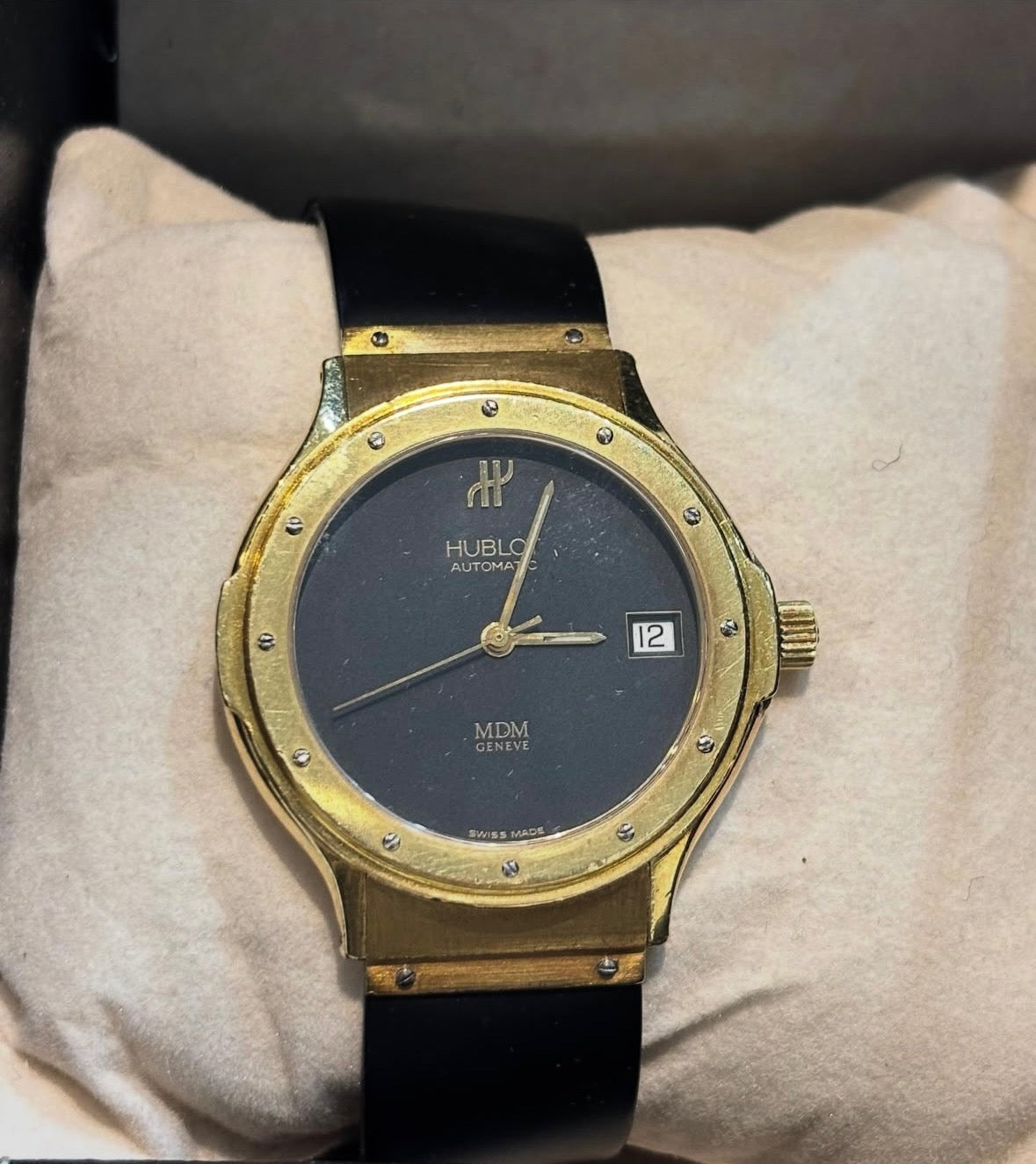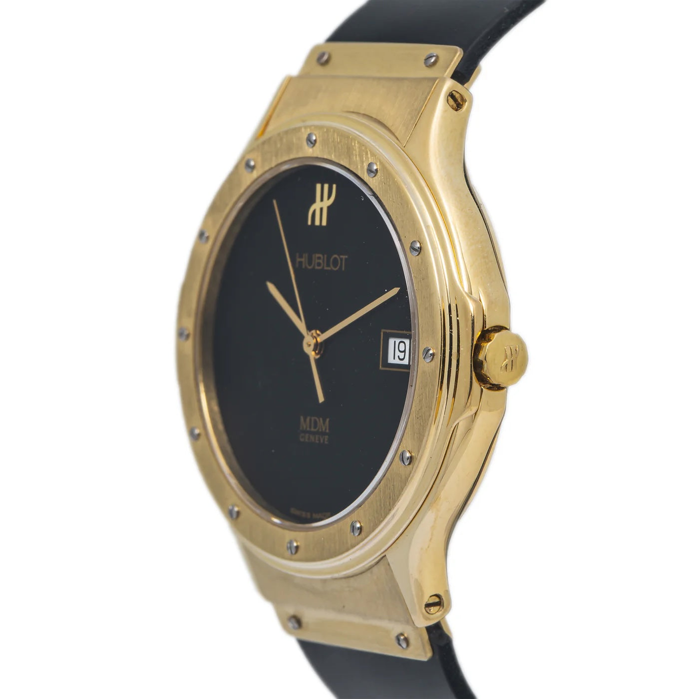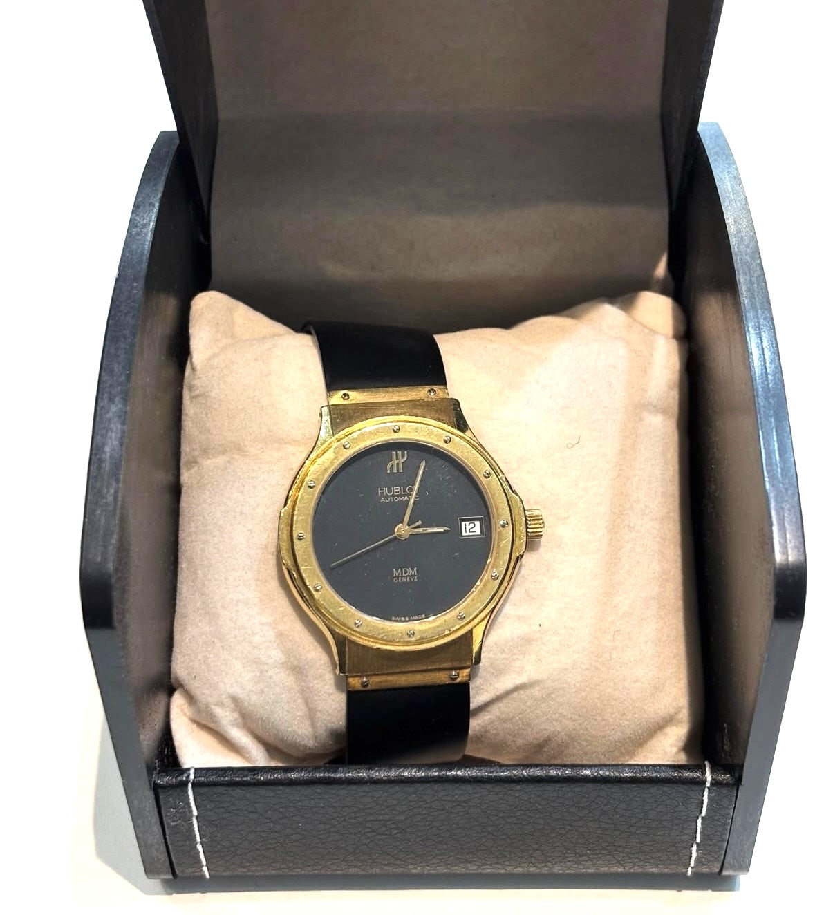 HUBLOT CLASSIC MDM 18K YELLOW GOLD MATTE BLACK DIAL QUARTZ WATCH