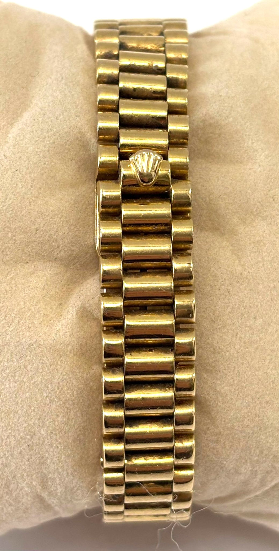 Finished with the iconic 18K Yellow Gold Rolex President bracelet and a concealed folding clasp, the watch sits comfortably on the wrist while maintaining a seamless, elegant profile.