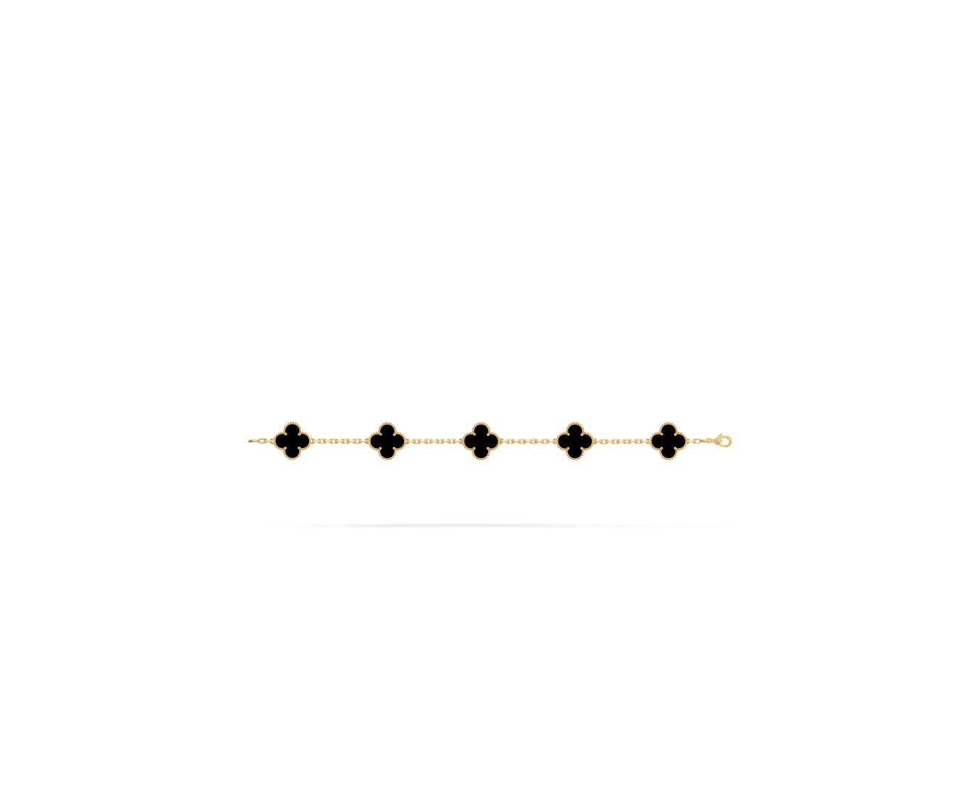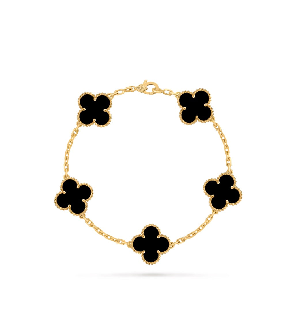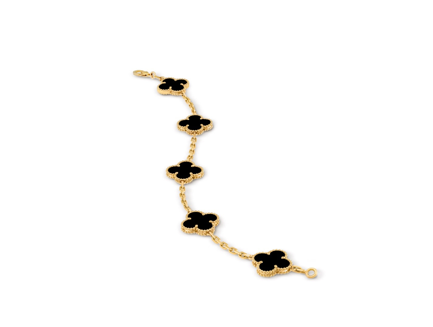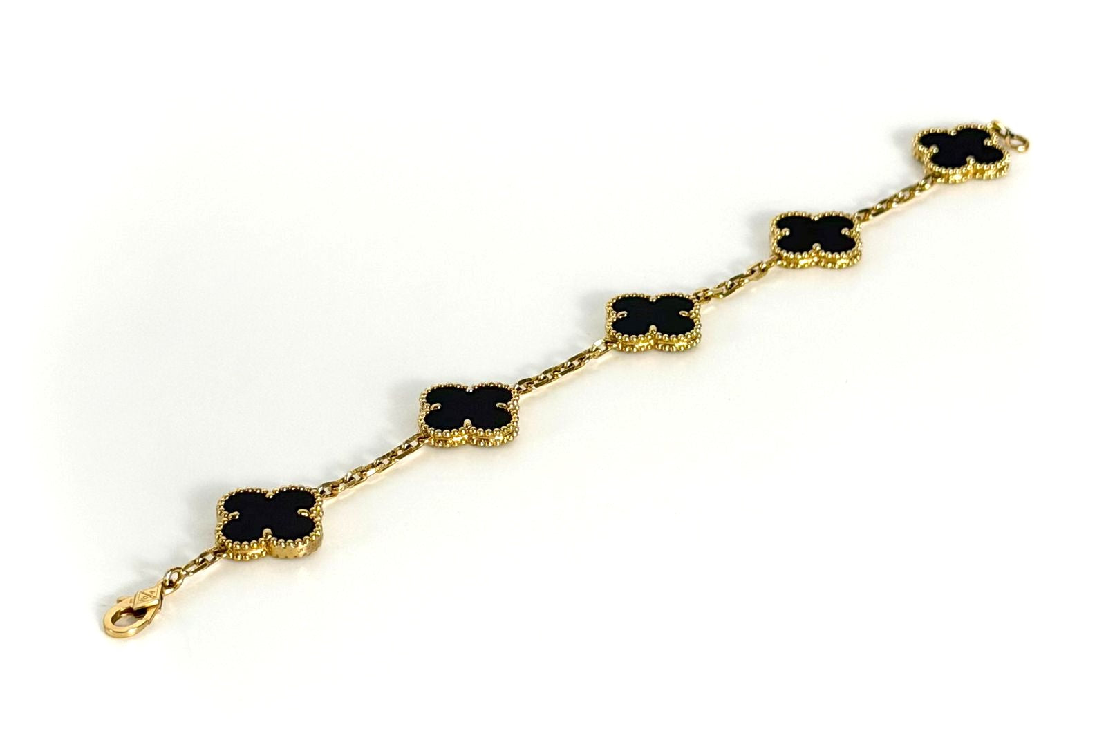 VAN CLEEF & ARPELS 18K GOLD BLACK ONYX 5 MOTIFS ALHAMBRA BRACELET