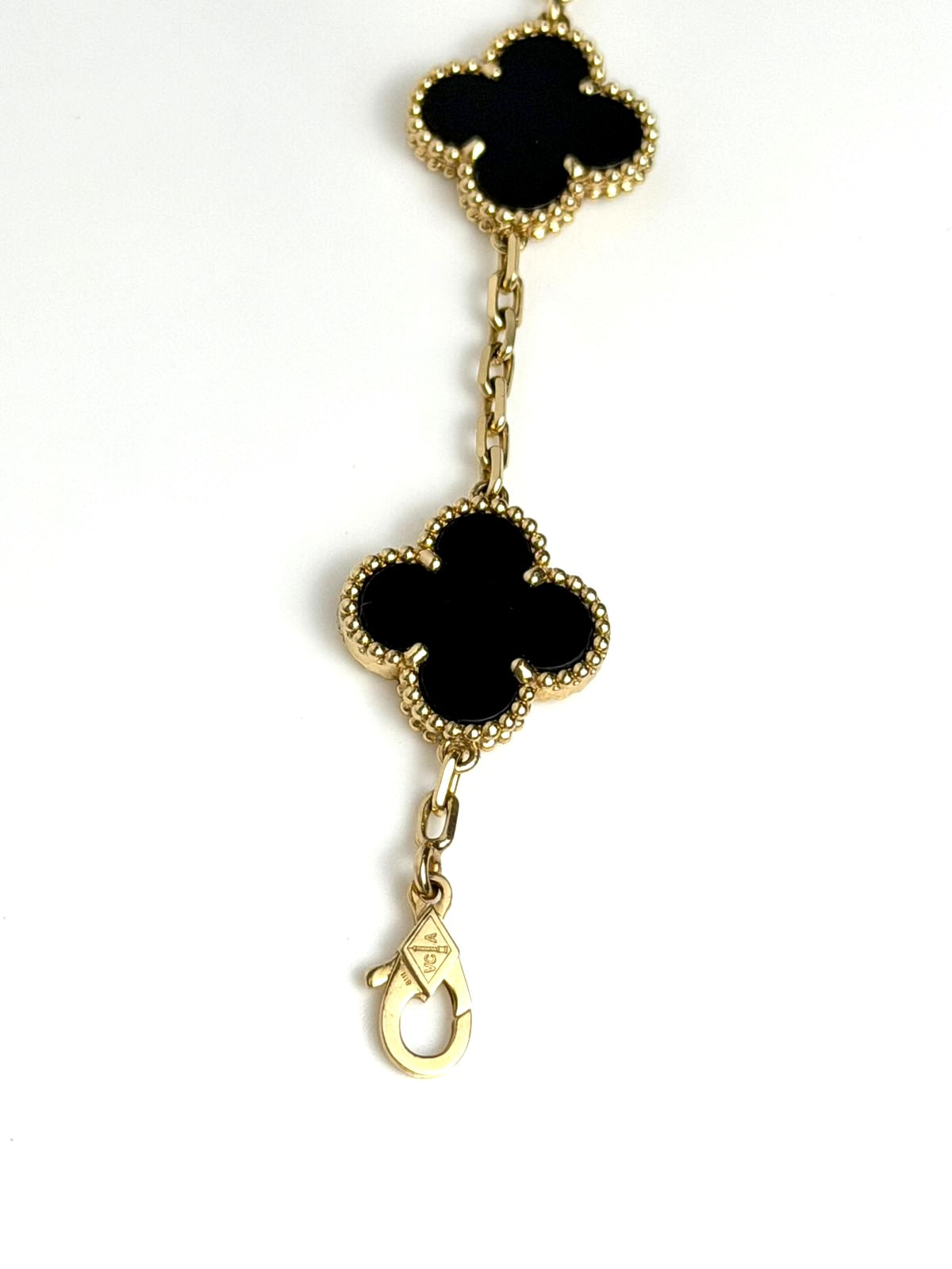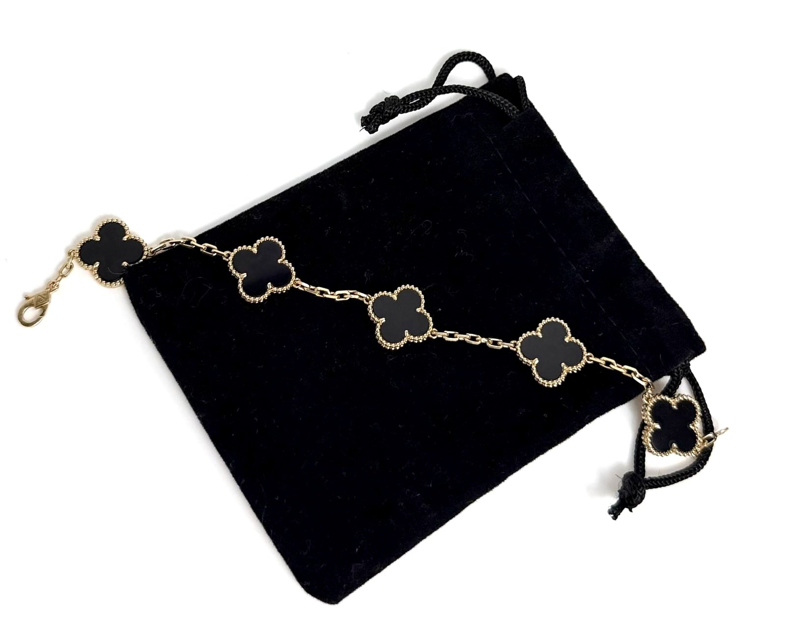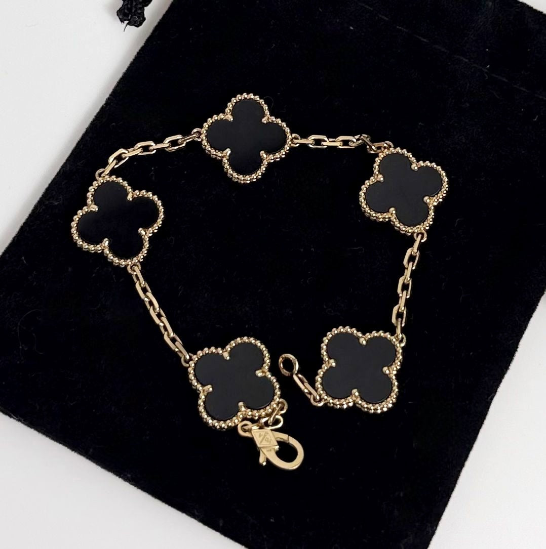 VAN CLEEF & ARPELS 18K GOLD BLACK ONYX 5 MOTIFS ALHAMBRA BRACELET