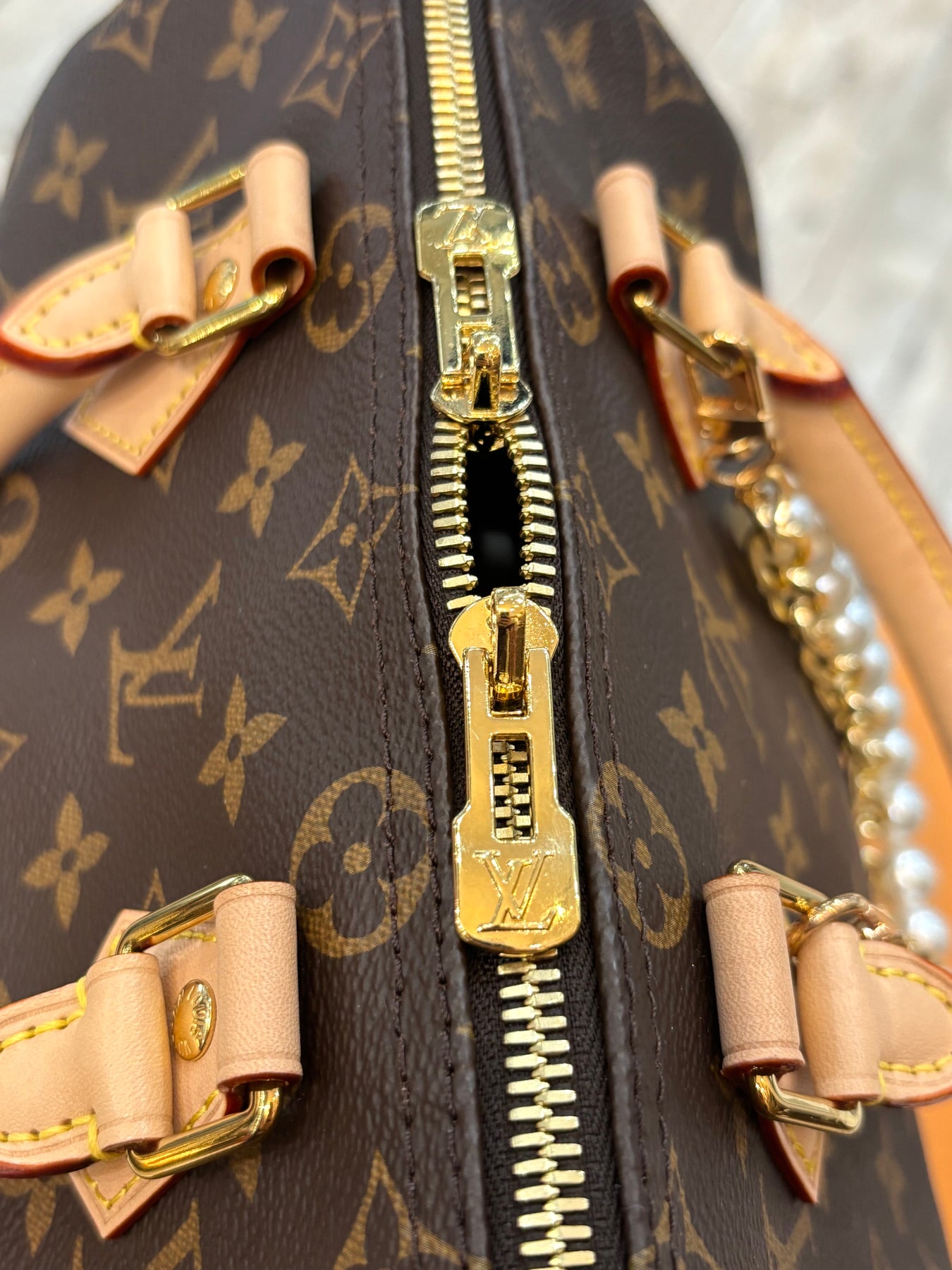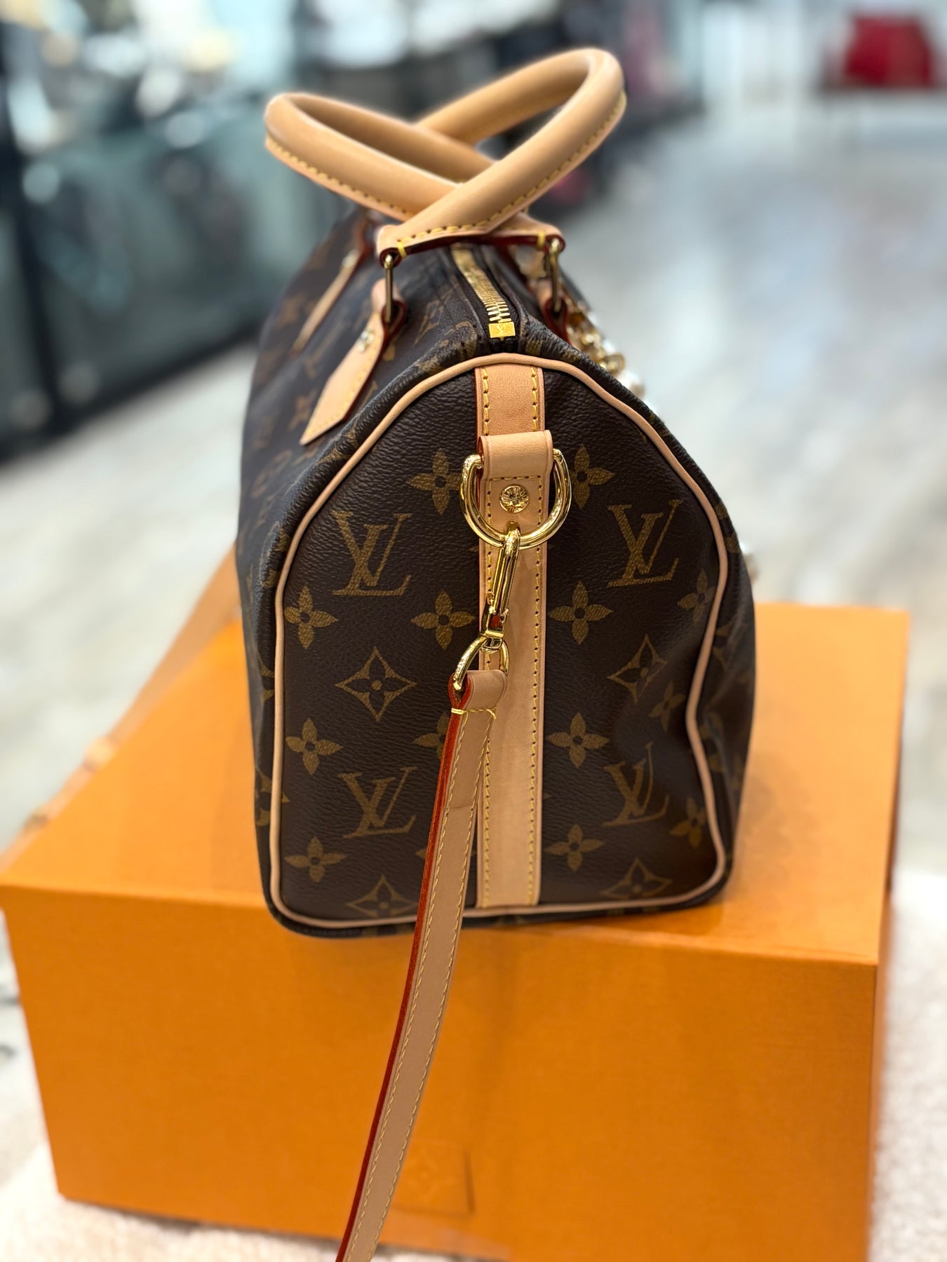The Speedy Bandoulière 25 in signature Monogram canvas is an ideal city bag for every day. Originally created for travelers in the 1930s – the name refers to the era’s rapid transit – every feature of the Speedy’s design is iconic, from its unmistakable shape to the rolled leather handles, engraved padlock and detachable strap.