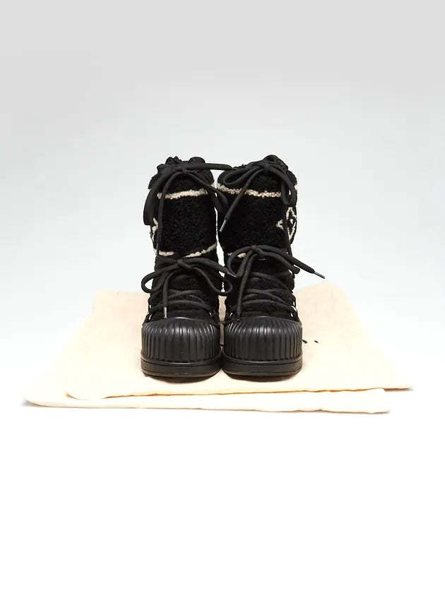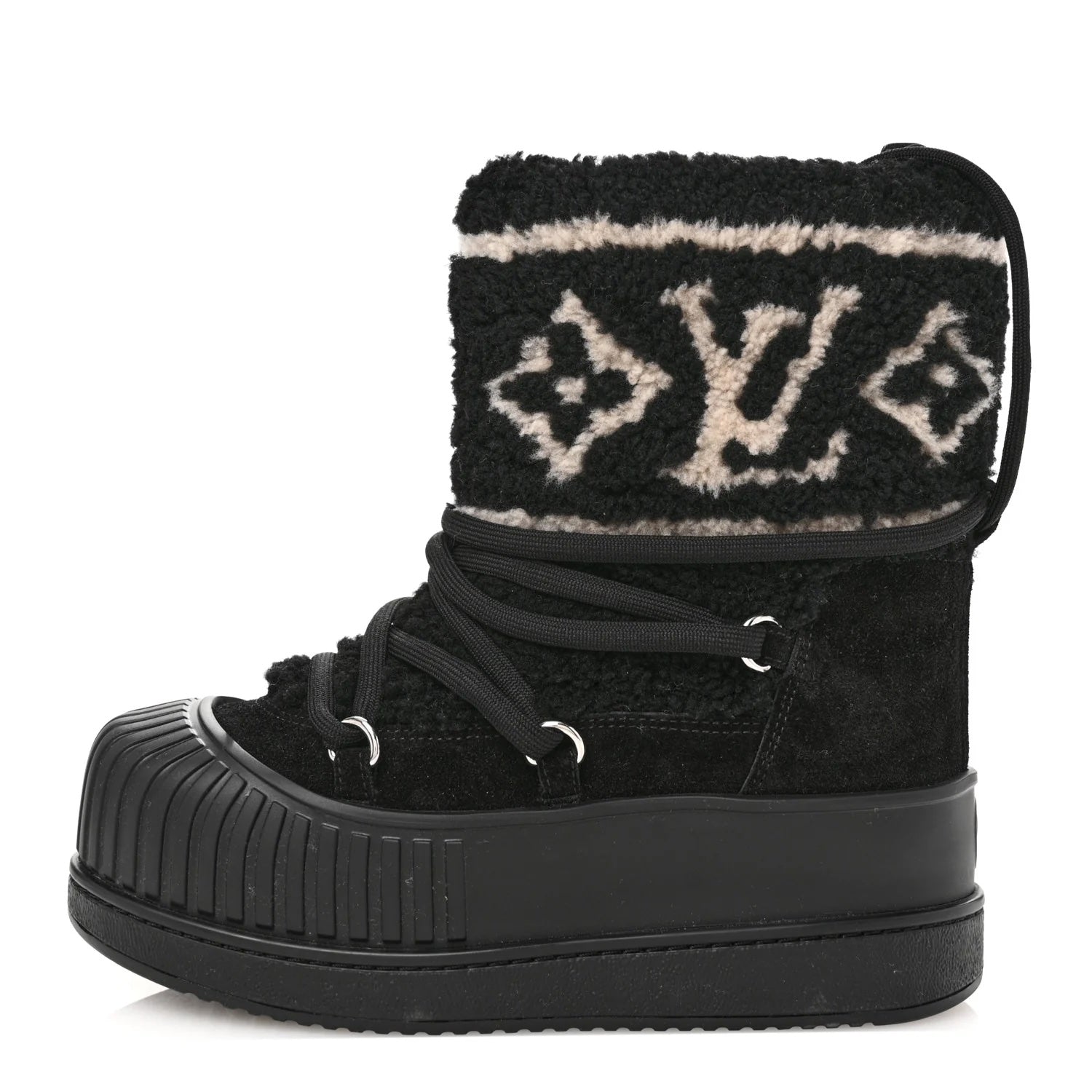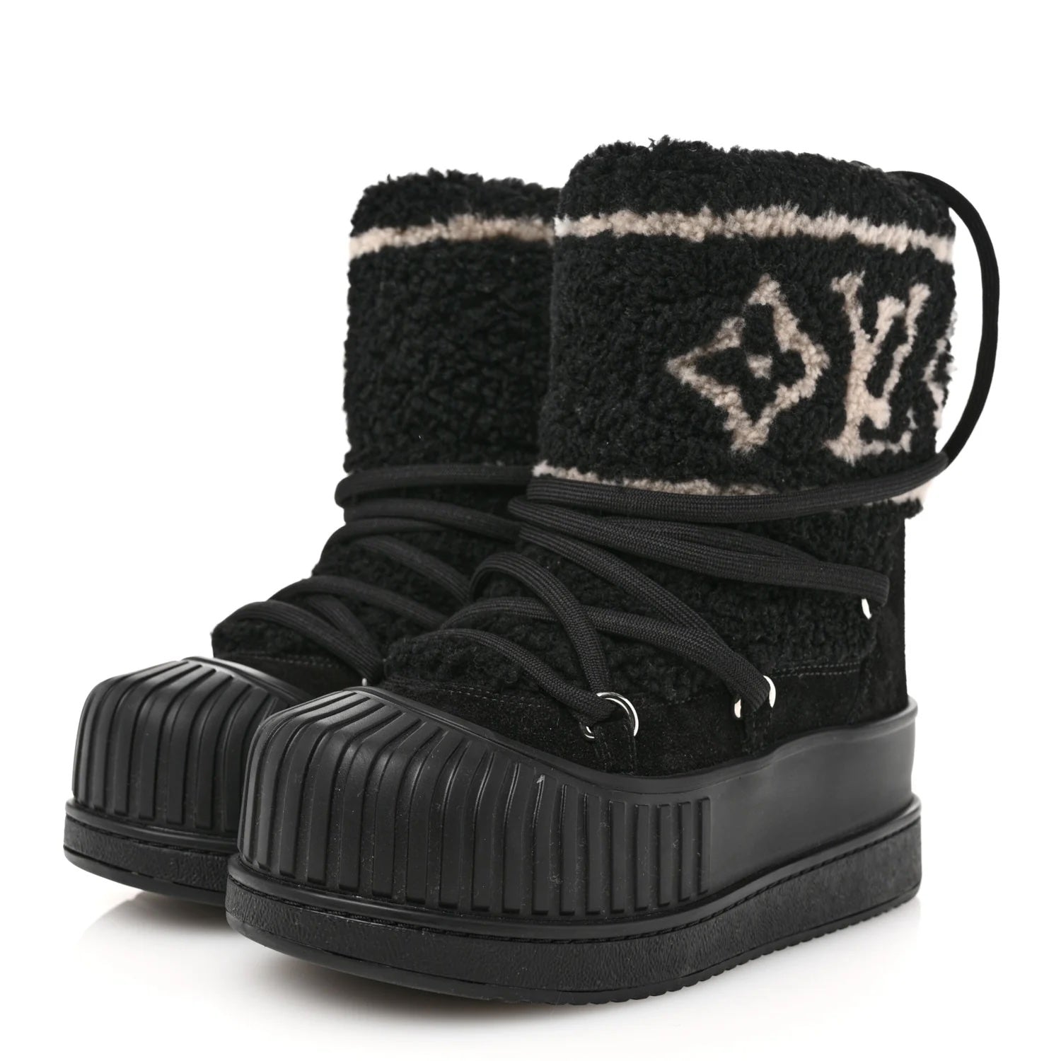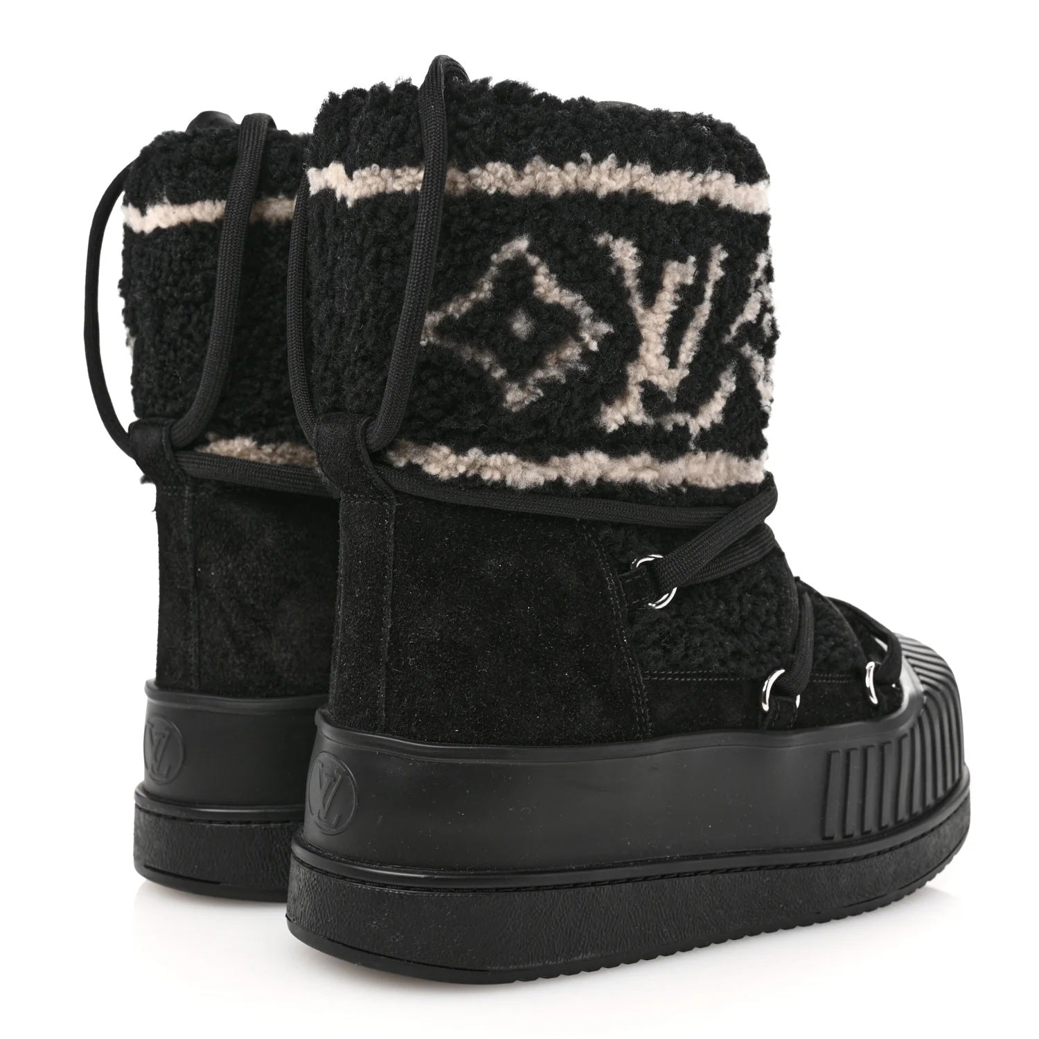 Perfect for cold-weather wear, the boots are lined with soft fleece for warmth and finished with a Louis Vuitton–engraved silvertone stud for a signature touch of elegance. Combining functionality and fashion, these chic boots bring luxury to après-ski style or everyday winter wear.