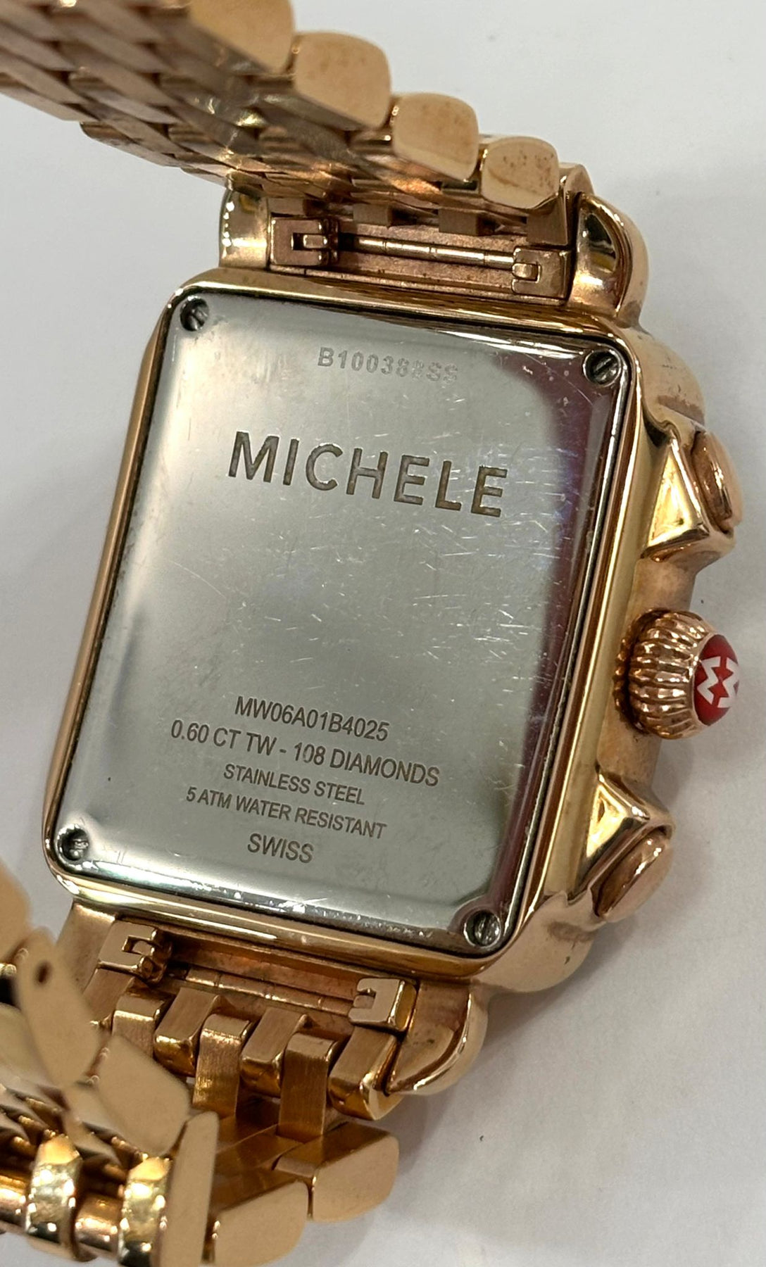 MICHELE WOMEN'S  DECO GOLD PLATED DIAMOND WATCH