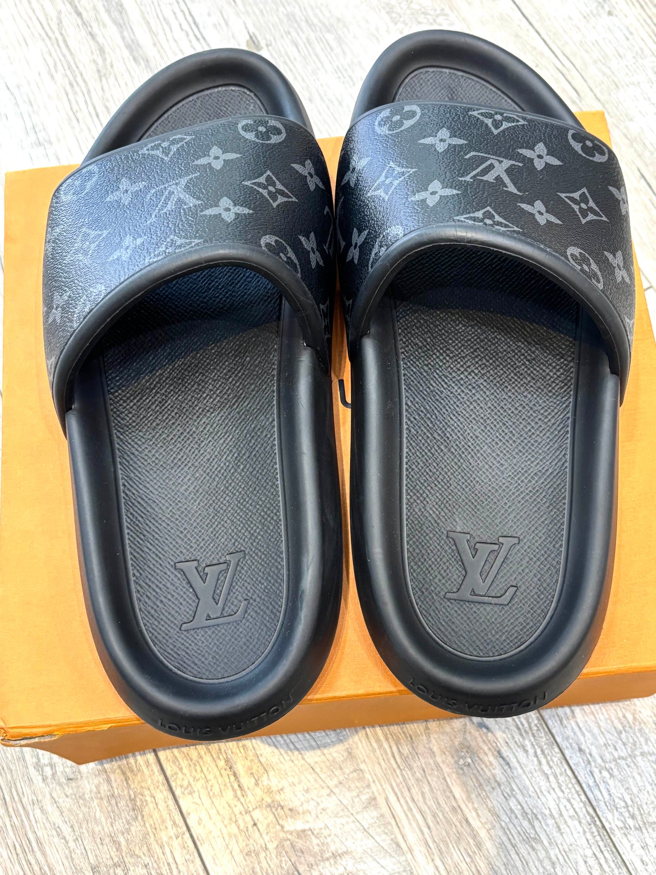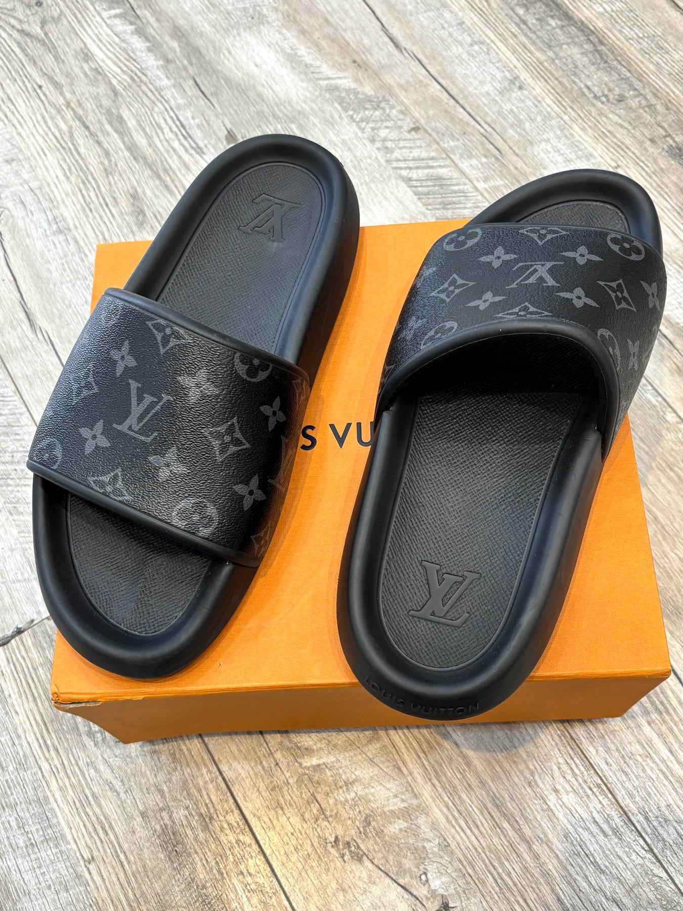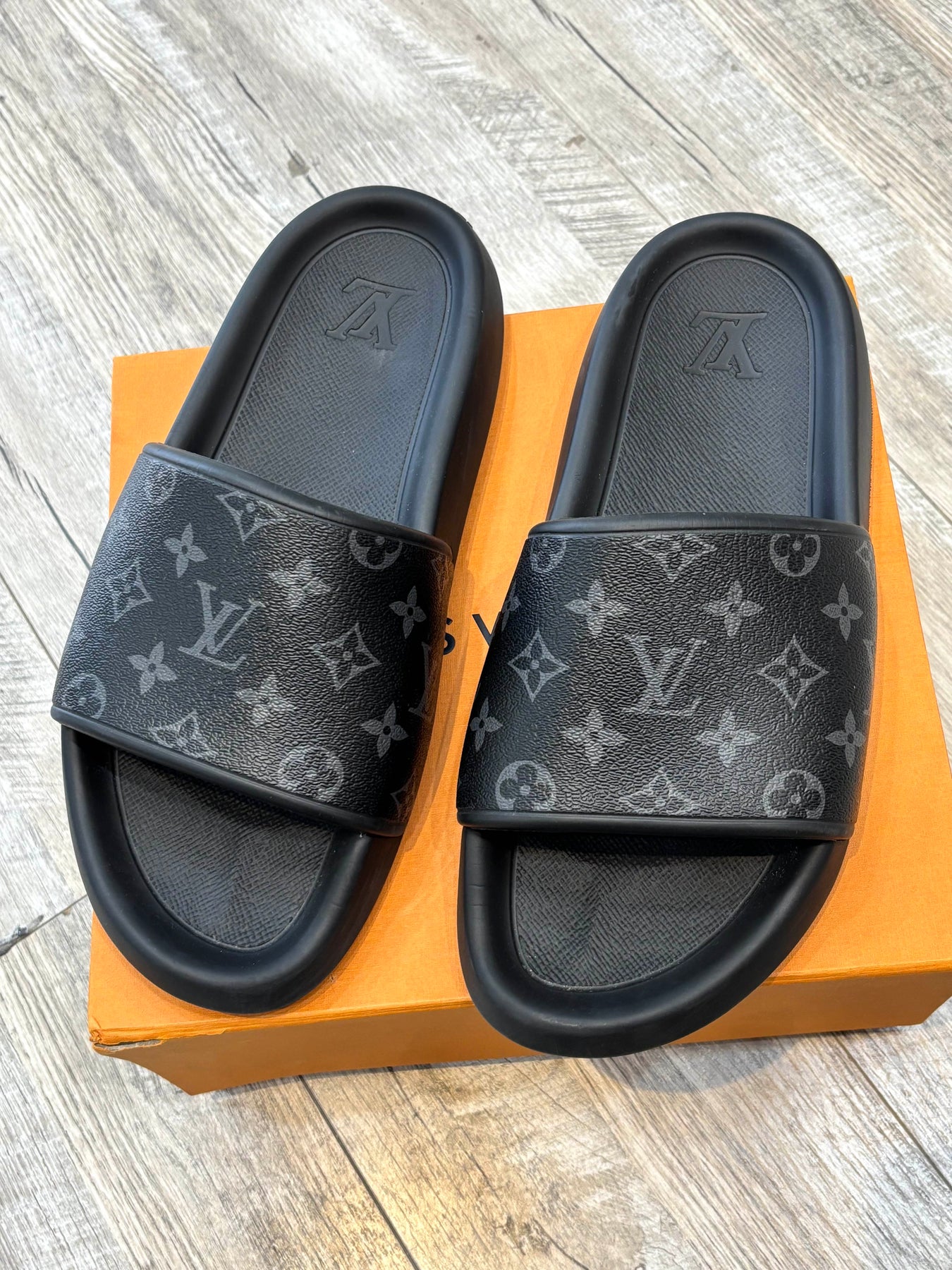 LOUIS VUITTON MEN'S MONOGRAM WATERFRONT SLIDE MULES