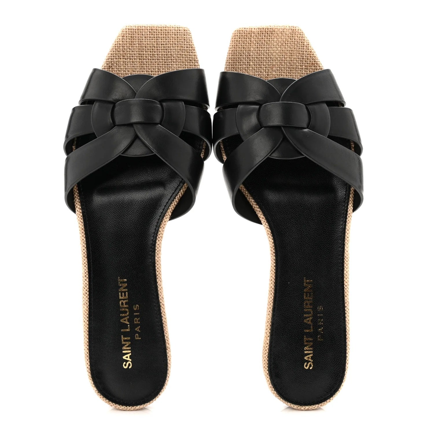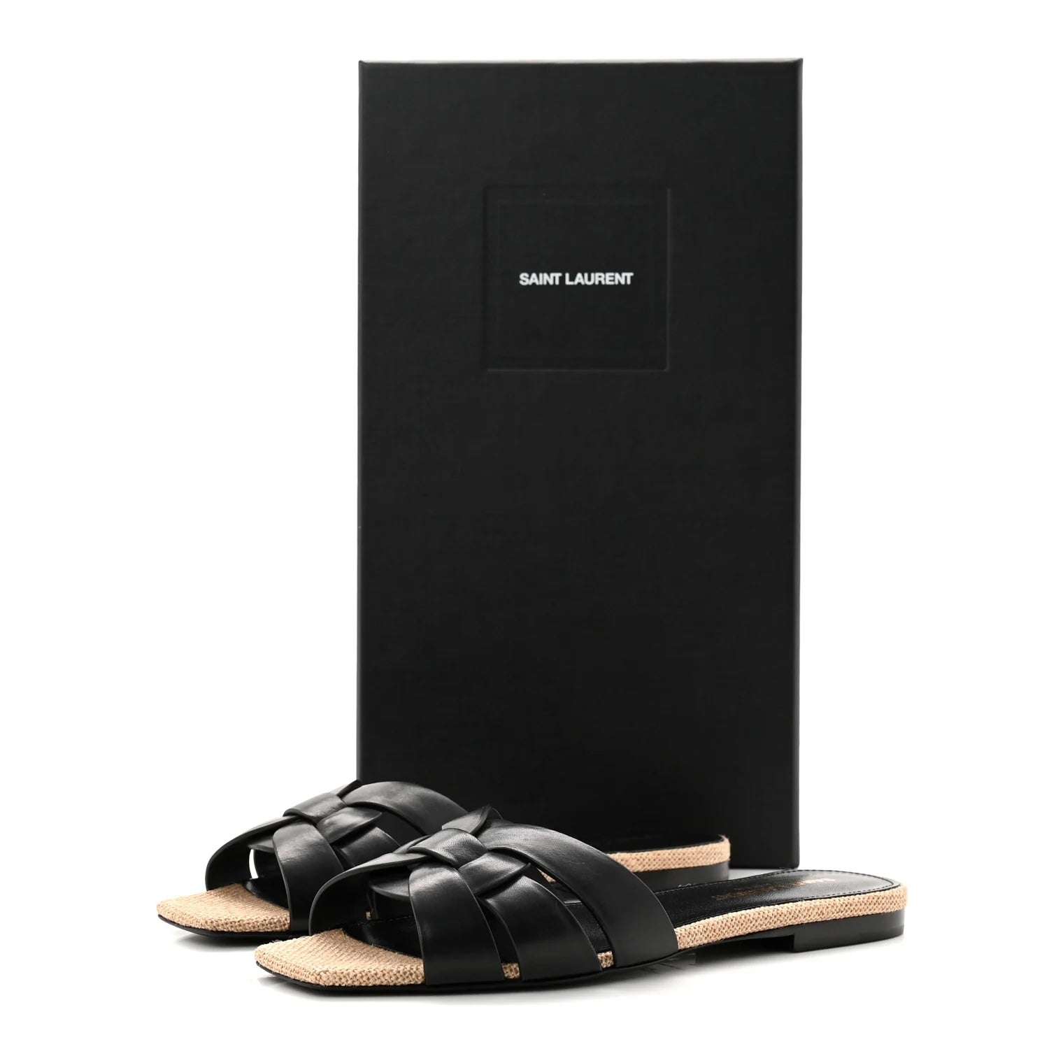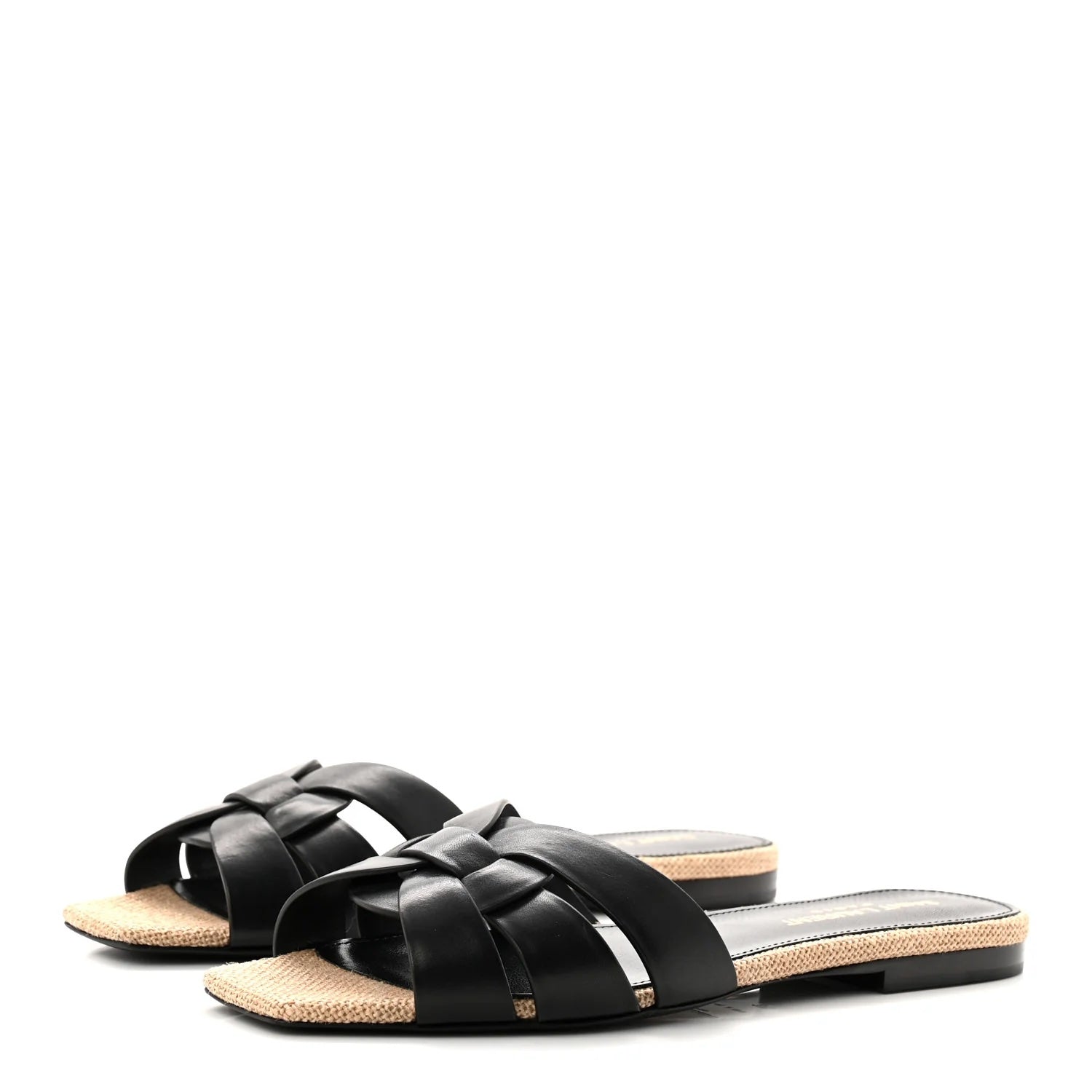 Effortlessly refined, these Saint Laurent Nu Pied sandals combine smooth calfskin leather with natural raffia for a sophisticated warm-weather look. The iconic crossover design adds dimension while maintaining a sleek, minimal silhouette perfect for everyday luxury.