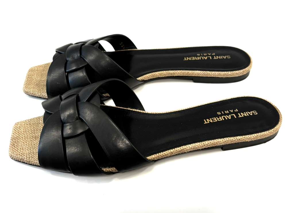YSL CALFSKIN LEATHER TRIBUTE NU PIED 05 SANDAL MULES