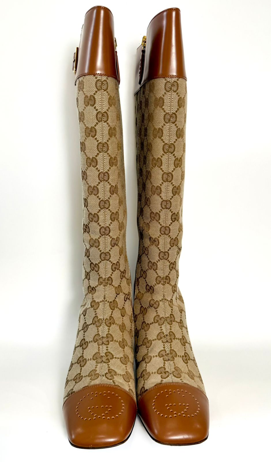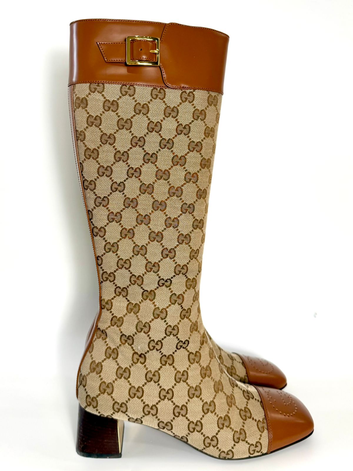 The Gucci Ellis GG Supreme Cap-Toe Tall Boots are a bold statement of Italian luxury and timeless design. Crafted with Gucci’s signature GG Supreme canvas — an iconic, low-impact material known for its durability and instantly recognizable pattern — these tall boots marry heritage branding with contemporary sophistication.