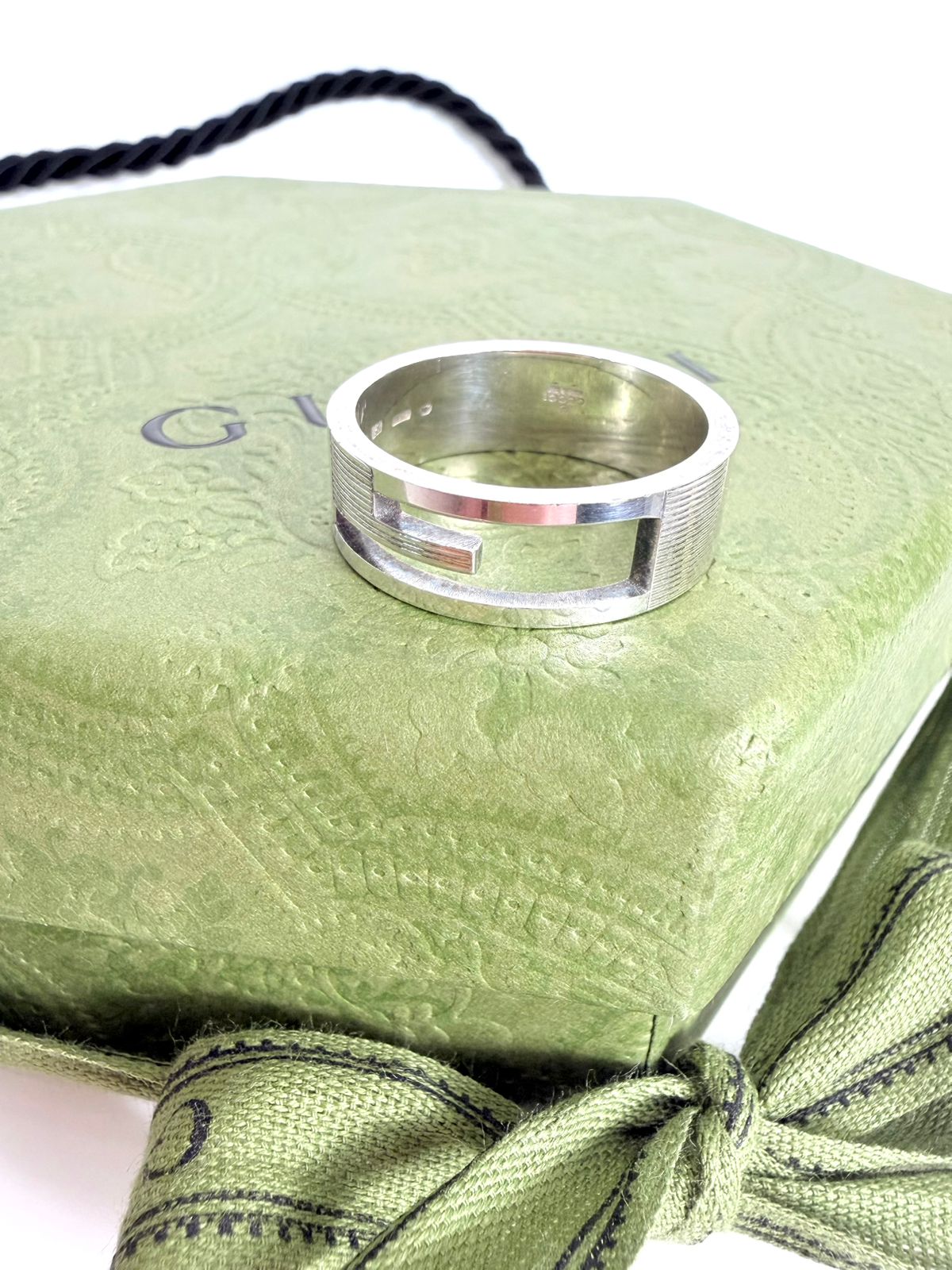 Designed with Gucci’s signature attention to detail and craftsmanship, this ring offers a minimalist yet distinctive aesthetic that complements both casual and elevated outfits. Whether worn alone as a statement piece or stacked with other rings, it delivers understated sophistication with unmistakable designer heritage.