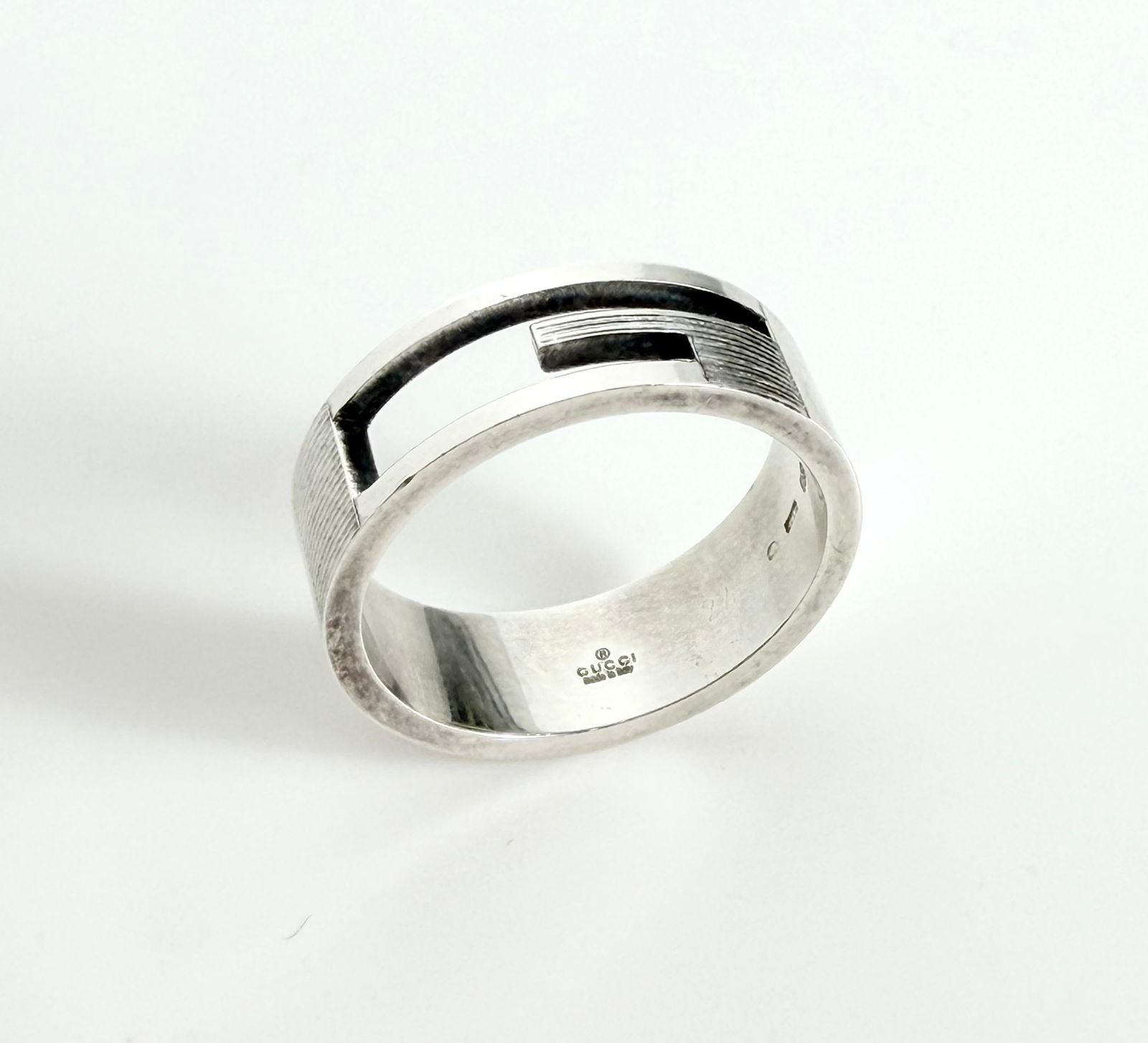 GUCCI CUTOUT G LOGO STERLING SILVER RING