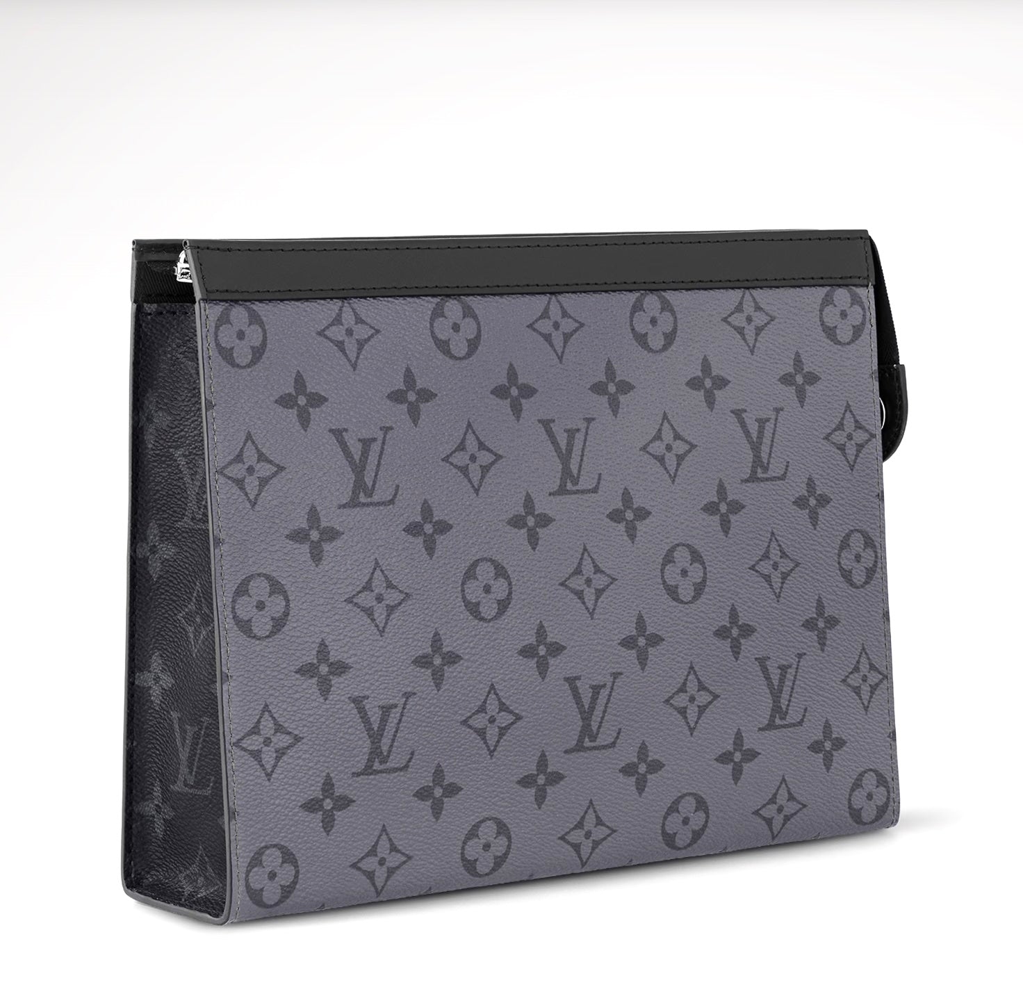 Carry your essentials in sleek, modern style with the Louis Vuitton Pochette Voyage MM Monogram Eclipse. Crafted from Louis Vuitton’s signature Monogram Eclipse coated canvas, this sophisticated pouch features black leather trim and silver-tone hardware for a refined, contemporary look. The spacious zip-top interior includes card slots and a flat pocket, making it ideal for organizing documents, travel essentials, or everyday items. Designed to be carried as a clutch or used inside a larger bag, the Pochette Voyage MM blends luxury craftsmanship with practical versatility