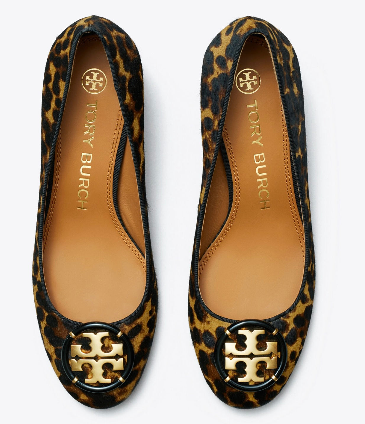 TORY BURCH MULTI LOGO CALF-HAIR LEOPARD PUMPS