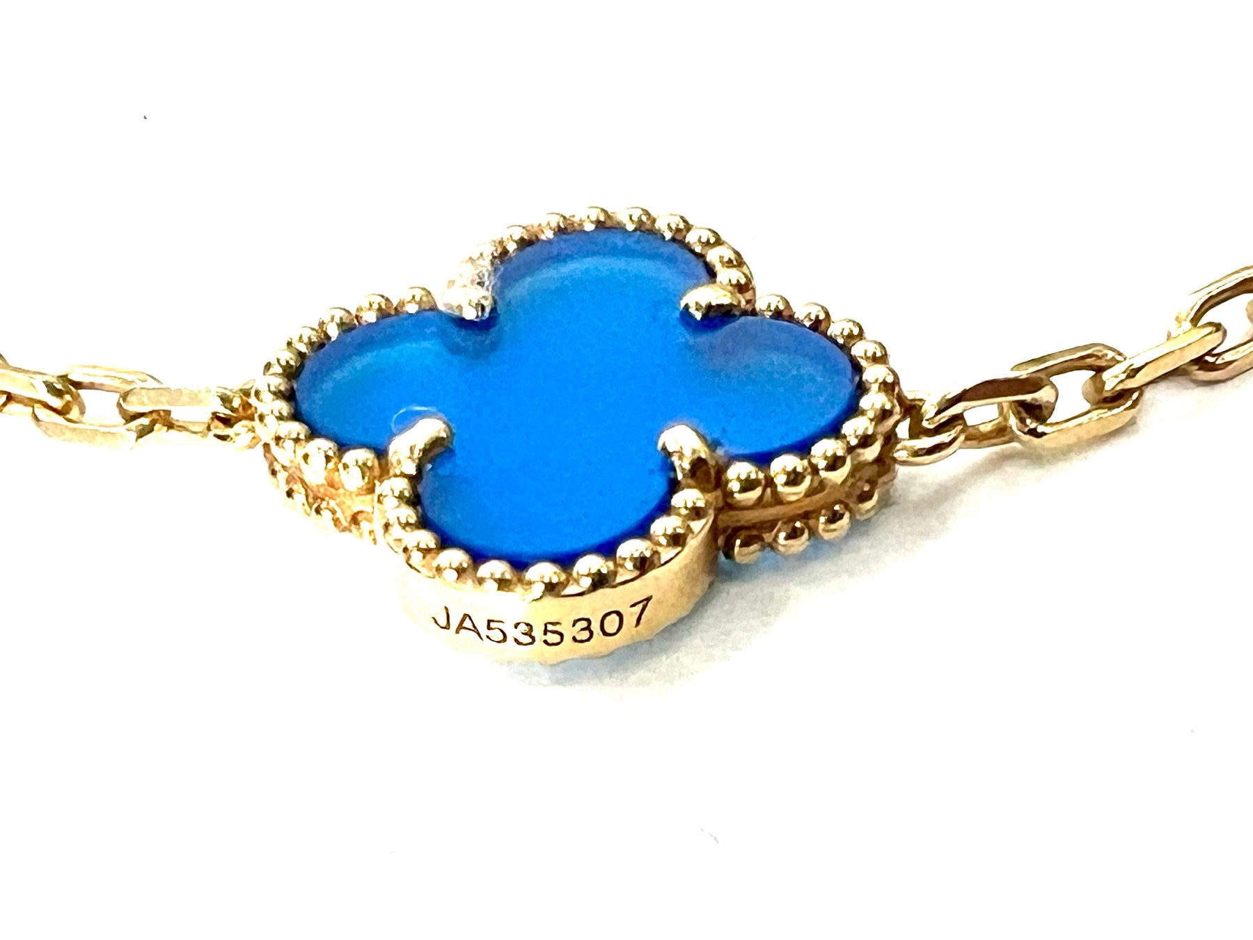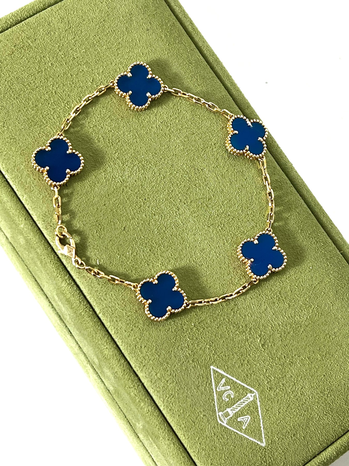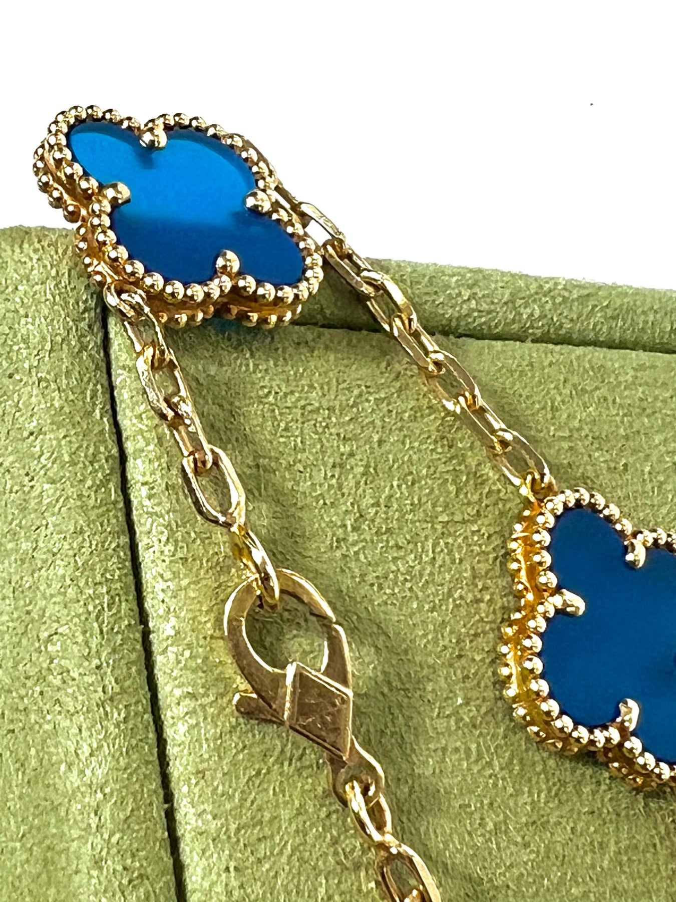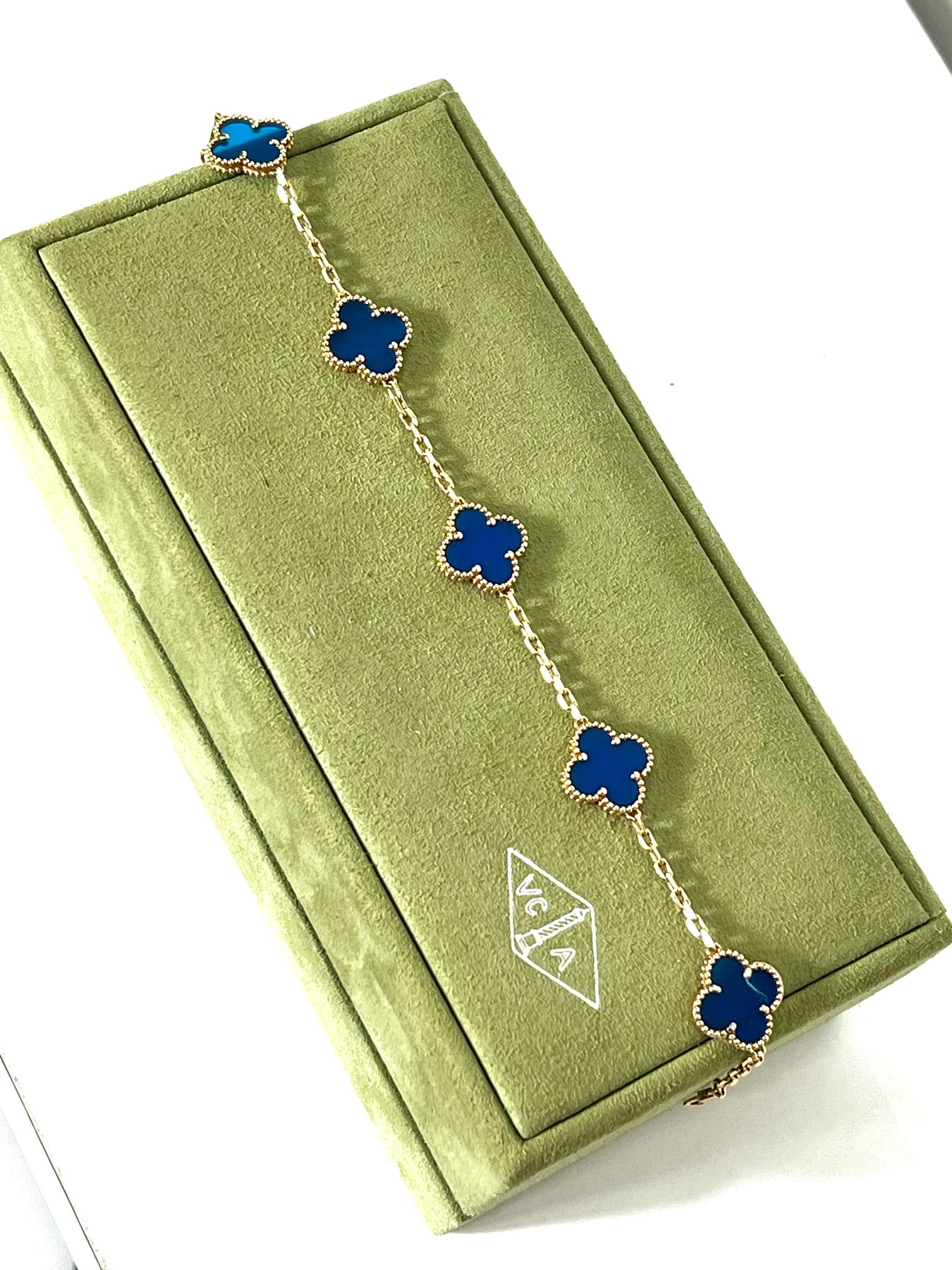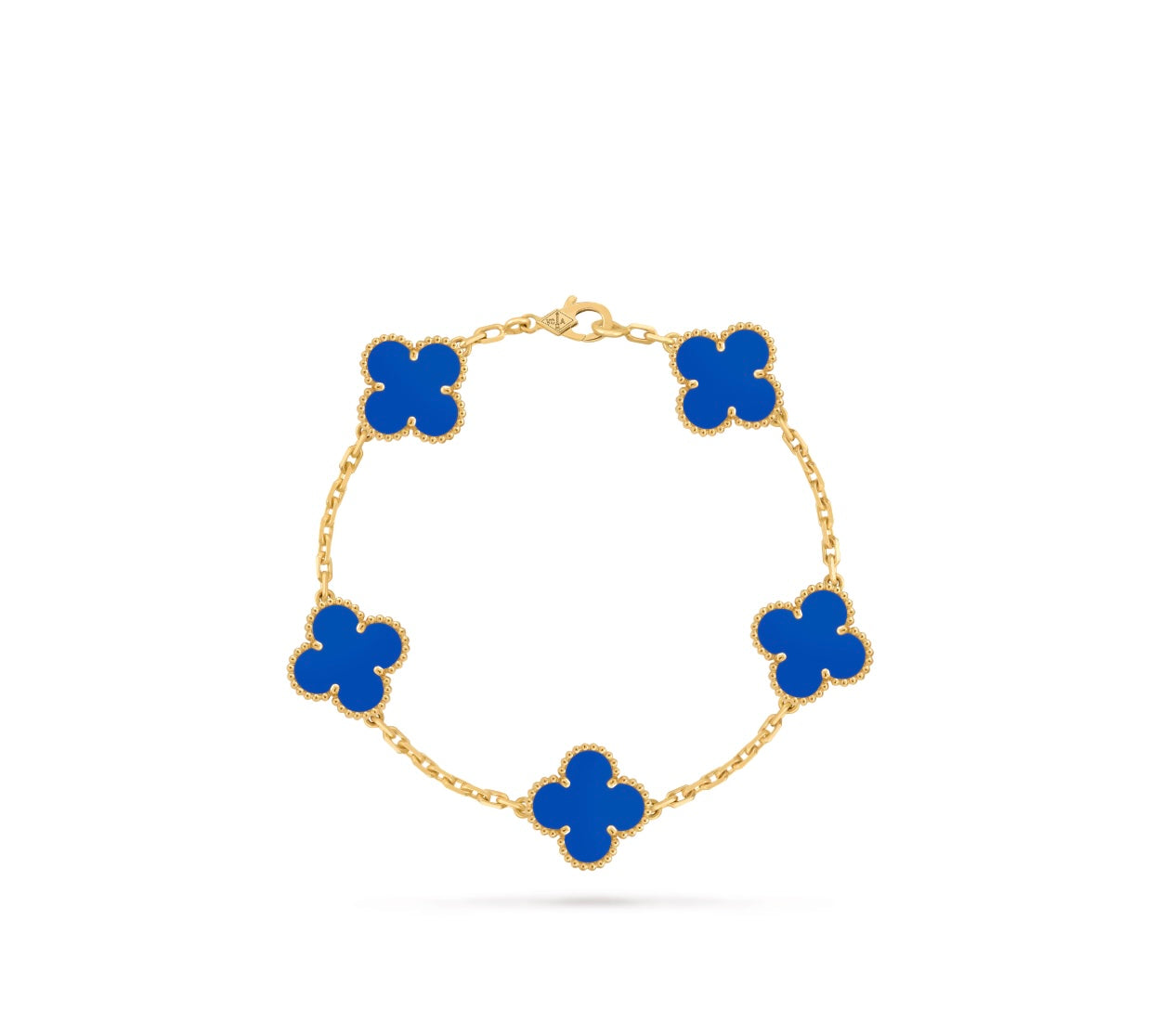 VAN CLEEF & ARPELS 18K GOLD 5 MOTIFS BLUE AGATE STONE ALHAMBRA BRACELET