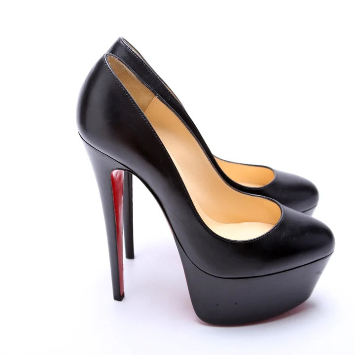 Timeless, sophisticated, and unmistakably Louboutin, the Black Leather Bianca Pumps combine classic design with modern elegance. Crafted from smooth, premium black leather, these pumps feature a pointed toe and a slender high stiletto heel that creates a flattering, elongated silhouette.