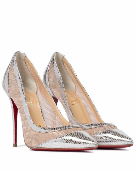 CHRISTIAN LOUBOUTIN GALATIVI 100 SILVER LEATHER AND MESH PUMPS
