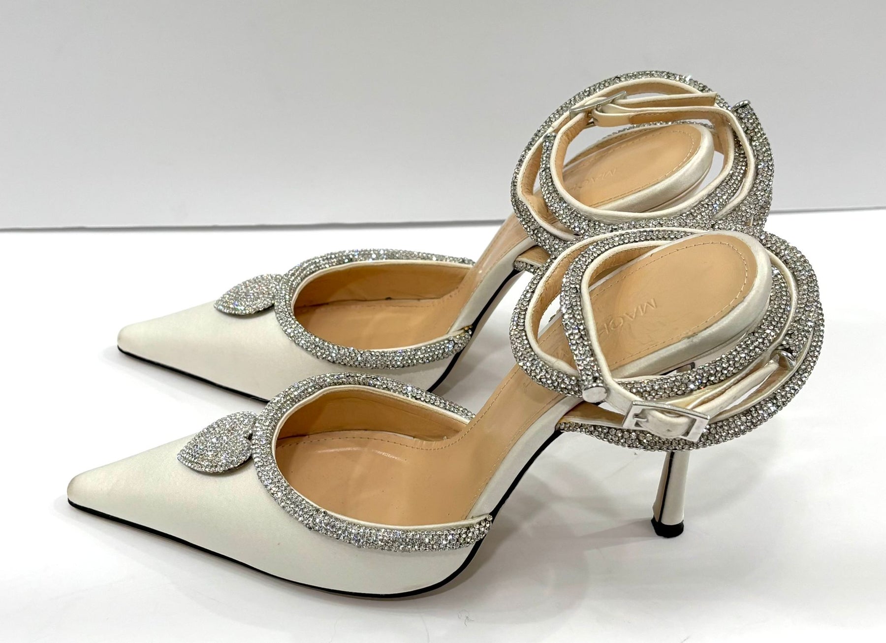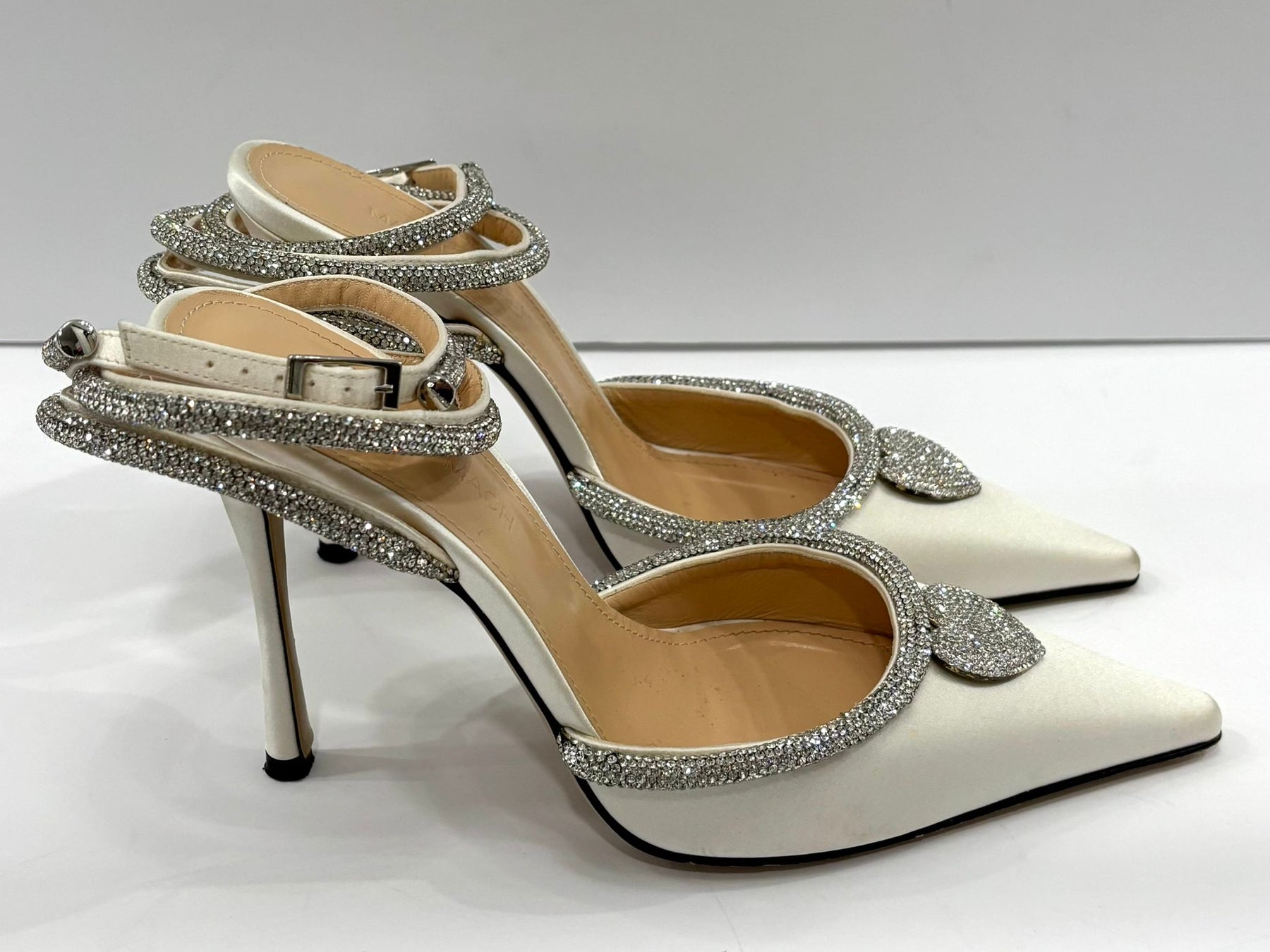 Perfect for special occasions, evenings out, or whenever you want to make a statement, the Mach & Mach Crystal Heart Pumps embody joyful luxury and unforgettable style.