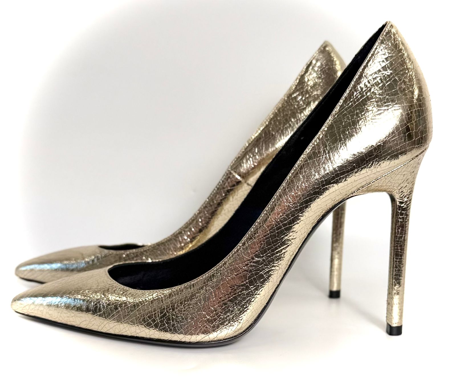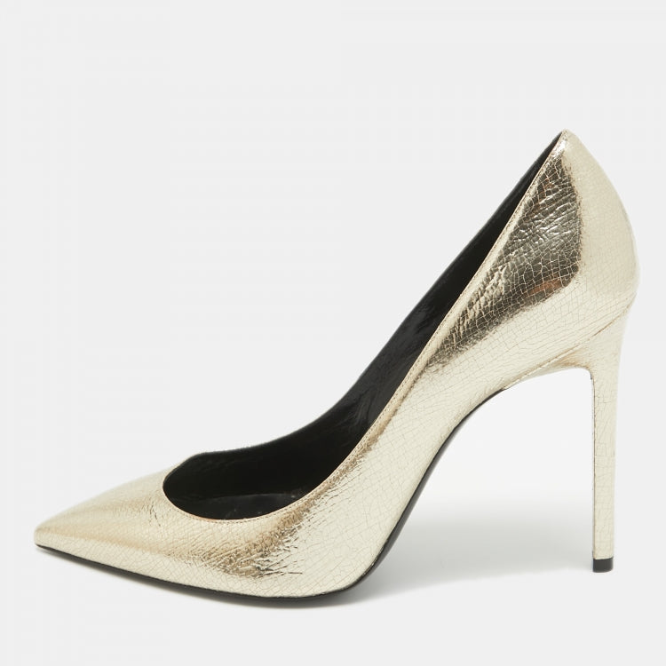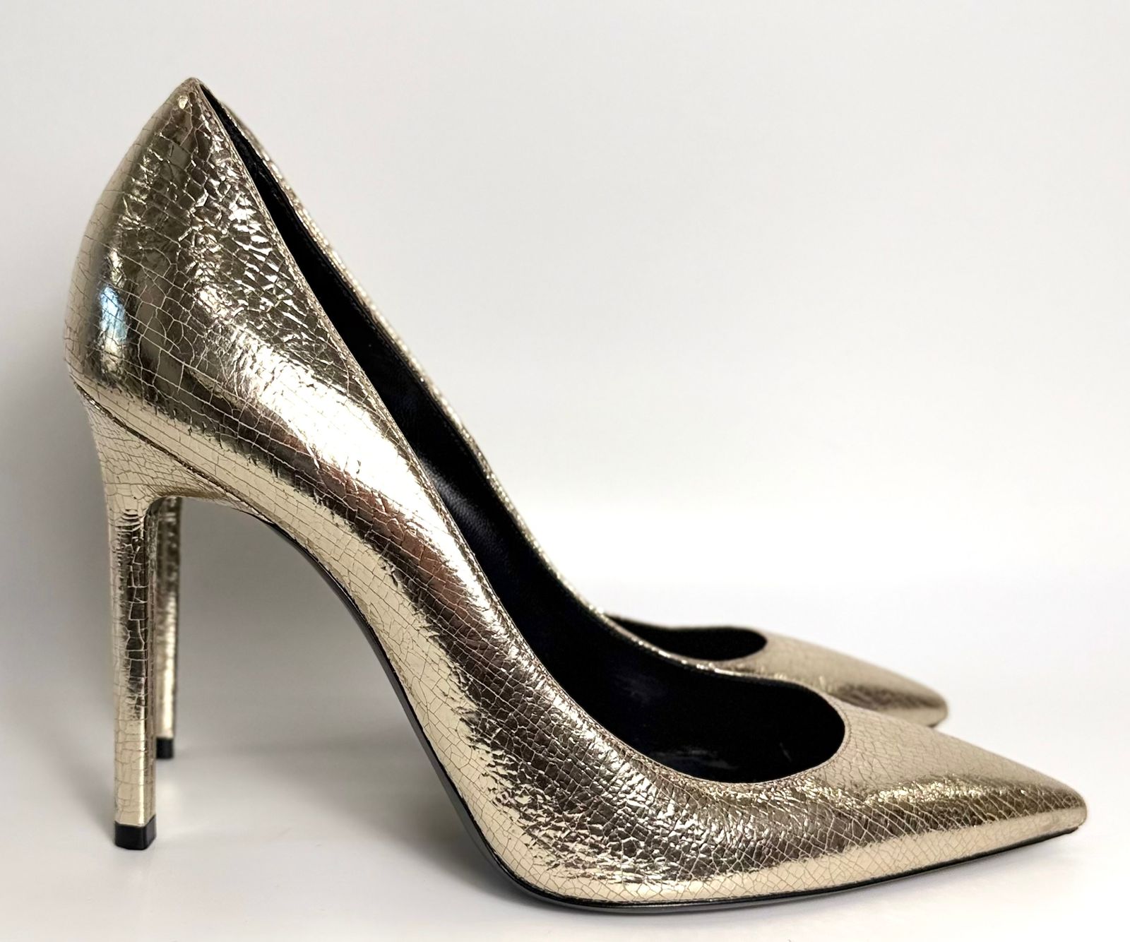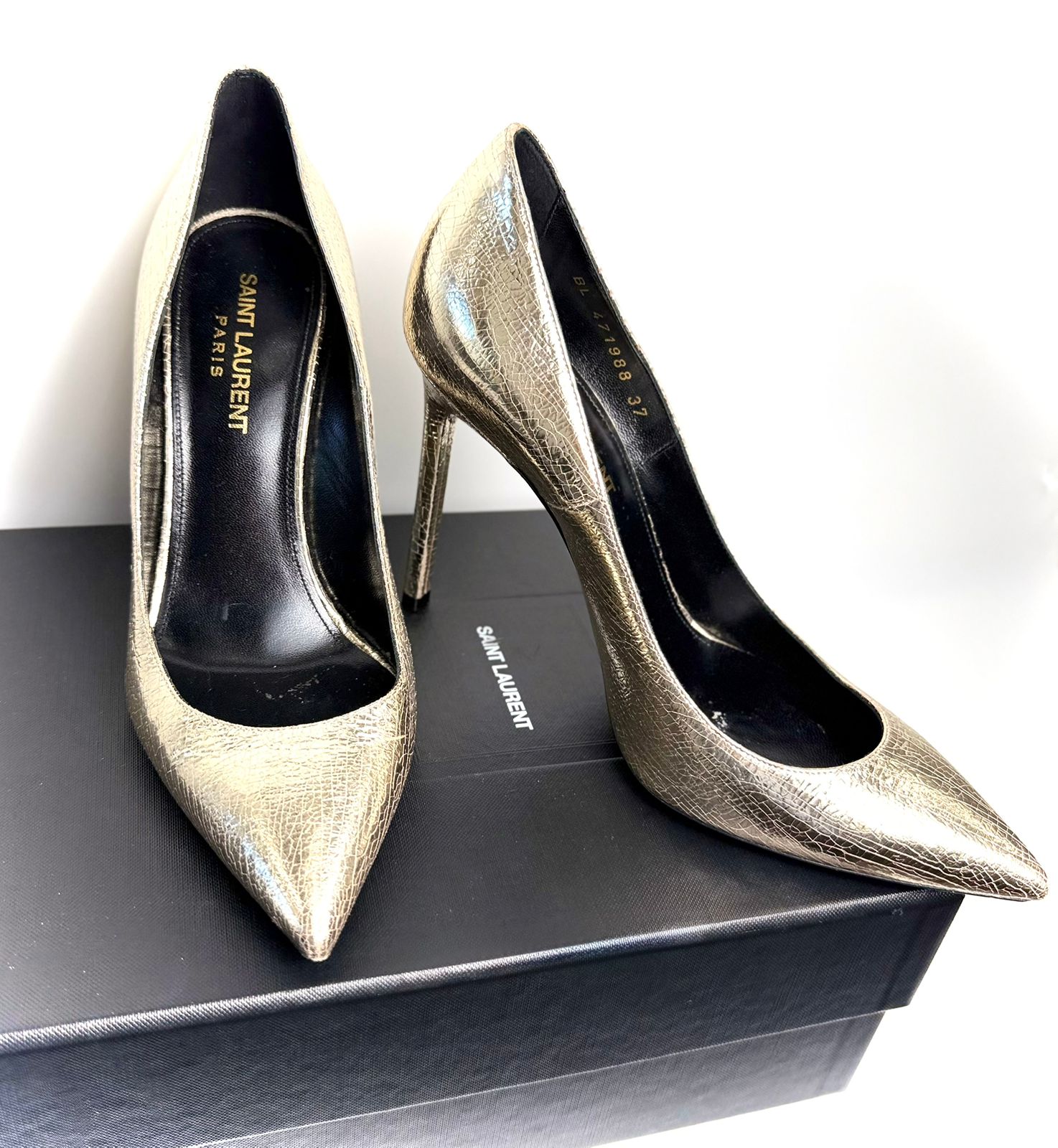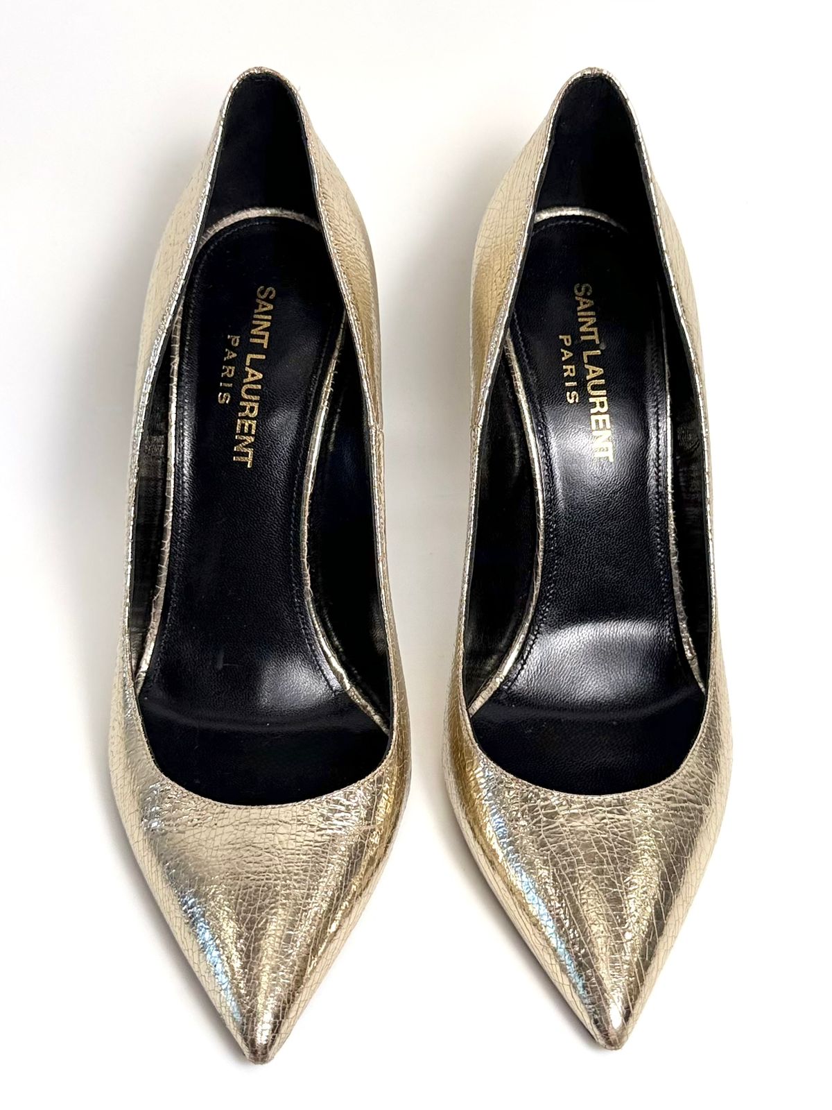 YSL METALLIC SUPERCRACK CALFSKIN LEATHER ANJA PUMPS