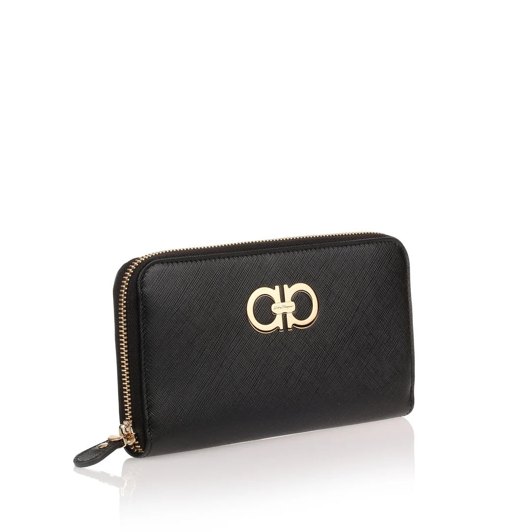 SALVATORE FERRAGAMO GANCINI ROUND ZIPPER LONG WALLET