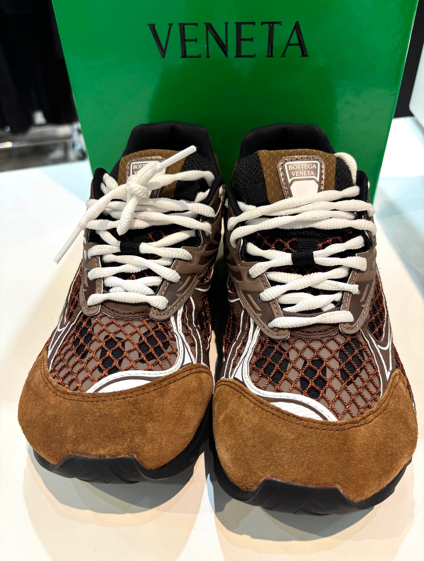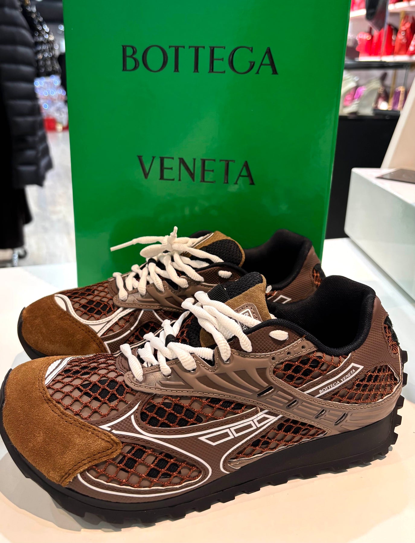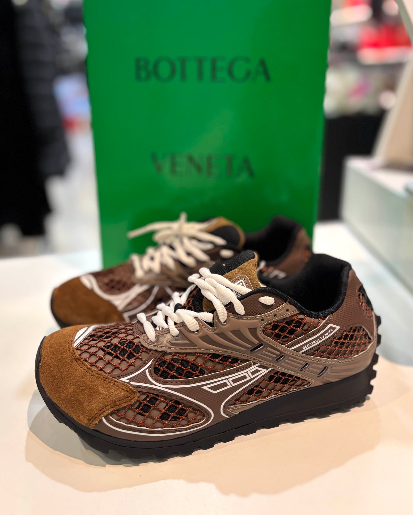 The Bottega Veneta Orbit Star Anise Pinecone Sneakers reinterpret contemporary luxury through bold form, sculptural design, and standout color play. Crafted with Bottega’s signature attention to detail, these sneakers feature a dynamic Mixed-material upper that blends premium textiles with smooth overlays, creating depth and dimension in the rich Star Anise / Pinecone palette.